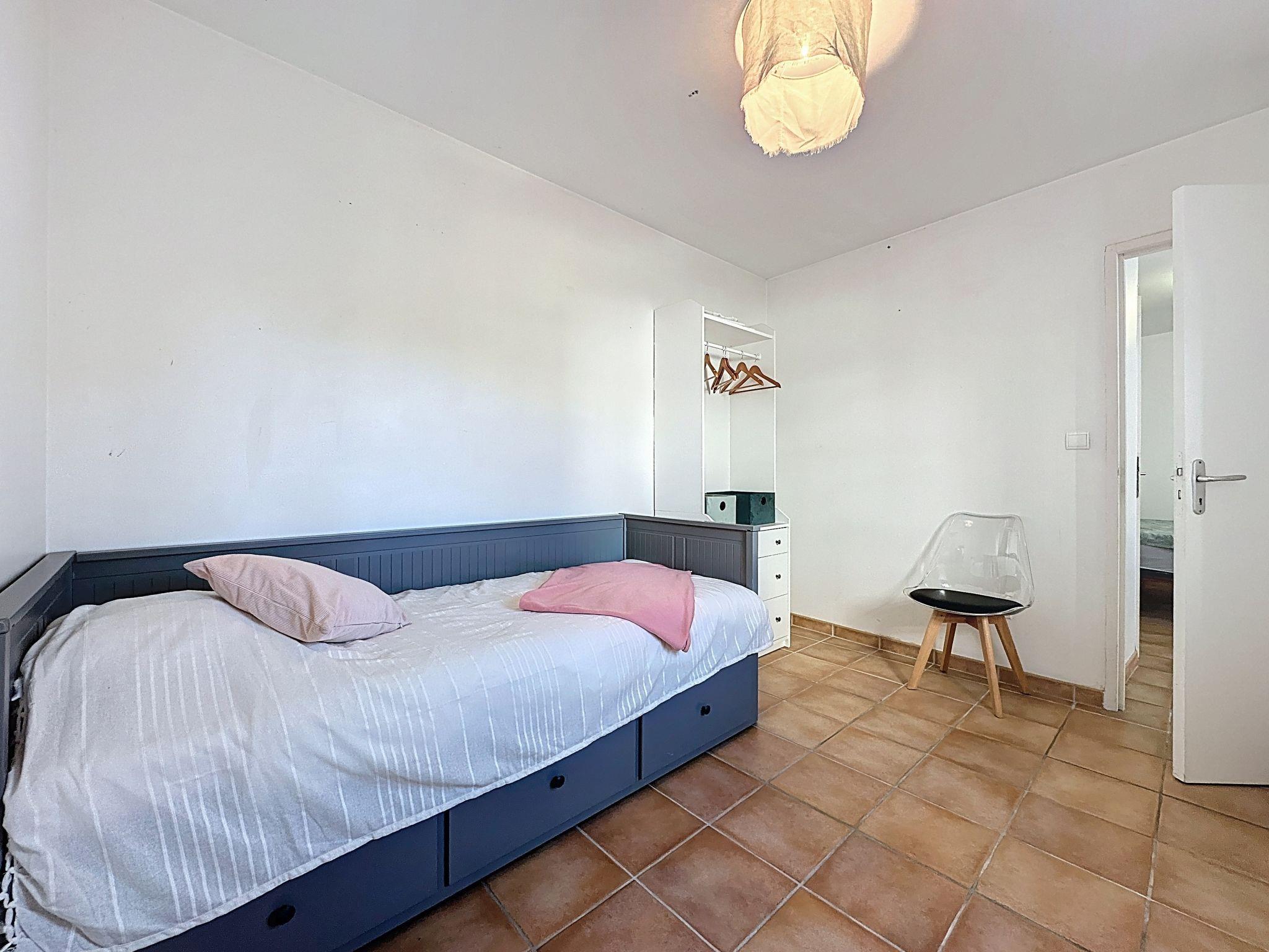 "Sanoubott", 4-room terraced house 74 m2 on 2 levels, south facing position. Living/dining room. Exit to the terrace, south facing position. 1 room with 1 double wall-trunk bed (2 x 80 cm, length 200 cm). Exit to the terrace, south facing position. 1 large room with 1 french bed (1 x 160 cm, length 200 cm), hand-basin, separate WC and shower. Exit to the terrace, west facing position. Open kitchen (oven, dishwasher, 4 ceramic glass hob hotplates, toaster, kettle, microwave, electric coffee machine). Shower, sep. WC. Upper floor: 1 open large room with 1 french bed (1 x 160 cm, length 200 cm), TV (flat screen). Small terrace, south facing position, small patio, south facing position. Terrace furniture, barbecue. Facilities: washing machine, iron, hair dryer. Internet (WiFi, free). Parking (fenced 2 cars). Please note: non-smoking house. Maximum 1 pet/ dog allowed. Smoke alarm. Offer by a private individual according to Art. 155, IV of CGI. 440120003829E