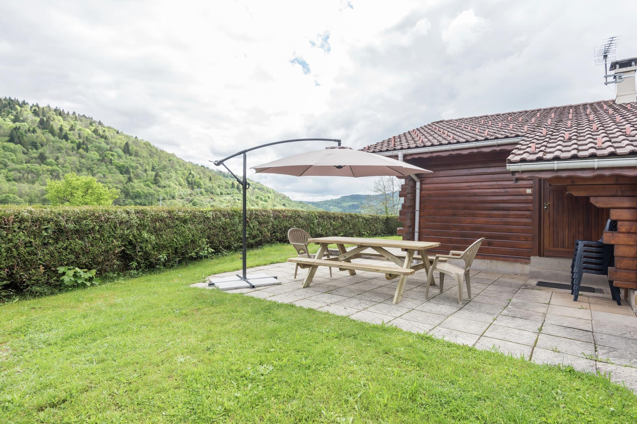 På kanten af et populært feriested kaldet La Bresse ligger denne træhytte i et chalet deveelopment. De hyggeligt indrettede hytter er rummeligt indrettede og har en terrasse på forsiden og siden af boligen, havemøbler og grill.