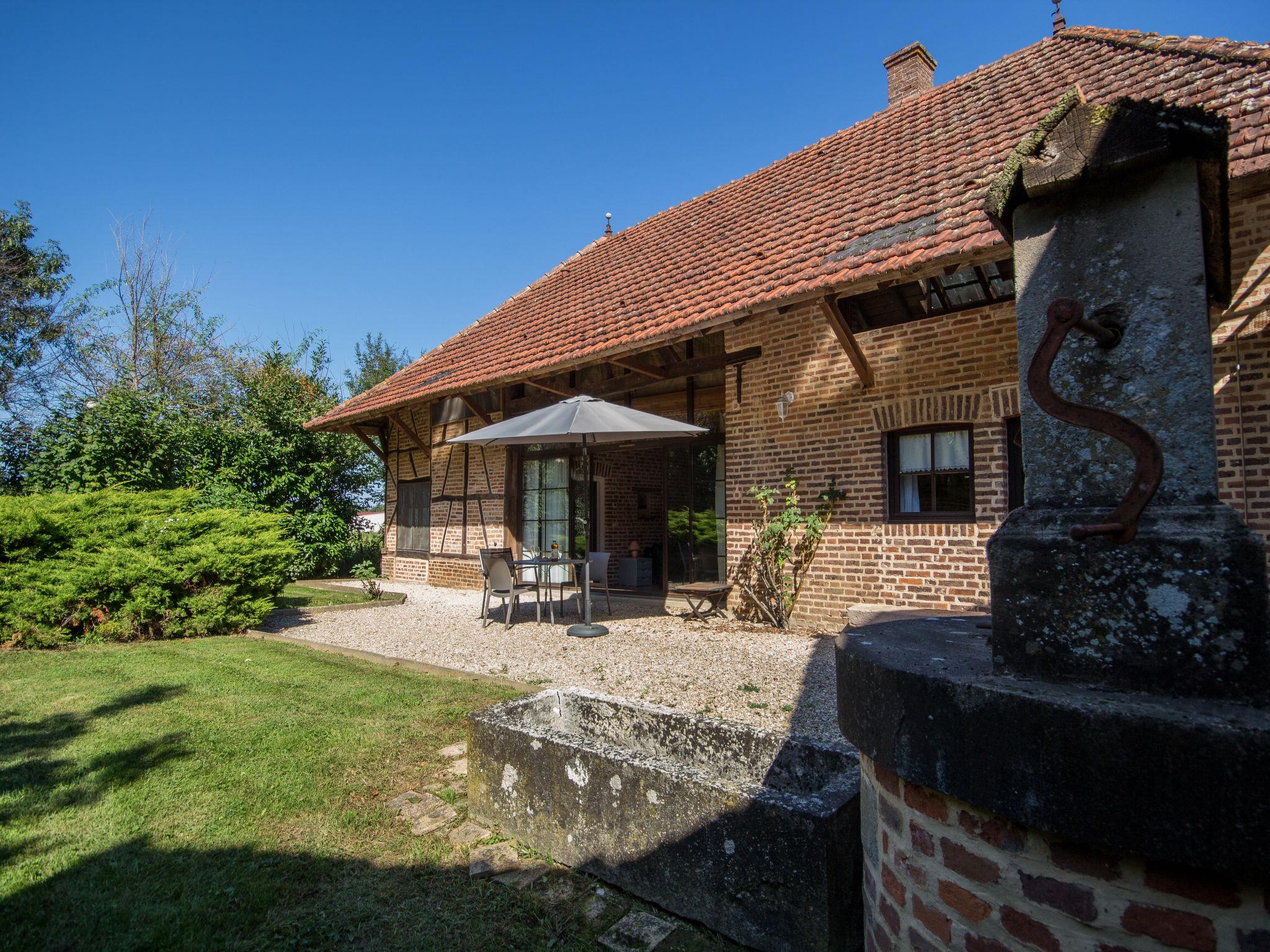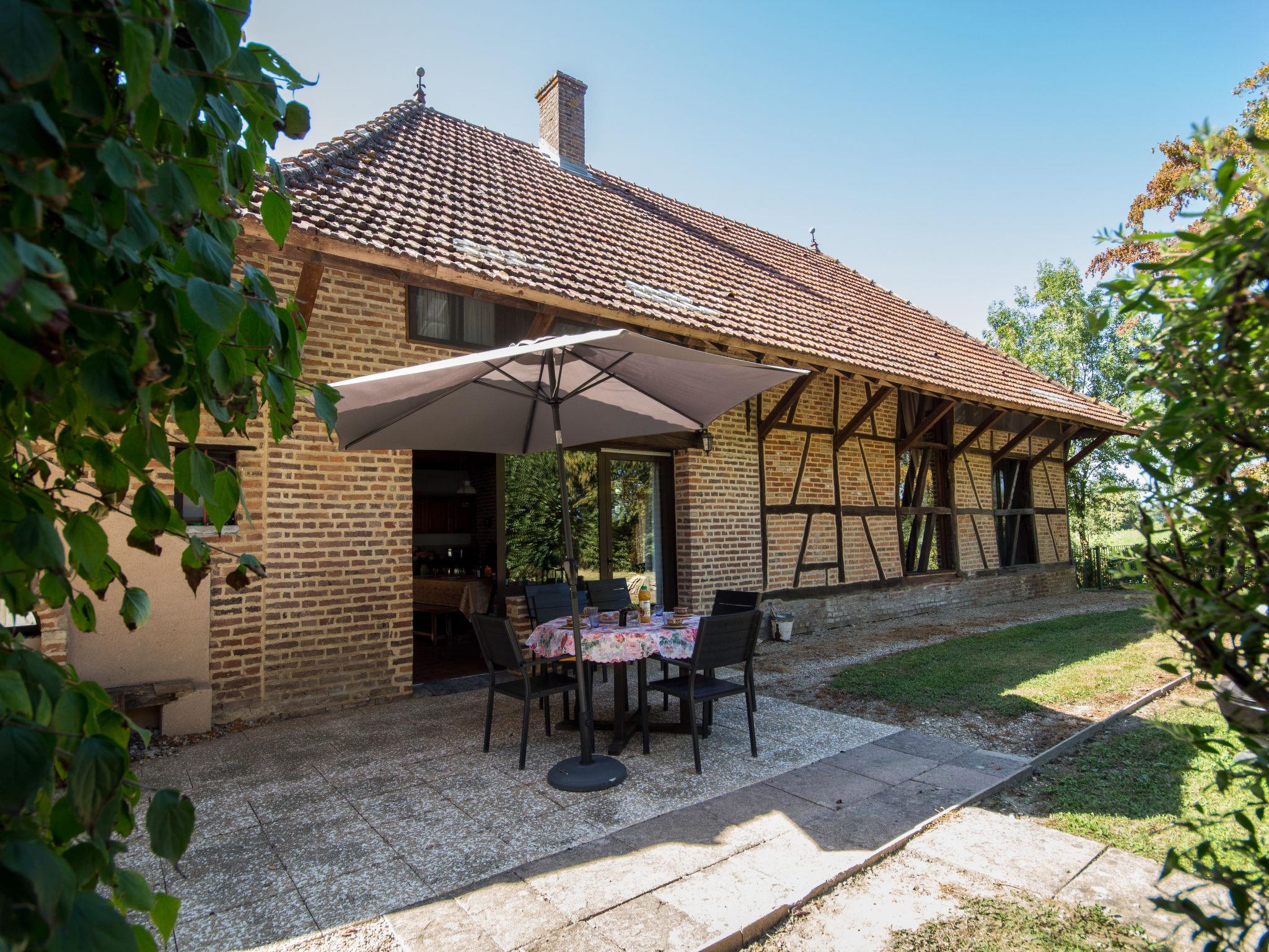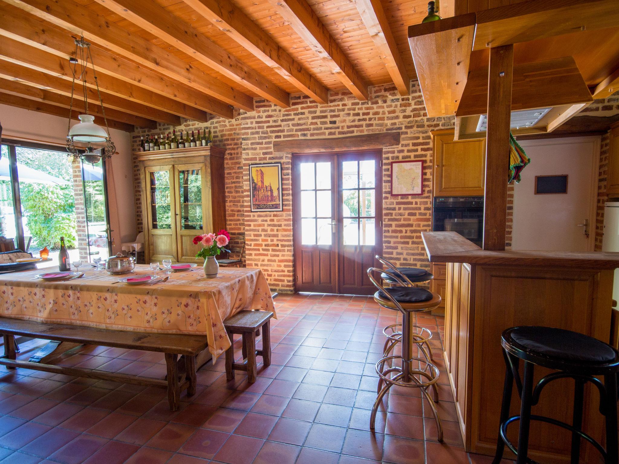 Beautiful, cosy country house "Alexandre", built in 1892, surrounded by meadows and fields. 800 m from the centre of La Chapelle-Saint Sauveur, 7 km from the centre of Pierre de Bresse, outside the resort, 40 km from the centre of Beaune, in a secluded position, in a cul-de-sac. Private: property 1 ha with wildlife garden and trees, natural garden, meadow, pond, swimming pool (above ground) (4.60 m diameter, depth 120 cm, seasonal availability: 01.Jun. - 30.Sep.). Parking on the premises. Shop 800 m, supermarket 7 km, bus stop 750 m, outdoor swimming pool 1 km. Fishing possibilities 1 km. Part of the house is closed and unoccupied. Partially fenced land.