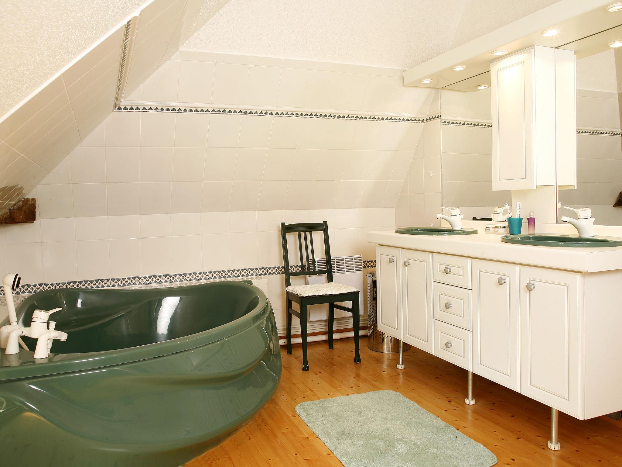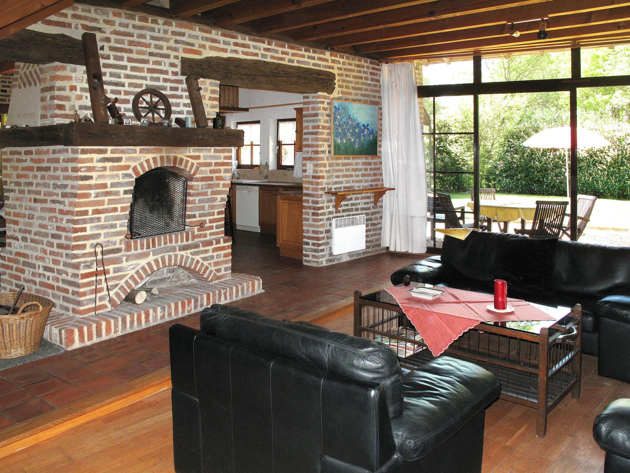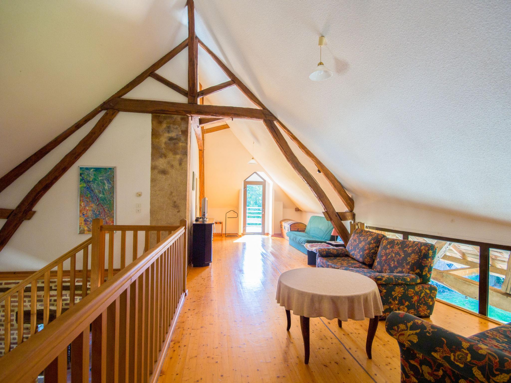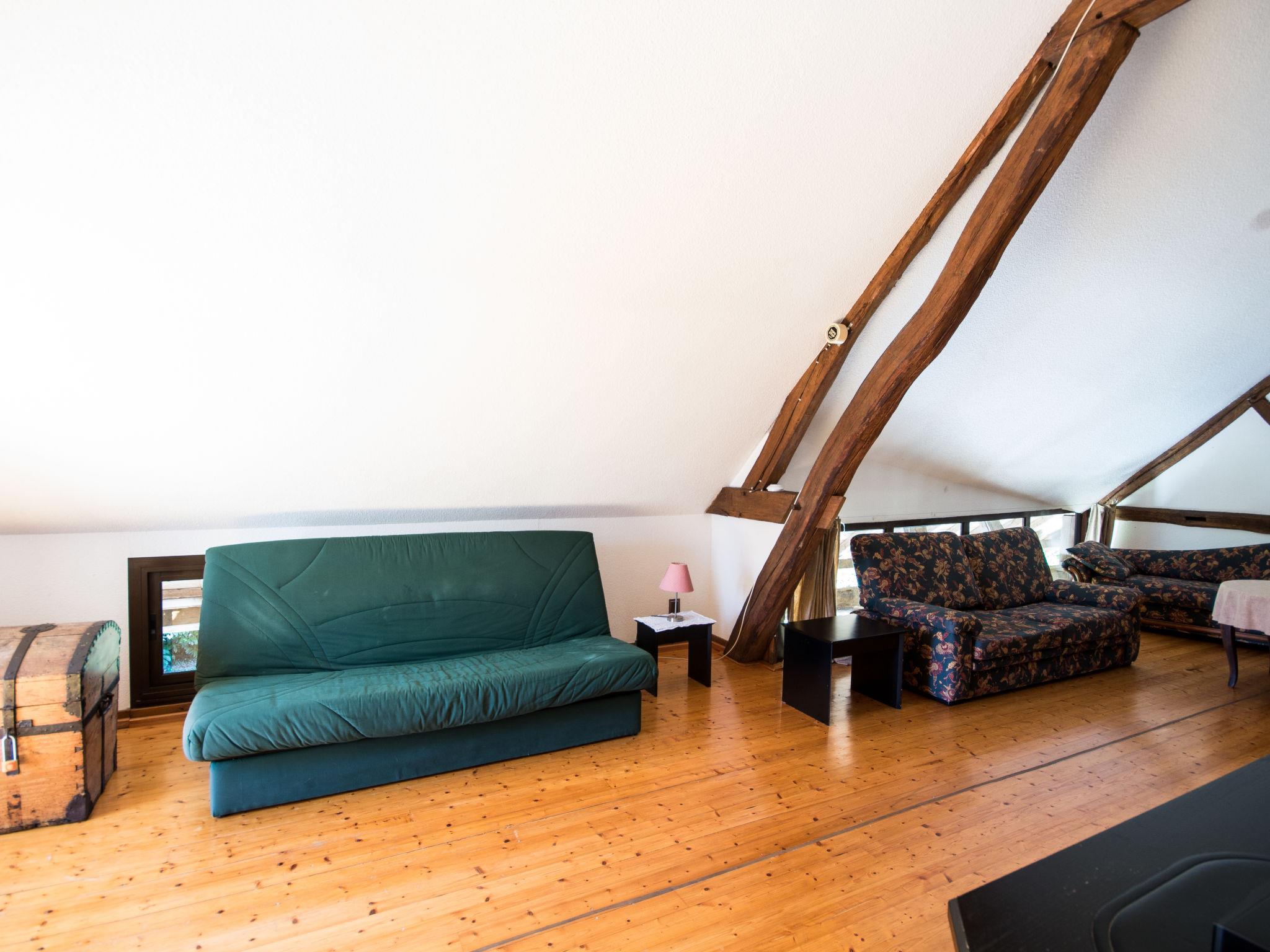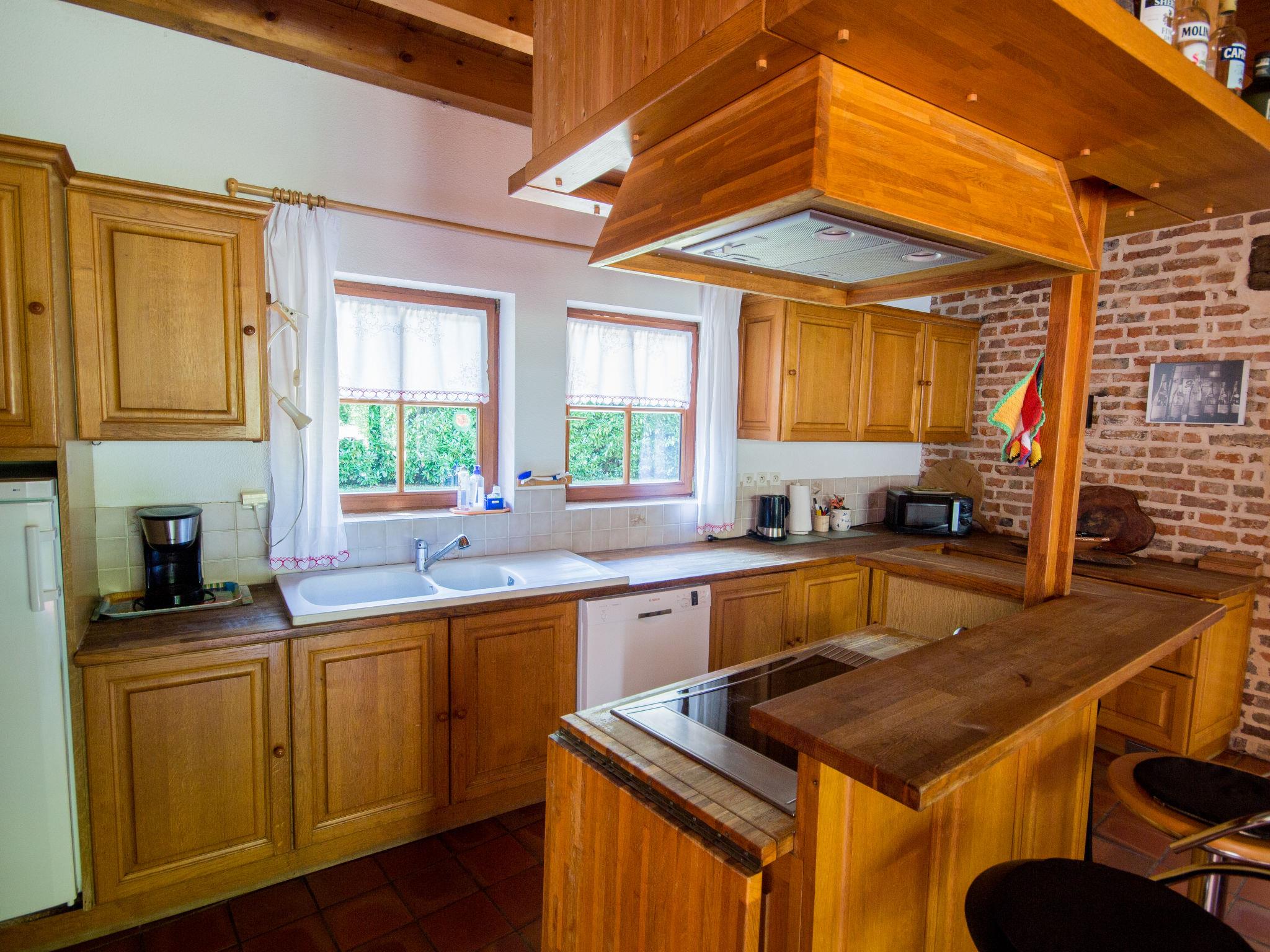 "Alexandre", 4-room house 180 m2 on 2 levels. Spacious, renovated, tasteful and cosy furnishings: large living/dining room with open-hearth fireplace, dining table, satellite TV and hi-fi system. Exit to the garden, to the terrace. 1 room with 1 double bed (200 cm, length 200 cm), shower/WC. Open kitchen (oven, dishwasher, 4 ceramic glass hob hotplates, toaster, kettle, microwave, freezer, electric coffee machine) with dining table. Sep. WC. Upper floor: open gallery with sloping ceilings with 1 double sofabed. Exit to the balcony. 1 room with sloping ceilings with 1 double bed (180 cm, length 190 cm), bath/WC. 1 room with sloping ceilings with 1 double bed (180 cm, length 195 cm), shower/WC, double hand-basin and with corner bath. Electric heating, underfloor heating. Wooden floors. 2 terraces. Terrace furniture, barbecue (portable), deck chairs (4), box-room. View of the garden. Facilities: washing machine, dryer, iron. Internet (WiFi, free). Please note: maximum 2 pets/ dogs allowed. Smoke alarm, fire extinguisher. When there are less than the maximum number of guests staying at the property, not all of the bedrooms will be available for use. Instead of an enclosed bedroom, some sleeping areas are located in an open-plan area (gallery, alcove, etc.).