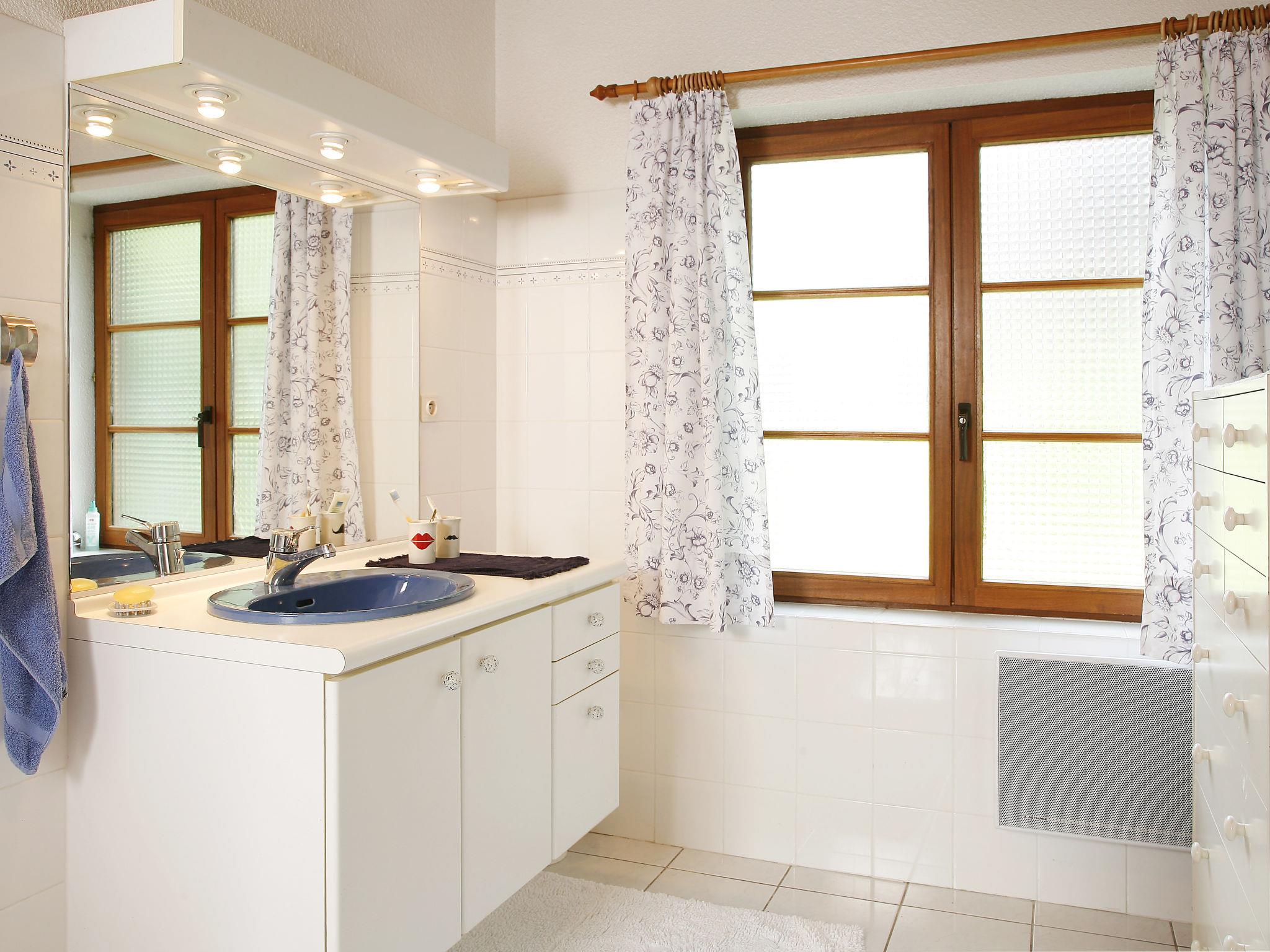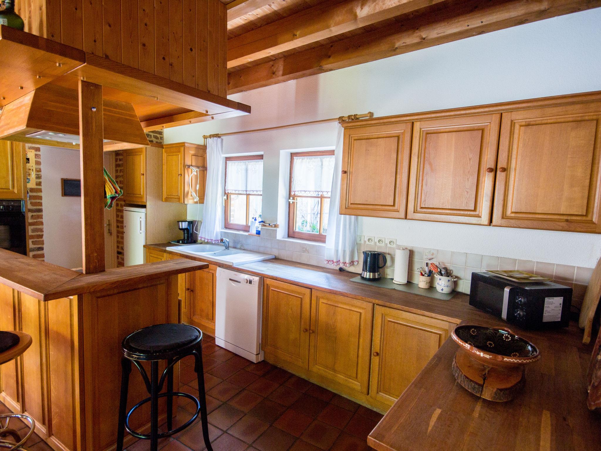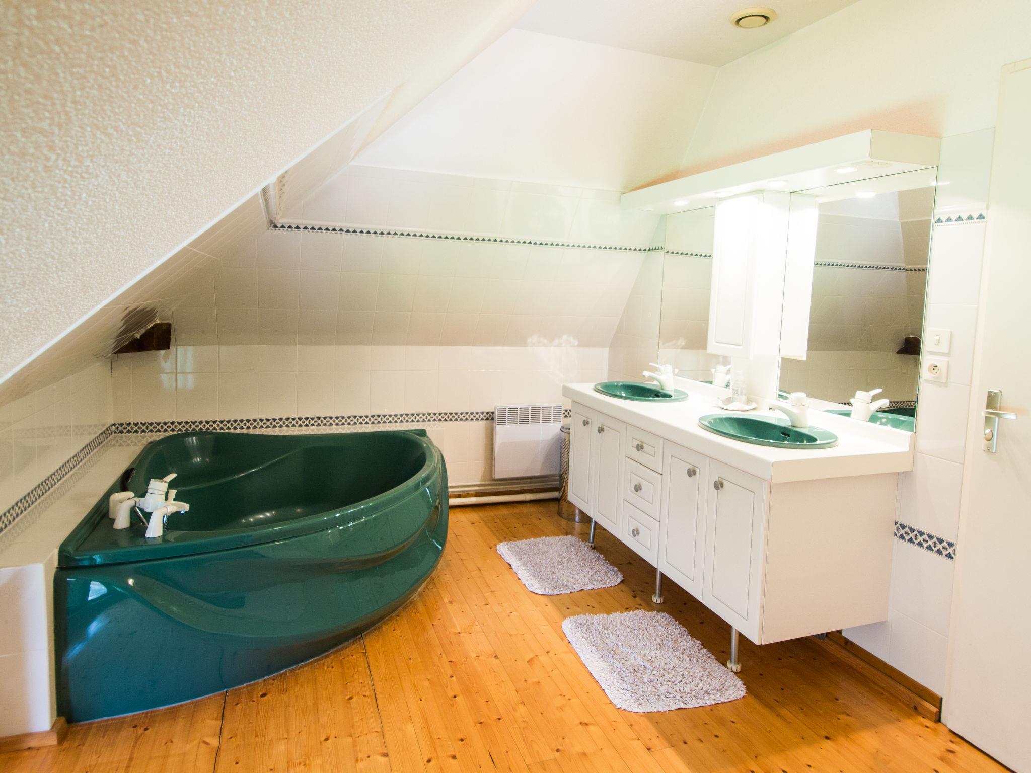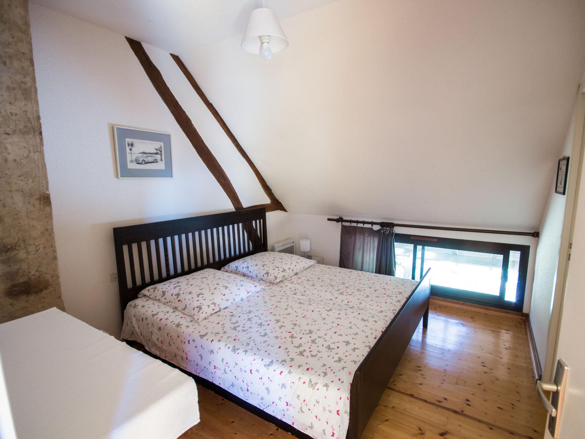 "Alexandre", 4-room house 180 m2 on 2 levels. Spacious, renovated, tasteful and cosy furnishings: large living/dining room with open-hearth fireplace, dining table, satellite TV and hi-fi system. Exit to the garden, to the terrace. 1 room with 1 double bed (200 cm, length 200 cm), shower/WC. Open kitchen (oven, dishwasher, 4 ceramic glass hob hotplates, toaster, kettle, microwave, freezer, electric coffee machine) with dining table. Sep. WC. Upper floor: open gallery with sloping ceilings with 1 double sofabed. Exit to the balcony. 1 room with sloping ceilings with 1 double bed (180 cm, length 190 cm), bath/WC. 1 room with sloping ceilings with 1 double bed (180 cm, length 195 cm), shower/WC, double hand-basin and with corner bath. Electric heating, underfloor heating. Wooden floors. 2 terraces. Terrace furniture, barbecue (portable), deck chairs (4), box-room. View of the garden. Facilities: washing machine, dryer, iron. Internet (WiFi, free). Please note: maximum 2 pets/ dogs allowed. Smoke alarm, fire extinguisher. When there are less than the maximum number of guests staying at the property, not all of the bedrooms will be available for use. Instead of an enclosed bedroom, some sleeping areas are located in an open-plan area (gallery, alcove, etc.).