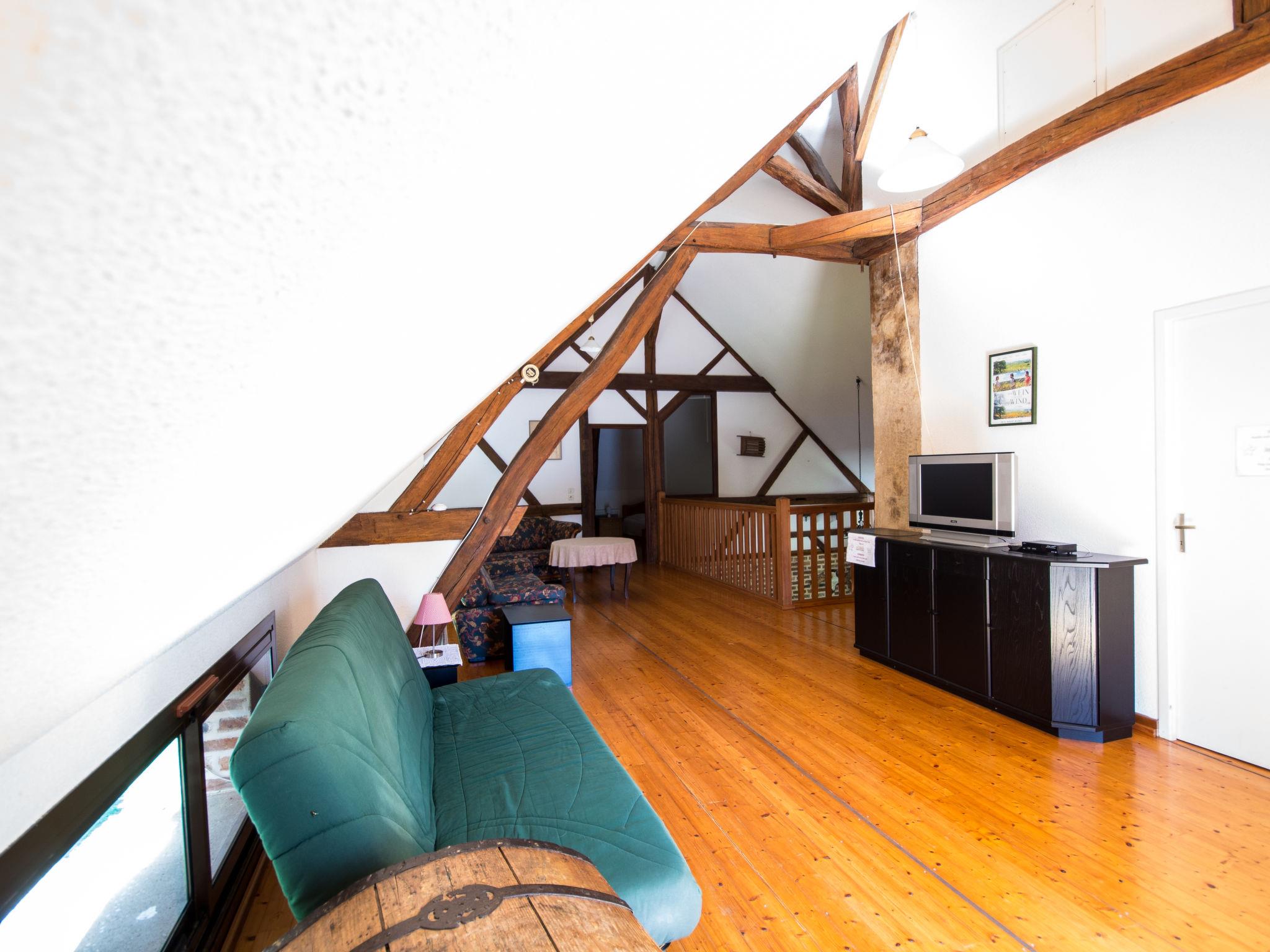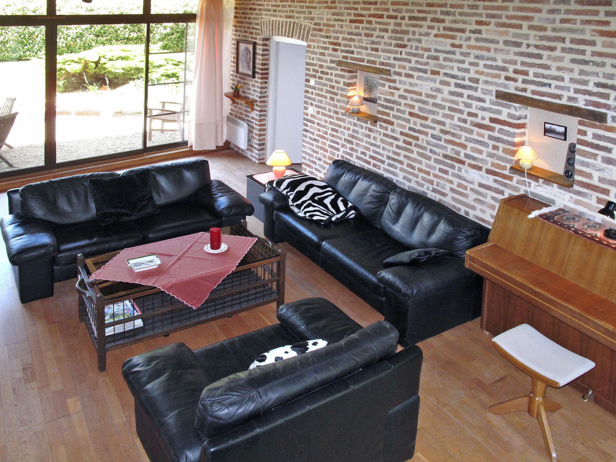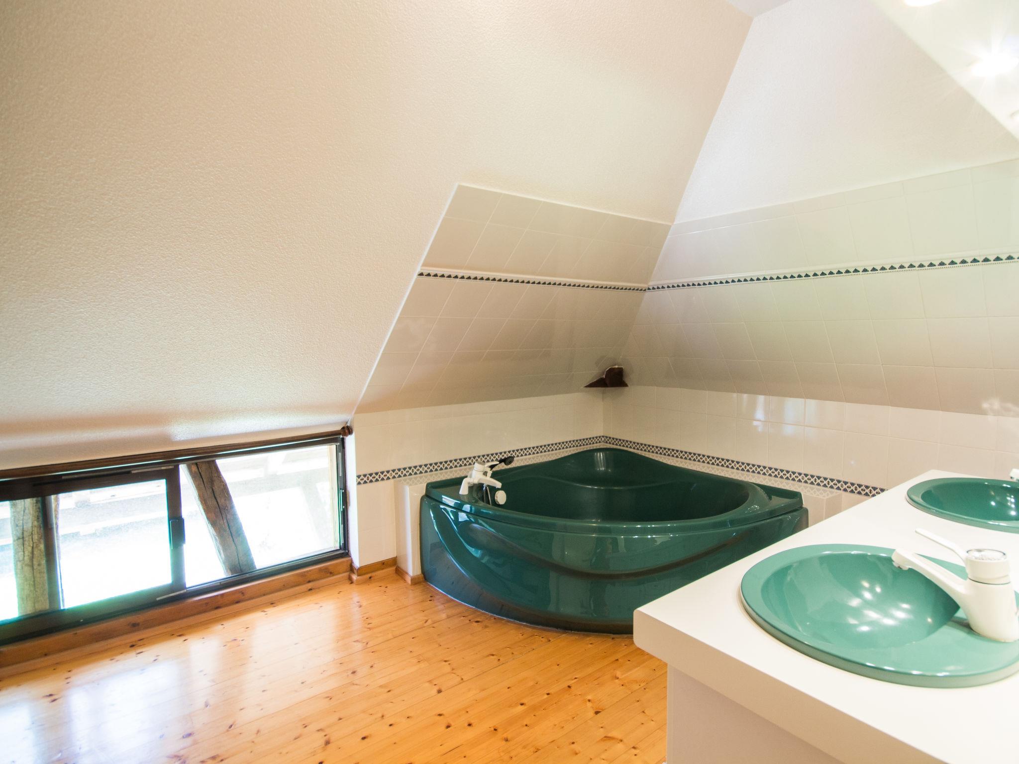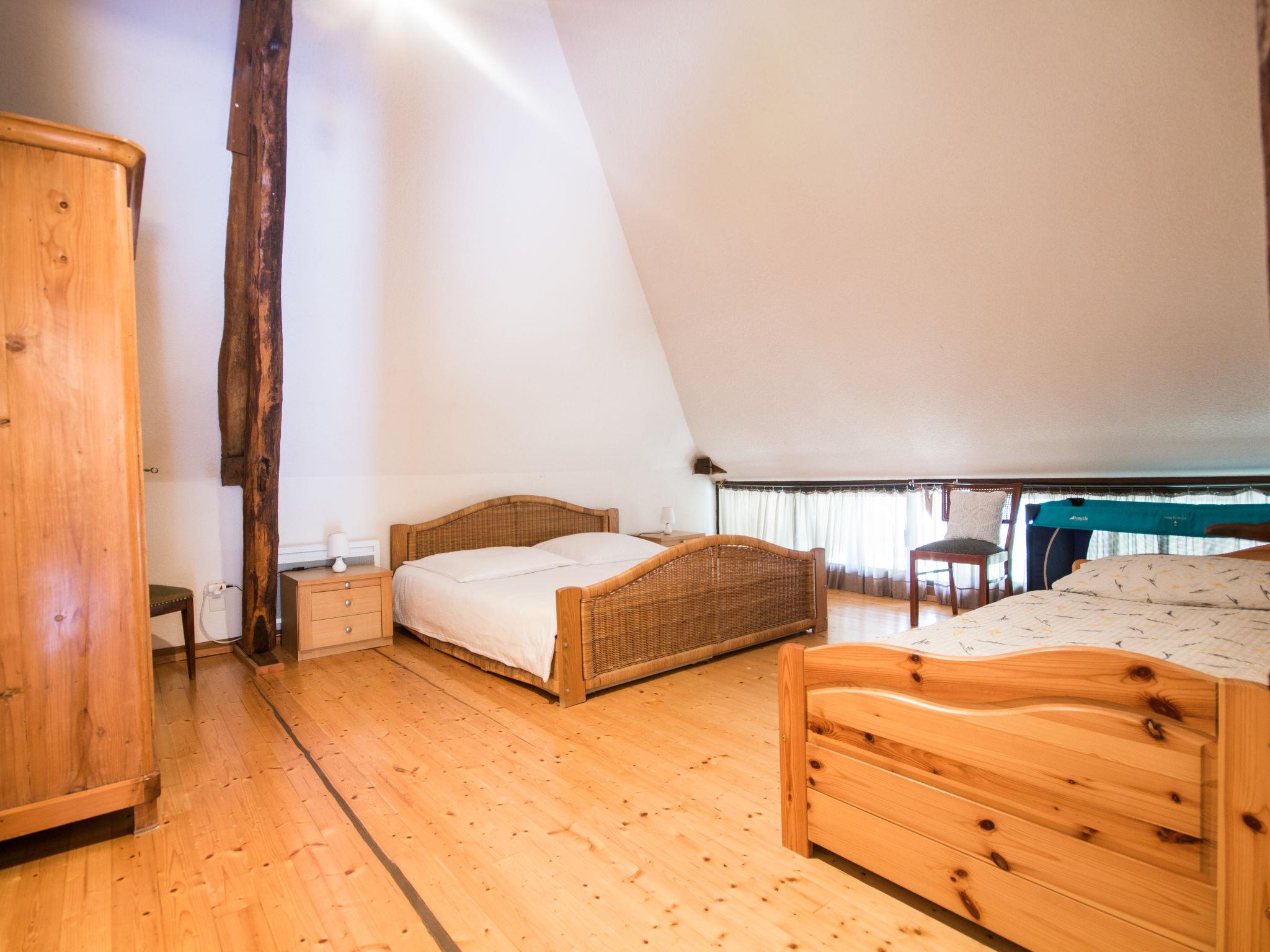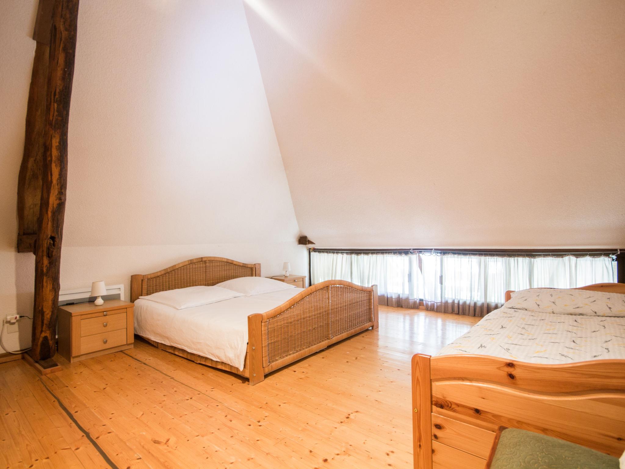 "Alexandre", 4-room house 180 m2 on 2 levels. Spacious, renovated, tasteful and cosy furnishings: large living/dining room with open-hearth fireplace, dining table, satellite TV and hi-fi system. Exit to the garden, to the terrace. 1 room with 1 double bed (200 cm, length 200 cm), shower/WC. Open kitchen (oven, dishwasher, 4 ceramic glass hob hotplates, toaster, kettle, microwave, freezer, electric coffee machine) with dining table. Sep. WC. Upper floor: open gallery with sloping ceilings with 1 double sofabed. Exit to the balcony. 1 room with sloping ceilings with 1 double bed (180 cm, length 190 cm), bath/WC. 1 room with sloping ceilings with 1 double bed (180 cm, length 195 cm), shower/WC, double hand-basin and with corner bath. Electric heating, underfloor heating. Wooden floors. 2 terraces. Terrace furniture, barbecue (portable), deck chairs (4), box-room. View of the garden. Facilities: washing machine, dryer, iron. Internet (WiFi, free). Please note: maximum 2 pets/ dogs allowed. Smoke alarm, fire extinguisher. When there are less than the maximum number of guests staying at the property, not all of the bedrooms will be available for use. Instead of an enclosed bedroom, some sleeping areas are located in an open-plan area (gallery, alcove, etc.).