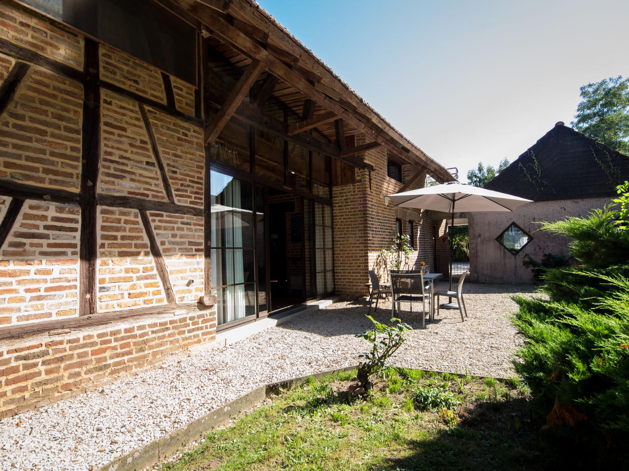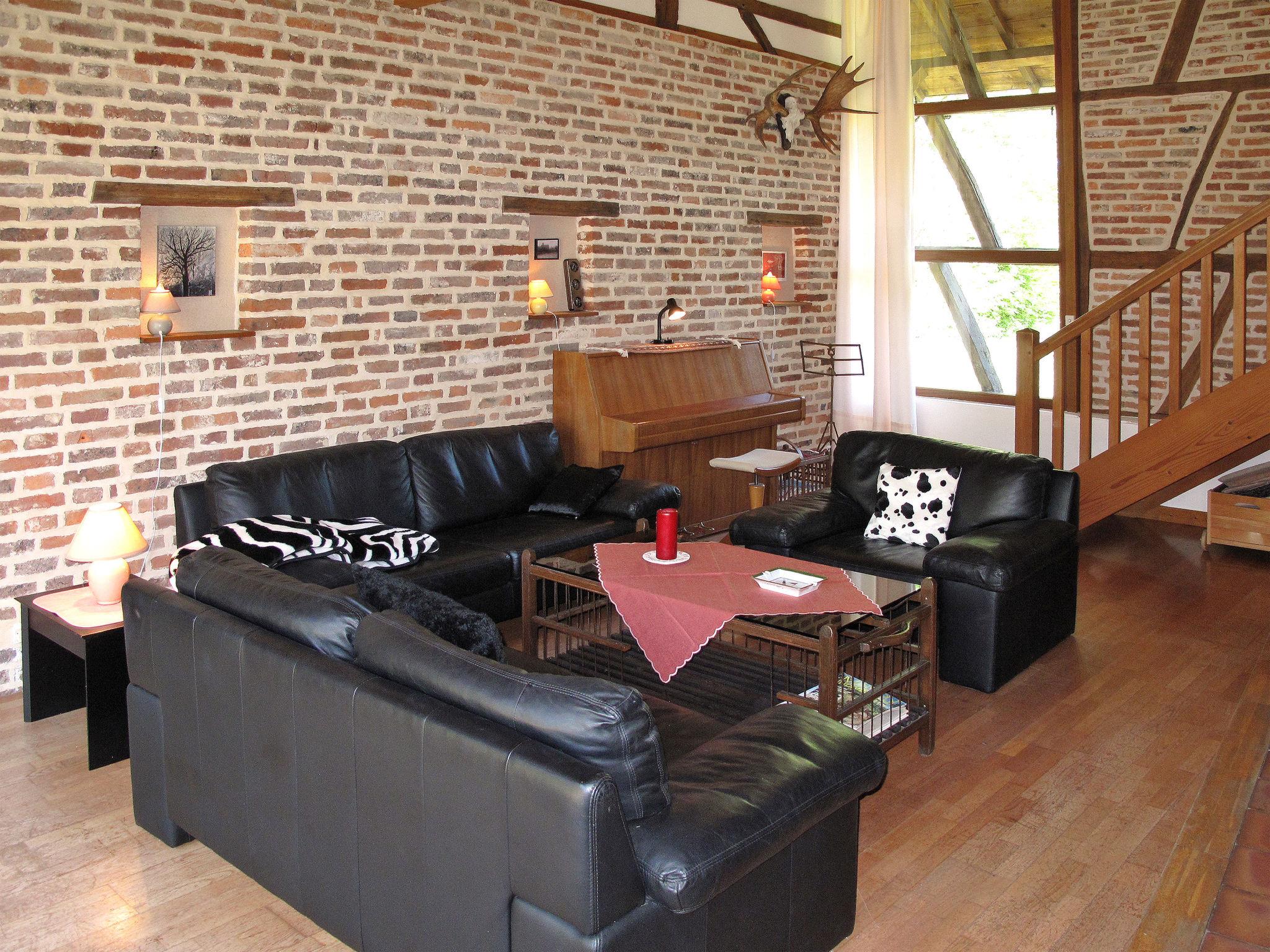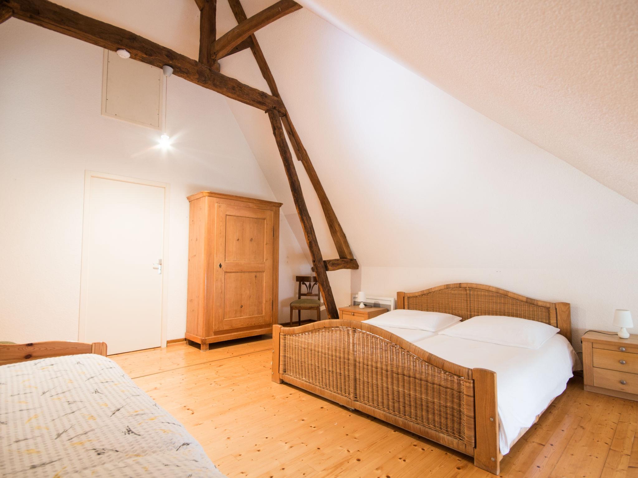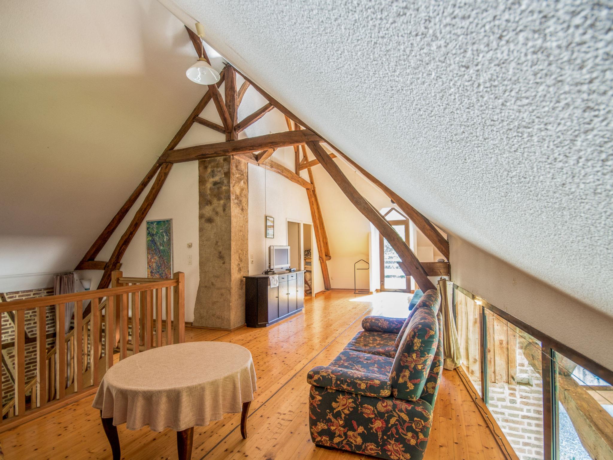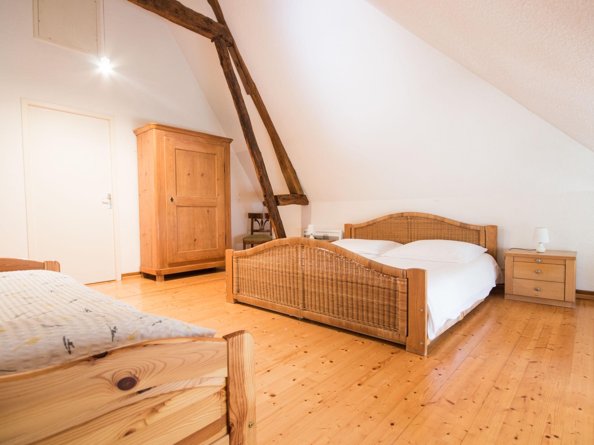 "Alexandre", 4-room house 180 m2 on 2 levels. Spacious, renovated, tasteful and cosy furnishings: large living/dining room with open-hearth fireplace, dining table, satellite TV and hi-fi system. Exit to the garden, to the terrace. 1 room with 1 double bed (200 cm, length 200 cm), shower/WC. Open kitchen (oven, dishwasher, 4 ceramic glass hob hotplates, toaster, kettle, microwave, freezer, electric coffee machine) with dining table. Sep. WC. Upper floor: open gallery with sloping ceilings with 1 double sofabed. Exit to the balcony. 1 room with sloping ceilings with 1 double bed (180 cm, length 190 cm), bath/WC. 1 room with sloping ceilings with 1 double bed (180 cm, length 195 cm), shower/WC, double hand-basin and with corner bath. Electric heating, underfloor heating. Wooden floors. 2 terraces. Terrace furniture, barbecue (portable), deck chairs (4), box-room. View of the garden. Facilities: washing machine, dryer, iron. Internet (WiFi, free). Please note: maximum 2 pets/ dogs allowed. Smoke alarm, fire extinguisher. When there are less than the maximum number of guests staying at the property, not all of the bedrooms will be available for use. Instead of an enclosed bedroom, some sleeping areas are located in an open-plan area (gallery, alcove, etc.).