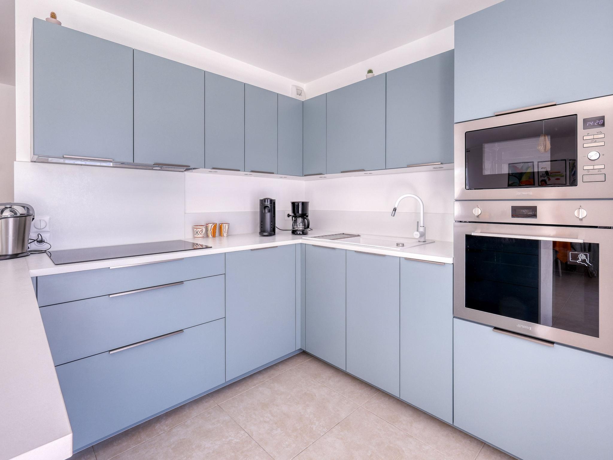 4-room terraced house 120 m2 on 2 levels. Spacious and bright, comfortable and modern furnishings: large living/dining room 35 m2 with dining table and TV (flat screen). Exit to the garden, to the terrace. Open kitchen (oven, dishwasher, 4 induction hot plates, microwave, freezer, electric coffee machine, Capsules for coffee machine (Vertuo + filtre) extra) with bar. Exit to the terrace. Shower/bidet/WC. Air-conditioning, forced-air heating. Upper floor: 1 room with 1 french bed (160 cm, length 200 cm), shower and air conditioning. 1 room with 1 french bed (160 cm, length 200 cm), air conditioning. 1 room with 2 beds (90 cm, length 190 cm), air conditioning. Shower, sep. WC. Air-conditioning, forced-air heating. Terrace 20 m2, large terrace 60 m2. Facilities: washing machine, iron. Internet (WiFi, free). Parking (2 cars). Please note: non-smoking house. TV only FR. Smoke alarm. The large 60m2 terrace is located on the roof of the 1st floor. It is unfurnished (no terrace furniture). Offer by a private individual according to Art. 155, IV of CGI. 13028002495H4