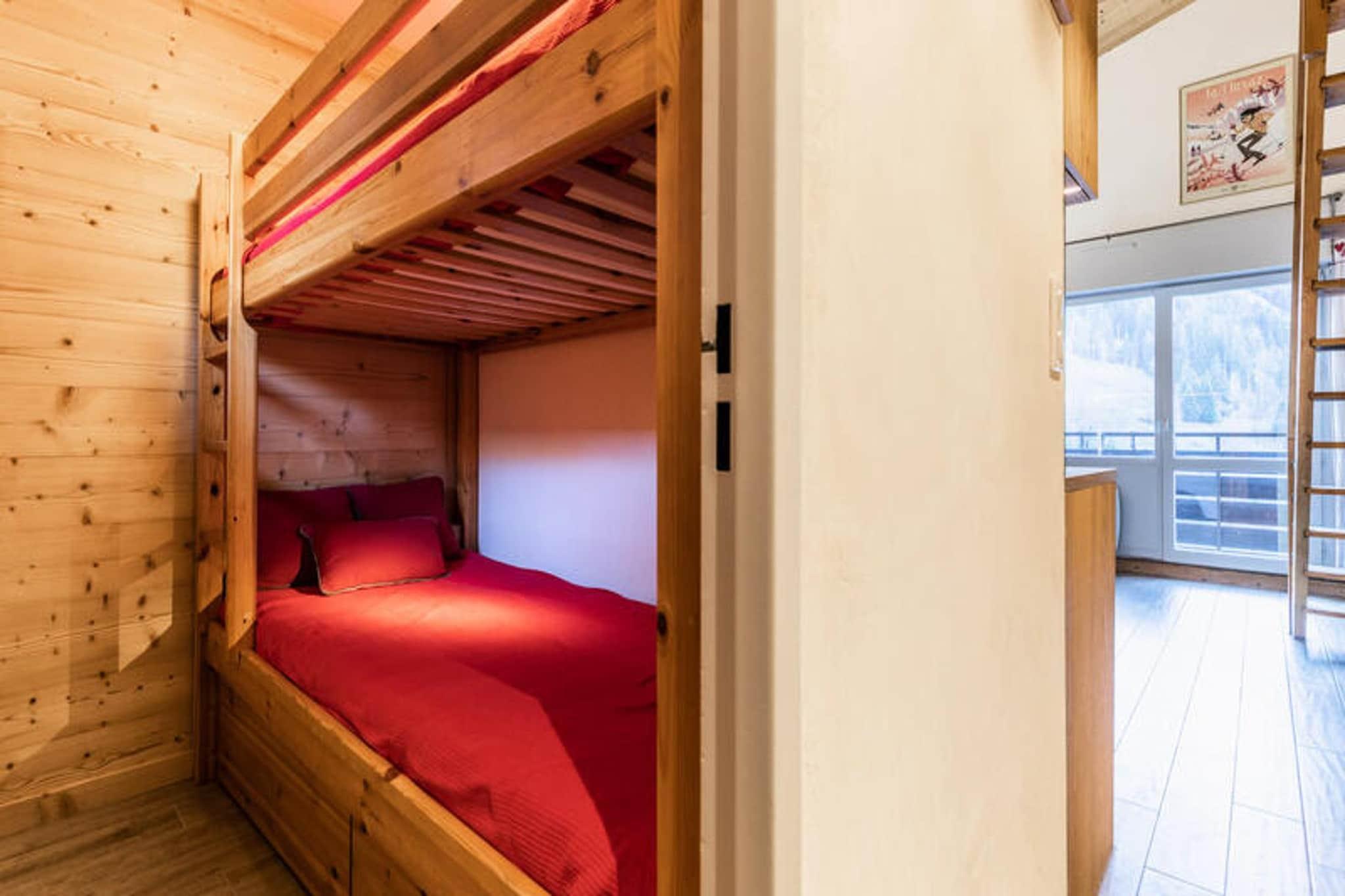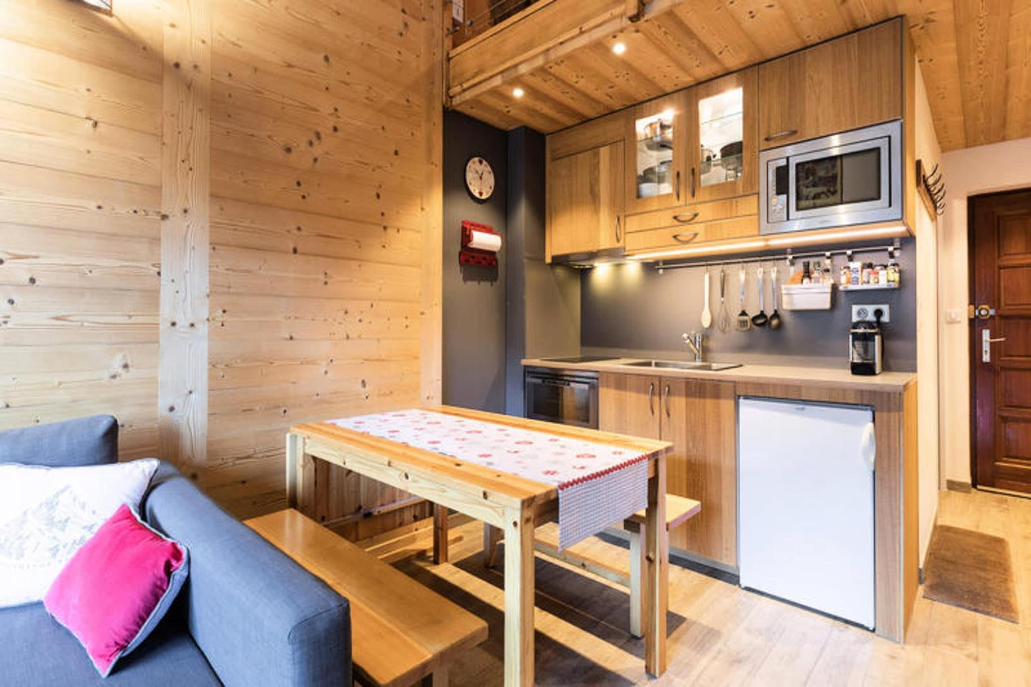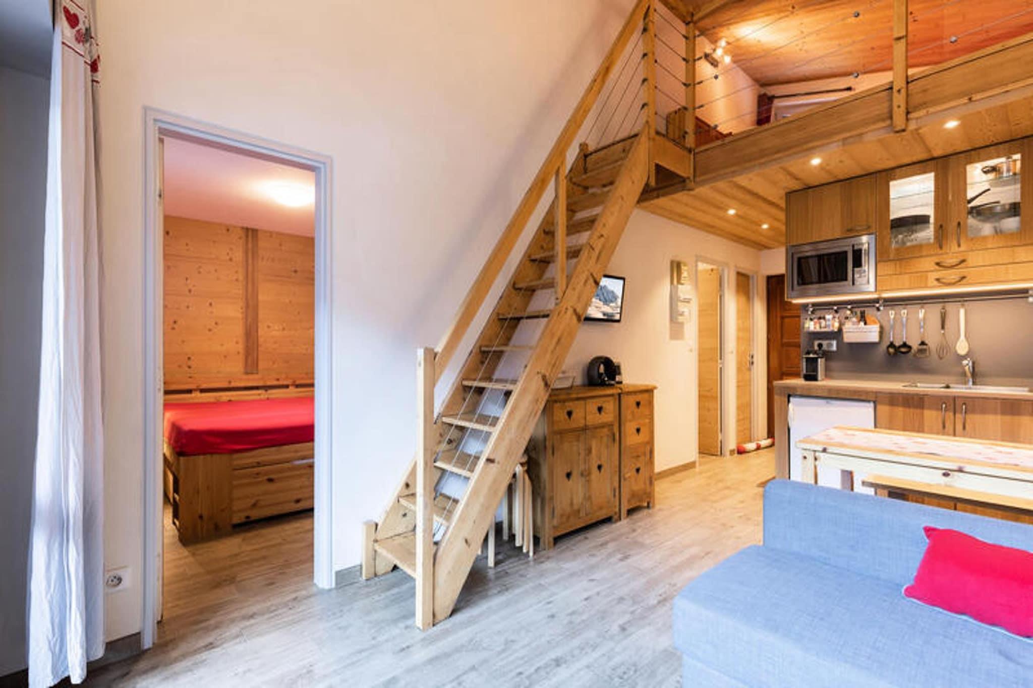 Ejendommen tilbyder sammen med sit hyggelige og funktionelle design en behagelig plads til op til 6 gæster. Lejligheden er udstyret med et soveværelse med dobbeltseng, et bjerghjørne med to køjesenge (ikke egnet til børn under seks år) og en lofts-mezzanin med en enkeltseng og en ekstra udtræksseng. Stuen har en komfortabel sofa, et fladskærms-tv og en spiseplads. En sydvendt balkon giver en dejlig udsigt over parkeringspladsen La Balme og de omkringliggende bjerge. Lejligheden er ikke-ryger, og kæledyr er ikke tilladt. Gæsterne har også adgang til et skiskab og opvarmning med gulvvarme, hvilket sikrer et varmt og behageligt ophold. Sengetøj, herunder dynebetræk, lagner og pudebetræk, leveres. Yderligere faciliteter til rådighed for leje inkluderer babyudstyr eller andet tilbehør, hvis det er nødvendigt. Boligen er bekvemt placeret i den fredelige og naturskønne Confins Valley, og tilbyder både vinter og sommer adgang til forskellige aktiviteter. Lejligheden ligger kun 150 meter fra La Balme/Fernuy-svævebanerne og 2 km fra starten af ??langrendsløjper. Om vinteren er der en shuttle-stop kun 150 meter fra ejendommen, hvilket gør det nemt at komme til skiområder og andre seværdigheder. Om sommeren er shuttlestoppet lidt længere på 250 meter. Boligen ligger 5 km fra landsbyen om vinteren og 3,5 km om sommeren, hvilket giver nem adgang til lokale butikker og faciliteter, mens den stadig tilbyder et roligt tilflugtssted. Den nærmeste togstation er Annecy SNCF, 37 km væk, og La Clusaz busstation ligger omkring 5,65 km fra ejendommen. Lejligheden har et veludstyret køkken med køleskab, induktionskomfur, ovn, opvaskemaskine, mikroovn og Nespresso-maskine, så gæsterne kan tilberede måltider, når det passer dem. Opholdsområdet byder på et indbydende sted at slappe af med en behagelig sofa og et fladskærms-tv. For ekstra bekvemmelighed er en vaskemaskine/tørretumbler tilgængelig på badeværelset. Boligen tilbyder elvarme, herunder gulvforvarmning for komfort i de kolde måneder. Med sin nærhed til pisterne og udsigten over bjergene udgør lejligheden en perfekt base for udendørsentusiaster, hvilket gør den ideel til både vinter- og sommeraktiviteter.