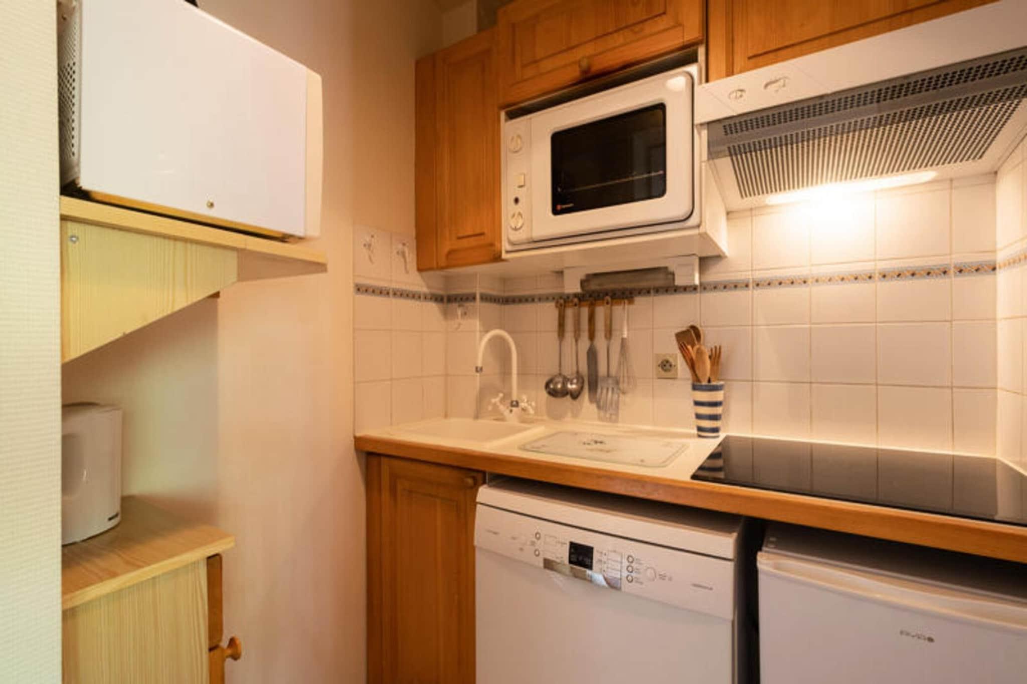 Dette hyggelige 27 m² store studie med et sovehjørne er beliggende i den øvre landsby La Clusaz, kun 250 meter fra Bossonnet Telemix-liften og skiskolens afgang. Lejligheden kan komfortabelt rumme op til fire personer, og byder på et veludstyret tekøkken med køleskab, ovn, mikroovn og opvaskemaskine. Stuen har en spiseplads og en rapido-dobbeltsovesofa samt et fladskærms-tv og en sydvendt balkon med smuk udsigt over resortet og de omkringliggende bjerge. Sovehjørnet, adskilt af et gardin, inkluderer to køjesenge (øverste køje er begrænset til børn over seks år). Denne bolig, bygget i 1990, er ideelt beliggende for både vinter- og sommeraktiviteter, med en shuttle-stop lige foran bygningen om vinteren og kun 300 meter væk om sommeren. Nærliggende attraktioner omfatter skiløjperne, vandrestier og den smukke landsby La Clusaz, der byder på butikker, restauranter og charmerende alpelandskab. Annecy SNCF-togstationen ligger 33 km derfra, og La Clusaz-busstationen ligger 1,05 km derfra. Lejligheden indeholder et badeværelse med badekar, håndklædetørrer og separat toilet. Yderligere faciliteter omfatter et skiskab, overliggende garageparkering og elvarme med gulvvarme. Der medfølger dynebetræk, lagner og pudebetræk. Husdyr er tilladt, og lejligheden er ikke-ryger.