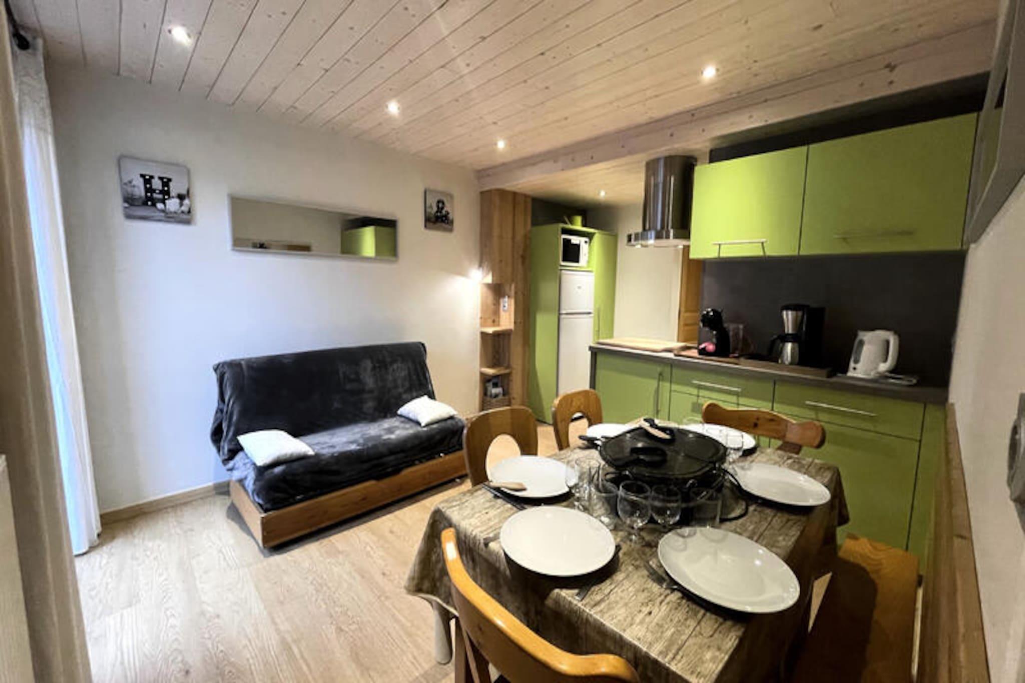 Beliggende i hjertet af La Clusaz, tilbyder lejligheden en komfortabel og veludstyret base for en mindeværdig alpine ferie. Denne 3-værelses lejlighed på 35 m², renoveret i 2016, kan rumme op til 6 personer. Beliggende på tredje sal i en charmerende bolig med i alt 10 lejligheder, den kan prale af en østvendt stue med en 9 m² stor balkon, en 2-personers BZ-sofa og et fjernsyn. Lejligheden har et veludstyret køkken med induktionskomfur med 3 brændere, mikroovn, opvaskemaskine og både kapsel og filterkaffemaskine. Lejligheden er ideelt beliggende kun 100 meter fra Champ Giguet-skilifterne, som giver hurtig adgang til alpint skiløb og Beauregard-gondolen til langrend. Gæster vil også sætte pris på nærheden til lokale faciliteter, herunder madbutikker, børnepasningscentre og vinteraktiviteter såsom skøjtebanen. La Clusazs pulserende natteliv, sammen med forskellige etablissementer for familier og børn, er inden for rækkevidde, hvilket gør dette til et ideelt sted for gæster, der søger både eventyr og afslapning. Boligen ligger også ved siden af ??et fredeligt vandløb, der tilbyder en fredfyldt atmosfære for gæsterne. Yderligere tjenester inkluderer muligheden for at leje sengetøj, babyudstyr og bestille slutrengøring, hvilket sikrer en problemfri oplevelse. For dem, der rejser med kæledyr, er et lille dyr tilladt mod et ekstra gebyr. Lejligheden har også en fælles Wi-Fi-forbindelse, sammen med varme, vand og el inkluderet i lejen.