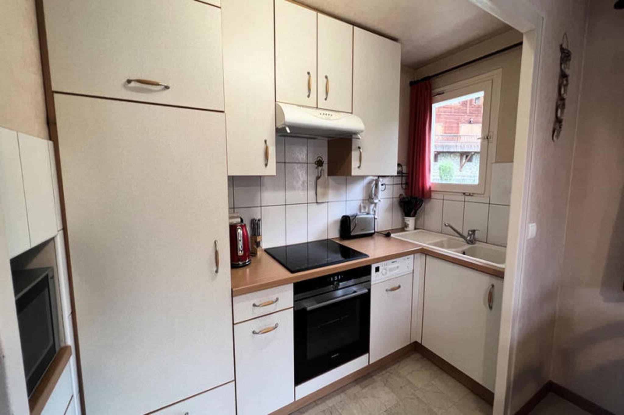 En charmerende ejendom med en fredelig atmosfære, denne alpine lejlighed kan rumme 5 til 6 gæster fordelt på tre velindrettede værelser. Det har en hyggelig opholdsstue med lænestole, en udtrækssovesofa til to og et fjernsyn, der åbner ud til en syd- og østvendt balkon med havemøbler og en parasol til udendørs afslapning. Soveværelserne inkluderer et med en dobbeltseng og en enkeltseng og et andet med to enkeltsenge, begge tilbyder rigelig opbevaring. Kæledyr under 5 kg er tilladt mod et ekstra gebyr, hvilket sikrer et alsidigt ophold. Valgfri tjenester, såsom babyudstyr og leje af sengetøj, øger komforten ved dit besøg. Ejendommen har en bekvem beliggenhed i Les Riffroids-distriktet, blot 300 meter fra landsbyens centrum og Champ Giguet og kun 200 meter fra de nærmeste skiløjper. Området giver nem adgang til alpine eventyr og lokale attraktioner. Reserveret parkering og nærhed til landsbyen sikrer, at dit ophold er problemfrit, mens de fredfyldte omgivelser byder på en fantastisk udsigt og ro. Lejlighedens køkken er fuldt udstyret med moderne apparater, herunder induktion og vitro kogeplader, en ovn, en mikrobølgeovn, et køleskab og en opvaskemaskine. Andre faciliteter omfatter en vaskemaskine, en håndklædetørrer og et separat toilet for ekstra bekvemmelighed. Gæsterne drager fordel af kollektiv centralvarme, et skiskab og delt trådløs internetadgang i boligen. Gratis velkomstsæt og tankevækkende detaljer, såsom dyner og puder, gør denne ejendom til en ideel base for en mindeværdig alpine ferie.