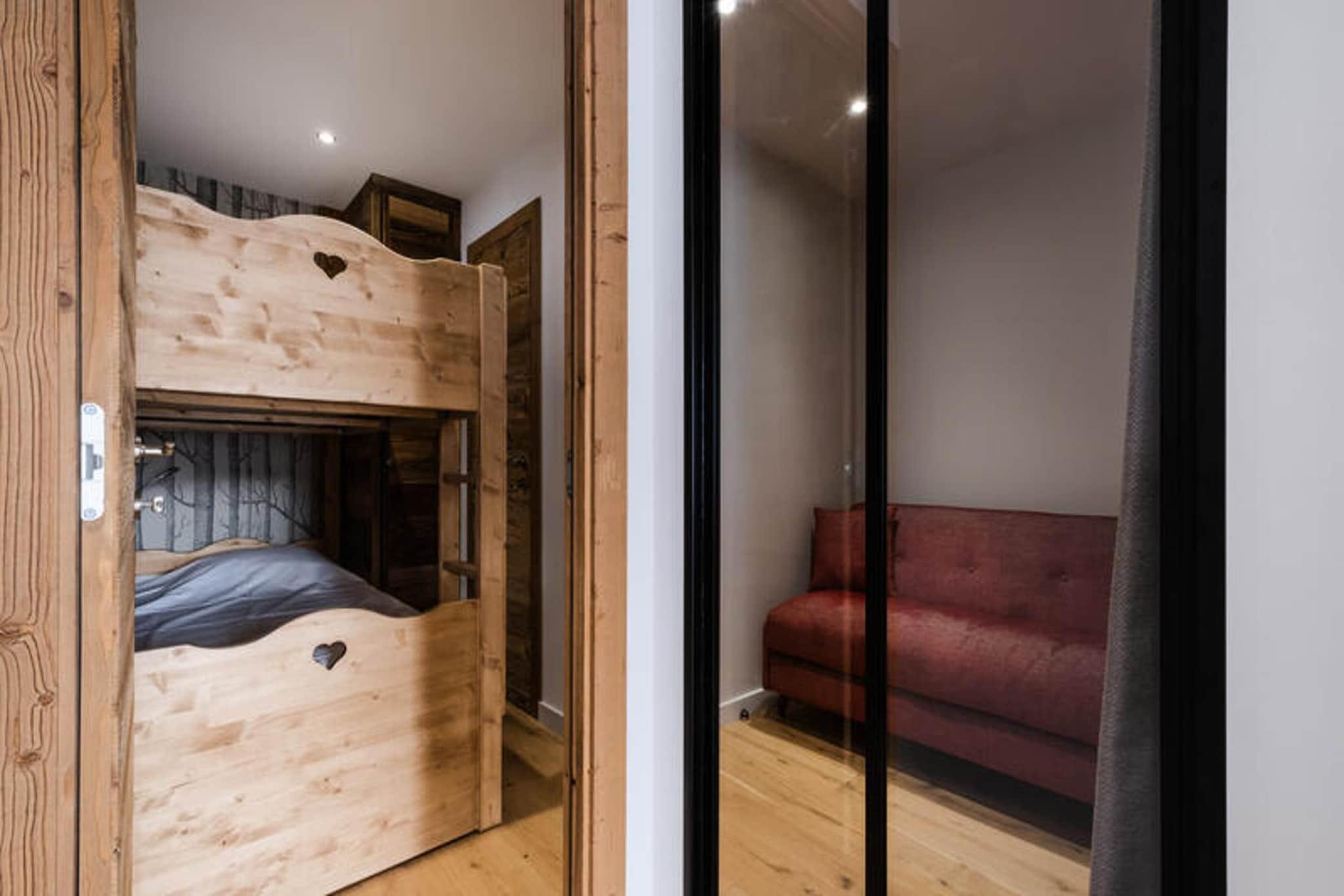 Ejendommen er sammen med dens komfortable faciliteter designet til at rumme op til seks personer i en rummelig lejlighed på 52 m². Lejligheden har en stue med sofa og et 4K-fladskærms-tv, som er ideelt til afslapning efter en dag med aktiviteter. En sydvendt balkon byder på naturskøn udsigt over landsbyen og bjergene. Ejendommen indeholder to soveværelser: et med dobbeltseng og boblebad, og et andet med Rapido dobbelt sovesofa og to køjesenge (bemærk: den øverste køje er ikke egnet til børn under seks år). For ekstra bekvemmelighed tilbyder lejligheden et skiskab med en skotørrer, udendørs parkering og opvarmning via radiatorer. Kæledyr er ikke tilladt, og lejligheden er ikke-ryger. Der er trådløs internetadgang til rådighed, og gæsterne kan nyde de opredte senge ved ankomsten. Valgfri tjenester såsom ekstra rengøring eller sengetøj kan arrangeres, men ejendommen tilbyder ingen gratis aktiviteter. Beliggende i den øverste del af landsbyen tilbyder boligen fredelige omgivelser med nem adgang til væsentlige faciliteter. De nærmeste butikker ligger 550 meter derfra, mens Bossonnet Telemix-stoleliften og skiløjperne ligger 950 meter fra ejendommen. For vintergæster er et shuttlestoppested bekvemt placeret kun 250 meter væk, med et andet stop 580 meter væk til sommerbrug. For dem, der rejser med offentlig transport, ligger Annecy SNCF-togstation 33 km fra ejendommen, mens busstationen La Clusaz kun ligger 1,1 km derfra. Boligens rolige beliggenhed giver gæsterne mulighed for at nyde områdets naturlige skønhed, mens de stadig er tæt på lokale attraktioner og transportmuligheder. Lejligheden har et fuldt udstyret køkken med moderne bekvemmeligheder, herunder et køleskab med fryser, induktionskomfur, mikroovn, ovn, opvaskemaskine og en Nespresso-kaffemaskine. En vinkælder er også tilgængelig for dem, der ønsker at opbevare drikkevarer under deres ophold. Køkkenet fører ind til spisepladsen, hvilket giver et praktisk sted for måltider. Derudover tilbyder ejendommen et separat toilet, et badeværelse med håndvask, bruser og håndklædetørrer, hvilket sikrer komfort under hele opholdet. Med en hyggelig atmosfære og bekvemme faciliteter er lejligheden ideel til familier eller små grupper, der søger et komfortabelt og veludstyret oase.