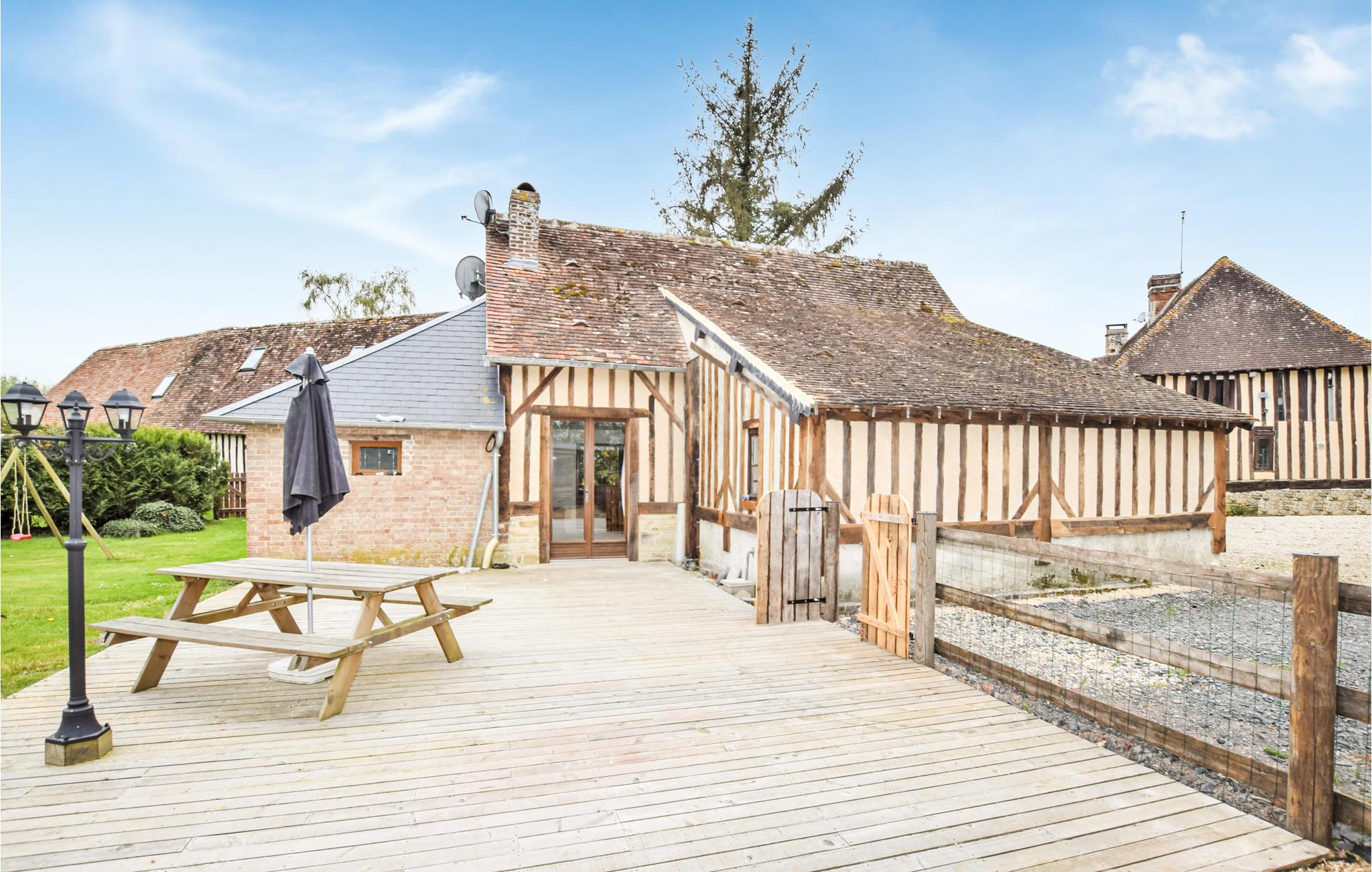 Et meget attraktivt normannisk bindingsværkshus med træterrasse og have i hjertet af Pays d'Auge.