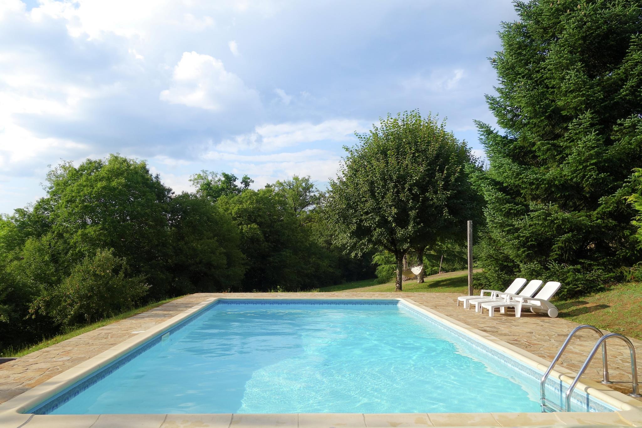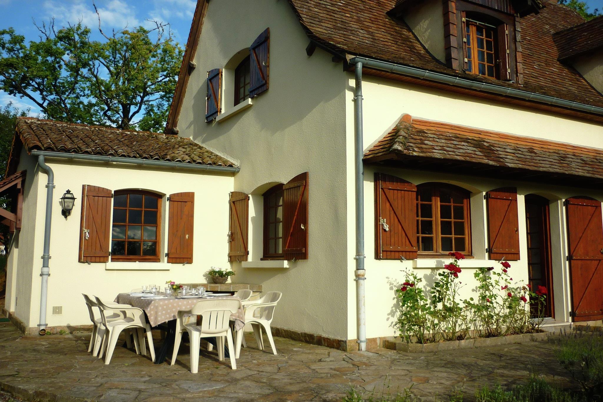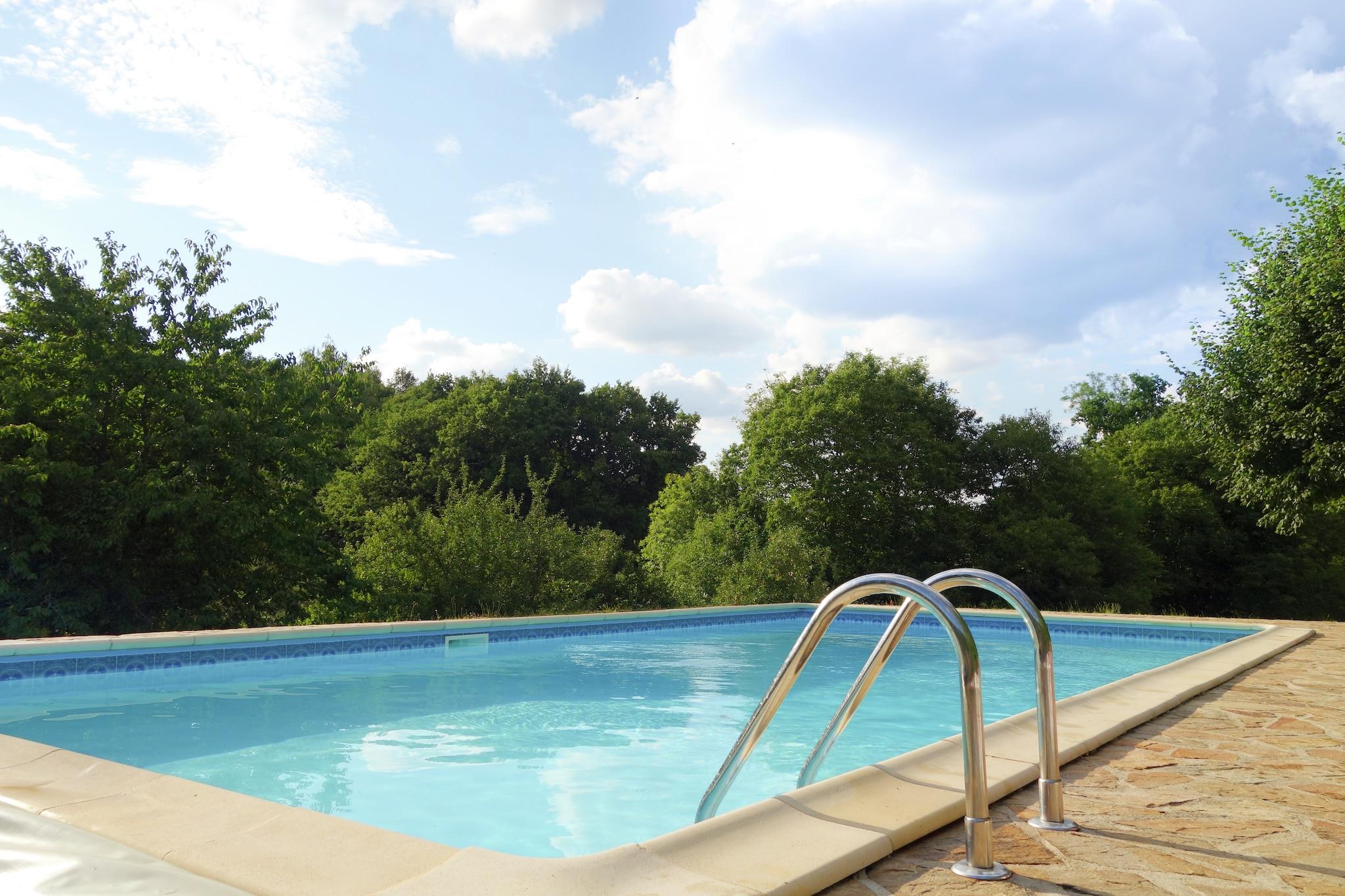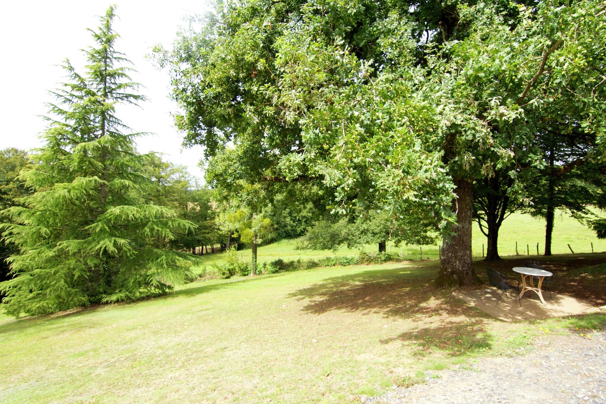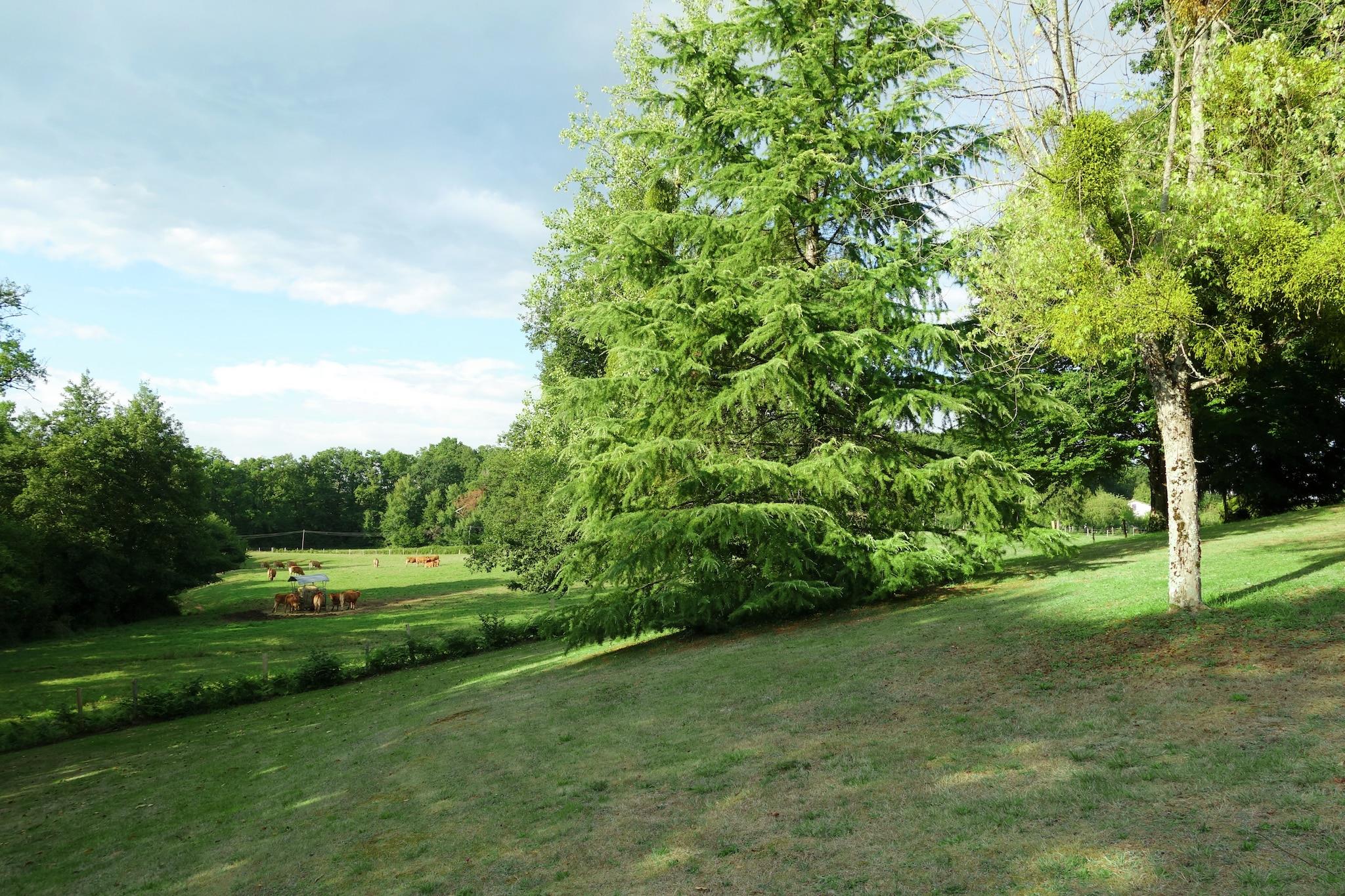Dette dejlige landlige sommerhus ligger på en bakke og er omgivet af en have på 9000 m2. Der er en privat swimmingpool i haven (tilbyder privatlivets fred). Feriehjemmet ligger mellem Limoges, hovedstaden i Limousin-regionen, med sin store katedral og mange butikker og den smukke middelalderlige by Périgueux. Det er et dejligt område med et landskab af rullende bakker og enge omgivet af skove. Den storslåede gamle kloster på bredden af floden Dronne er et besøg værd, og du kan kano der. Byen Châlus ligger 15 km væk. Det har en gammel fæstning og en go-cart spor. Søen ved St. Saud, 15 km væk, er god til svømning. Byerne St Jacques og Tiviers er begge 20 km væk. Der er markeder på lørdag morgen med regionale produkter. Dette sommerhus og området har meget at byde på.