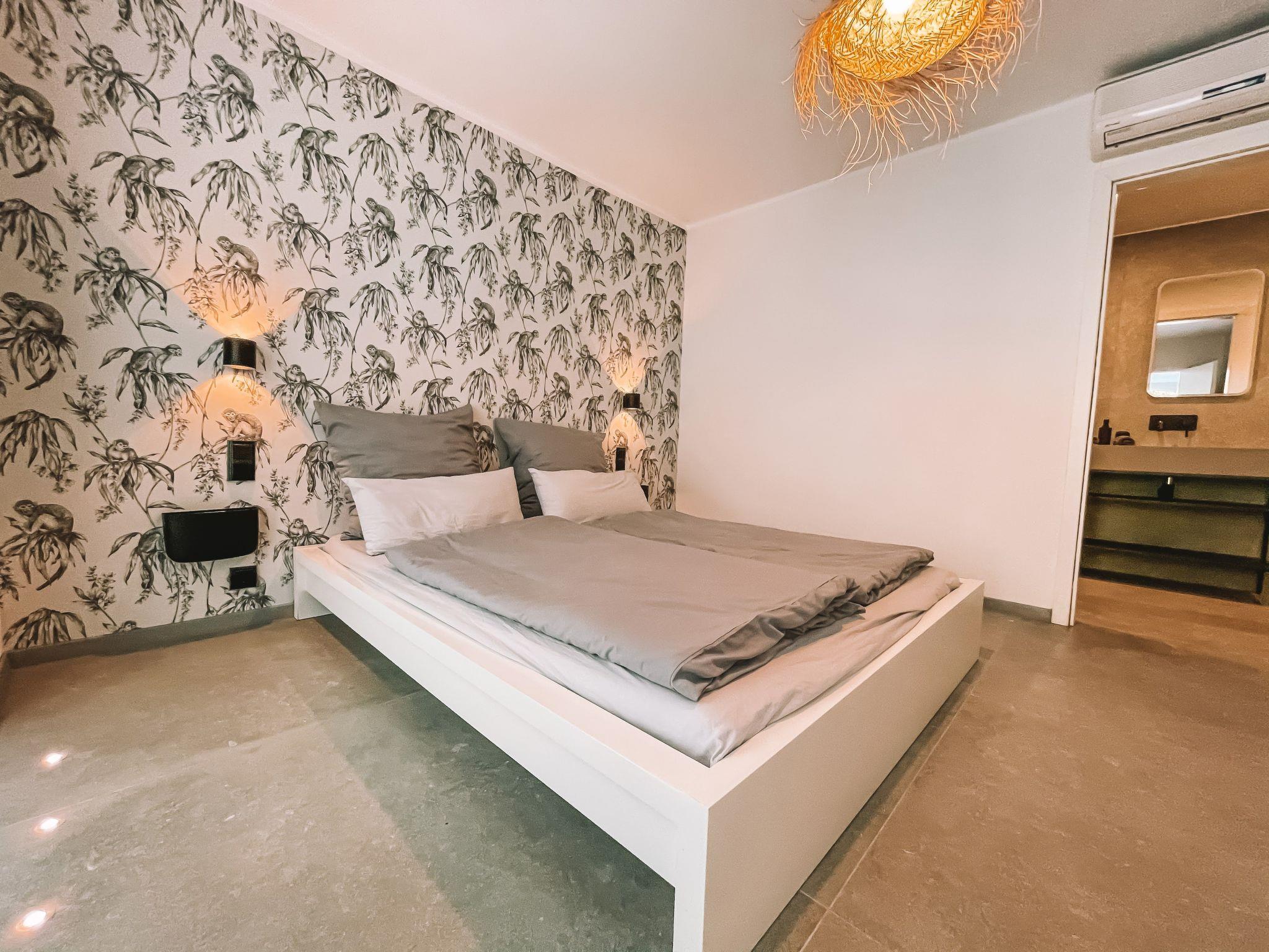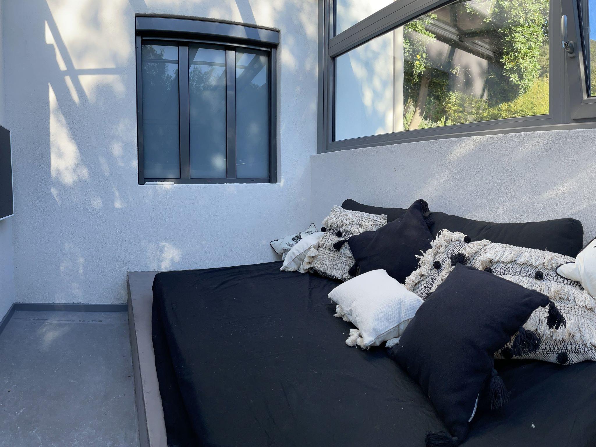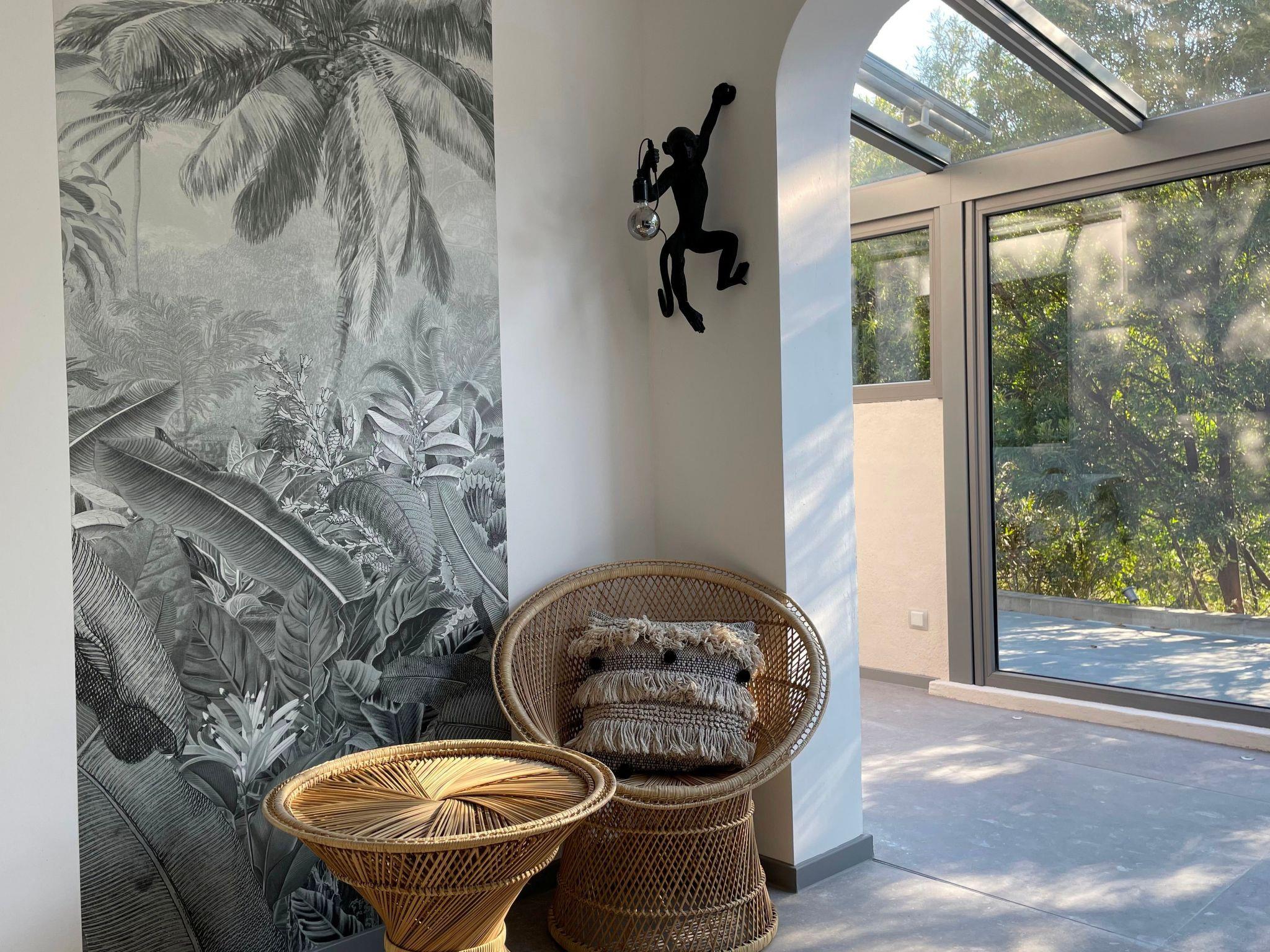 Im Inneren sorgt eine effektive Klimaanlage in allen Zimmern dafür, dass Sie sich auch an den heißesten Tagen der Region wohl und erfrischt fühlen. Für kühlere Tage gibt es eine integrierte Fußbodenheizung, die eine angenehme Wärme verbreitet. Zur hochwertigen Ausstattung gehören unter anderem eine Waschmaschine, ein Wäschetrockner, eine Induktionskochplatte und ein Kamin im Wintergarten, die gemeinsam mit der Kapsel-Kaffeemaschine und einer Geschirrspülmaschine Ihren Aufenthalt so angenehm wie möglich machen.