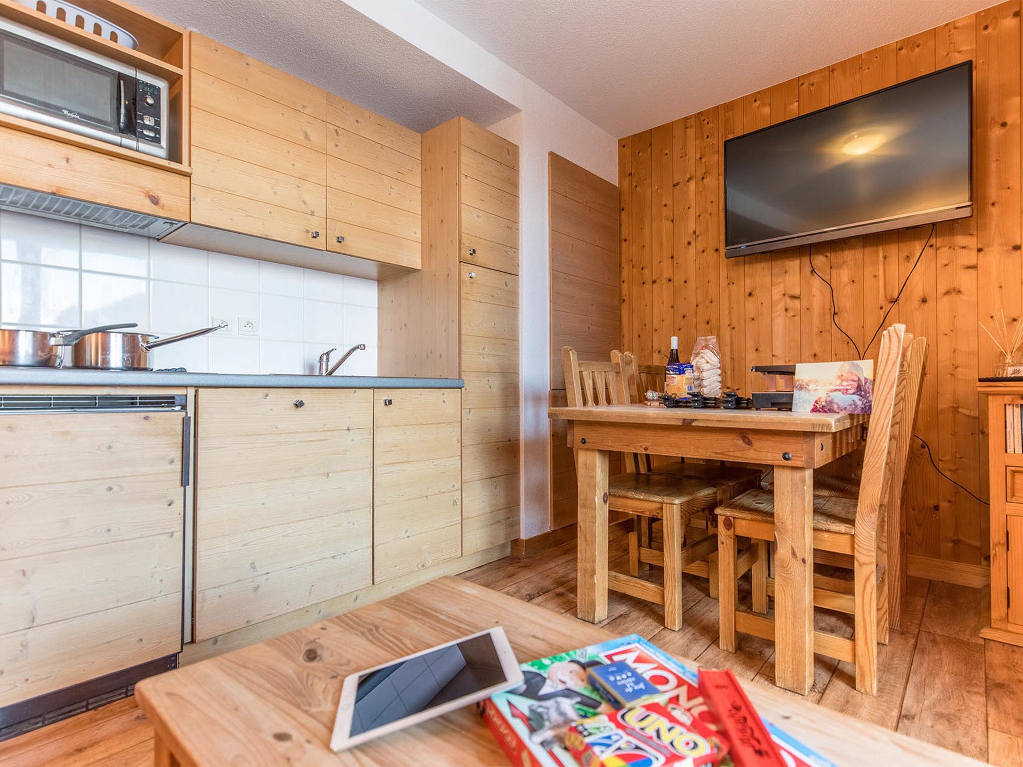 "Les Chalets du Berger", 3-room apartment 47 m2. Beautiful and cosy furnishings: living/sleeping room with 1 pull-out bed (2 pers.), dining table and TV. 1 room with 1 french bed. 1 room with 3 beds. Open kitchen (2 hot plates, dishwasher, toaster, kettle, microwave, electric coffee machine). Bath/WC or shower/WC. Balcony or terrace. Facilities: hair dryer. Internet (WiFi, free). Please note: non-smokers only. Maximum 2 pets/ dogs allowed.