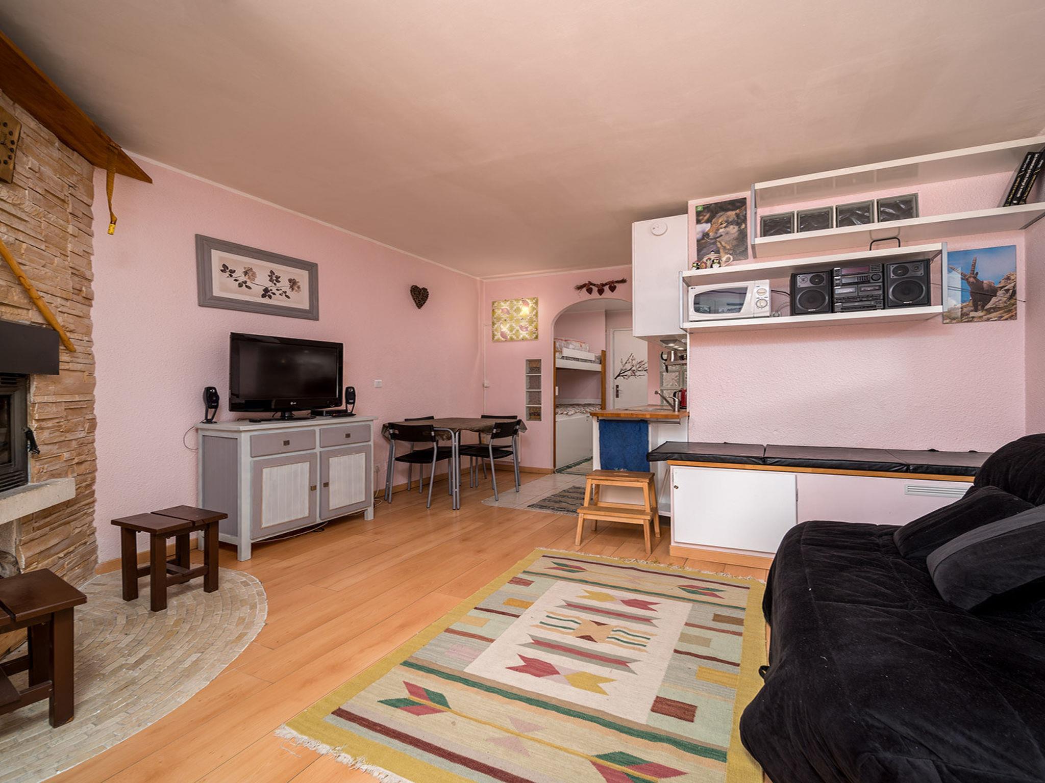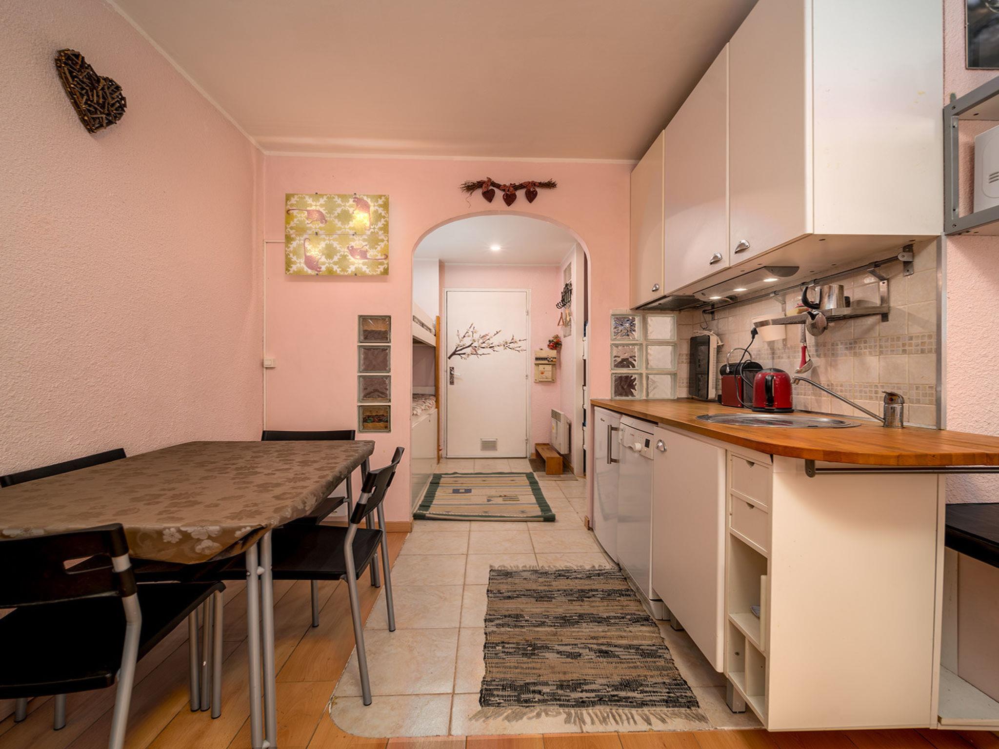 "Auriac A", 1-room studio 30 m2 on 1st floor. Object suitable for 4 adults. Living room with 1 sofabed and 2 x 2 bunk beds, 1 pull-out bed and TV. Open kitchen (dishwasher, 2 induction hot plates, toaster, kettle, microwave, freezer, electric coffee machine). Shower/WC. Balcony. View of the mountains and the garden. Please note: non-smokers only. Offer by a commercial proprietor according to Art. 155, IV, CGI 040060003346R