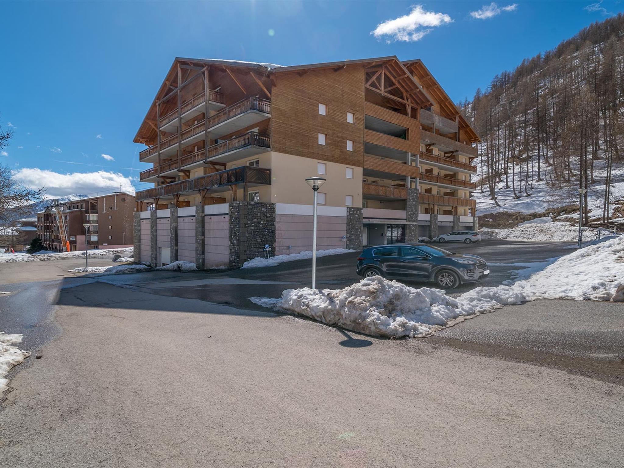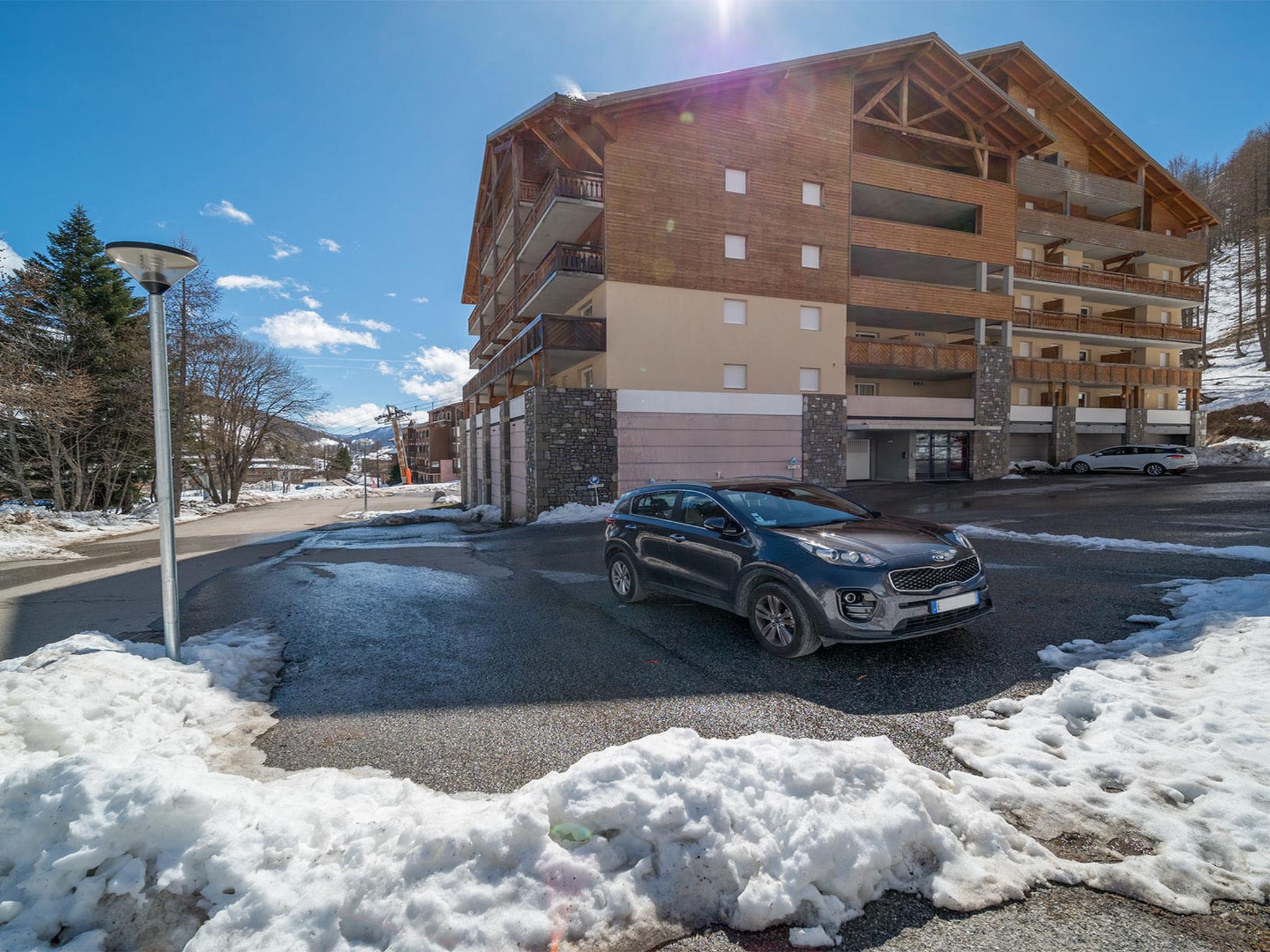 Allos: Apartment block. 50 m from the skiing area. For shared use: swimming pool heated. In the house: lift. Parking (for 1 cars). Supermarket 100 m.