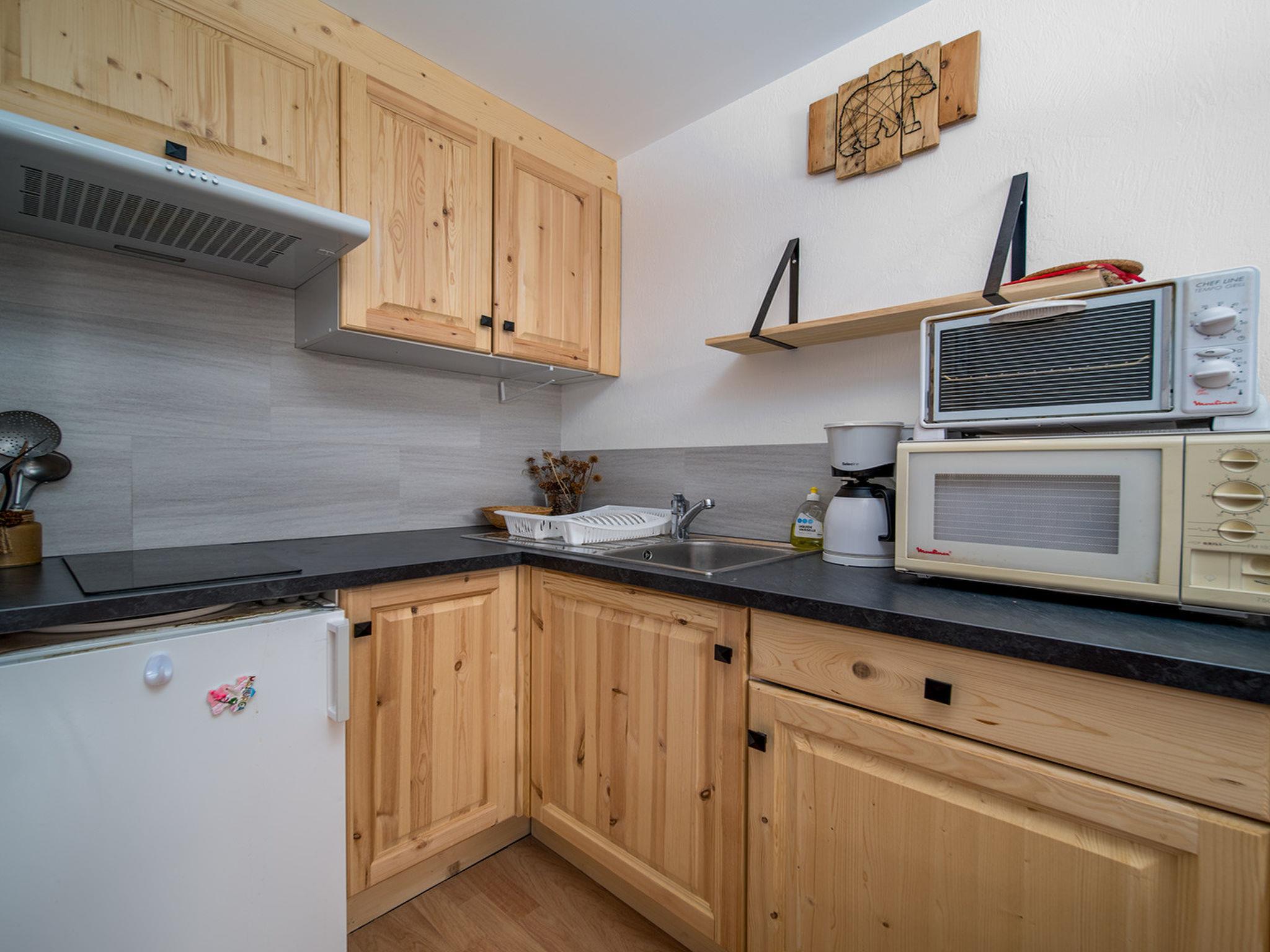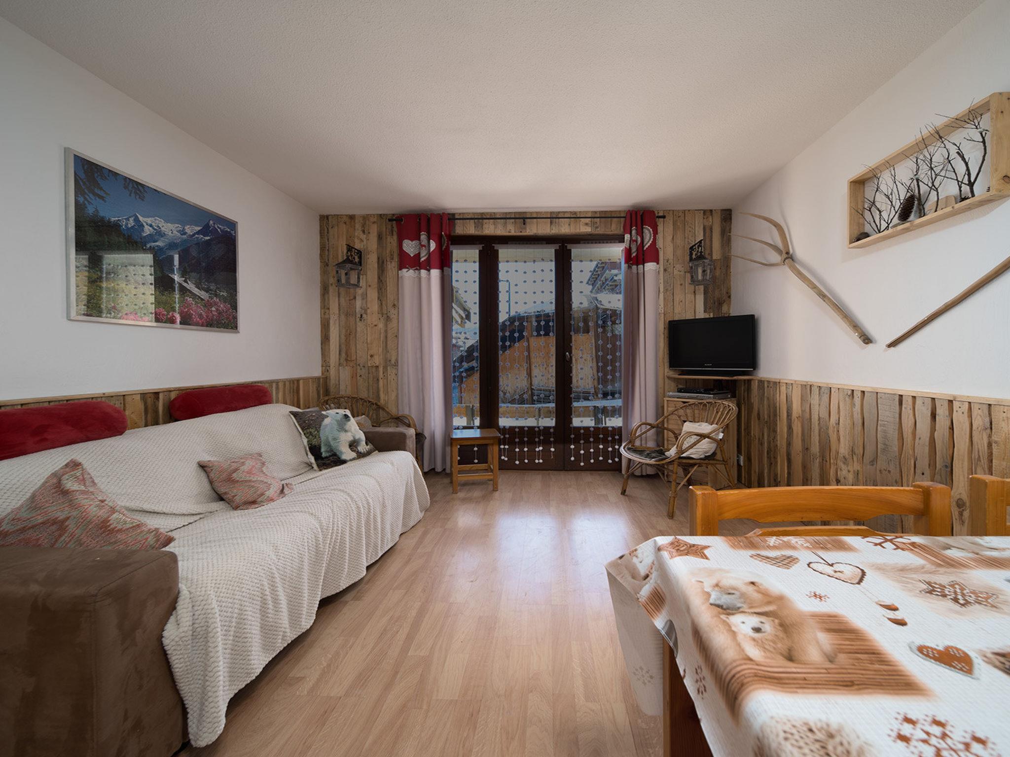 "Les Marmottes", 1-room studio 27 m2, on the ground floor. Object suitable for 4 adults. Living room with 1 sofabed and 1 x 2 bunk beds, 1 pull-out bed, TV and DVD. Open kitchen (2 hot plates, microwave, electric coffee machine). Bath/WC. Balcony. View of the mountains. Please note: 1 pet/ dog allowed. Smoke alarm. Offer by a commercial proprietor according to Art. 155, IV, CGI 04006000395HR