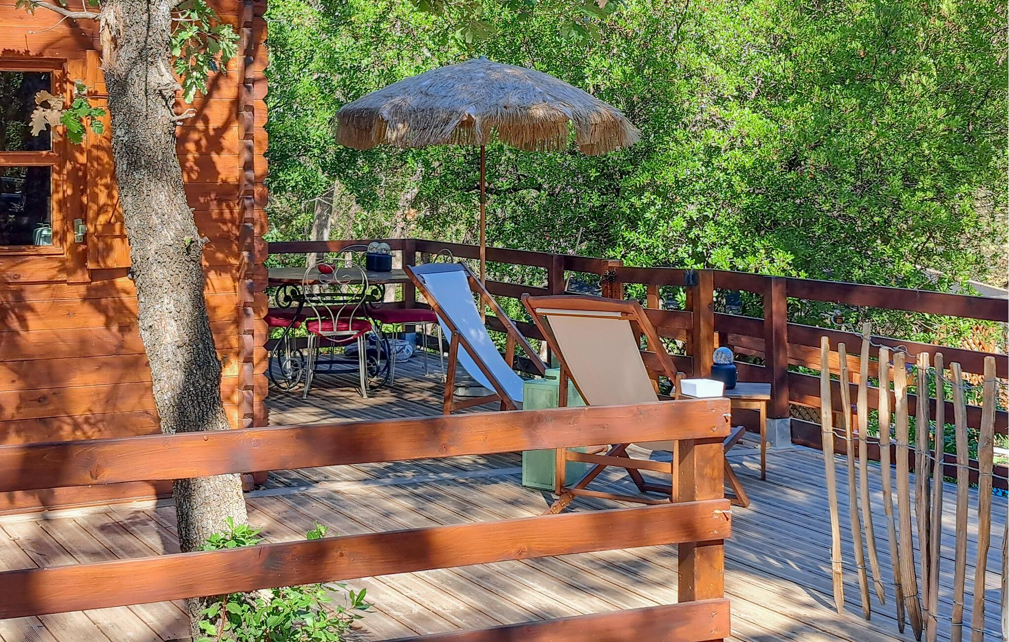 Dette hyggelige træhus udstråler varme og charme - så her får I det ideelle rammer til en afslappende ferie i naturskønne omgivelser. Det stilfulde interiør giver jer en harmonisk blanding af rustik stemning og moderne komfort. I kan tilbringe afslappende timer på den indbydende terrasse, mens den lille pool og det overdækkede spabad lægger op til afslappende stunder og behagelig nedkøling på de varme dage. På grunden står der et andet træhus, som I også kan booke alt efter tilgængelighed, så stedet her er perfekt til større grupper eller familier. Ejeren bor også på grunden og har en hund.