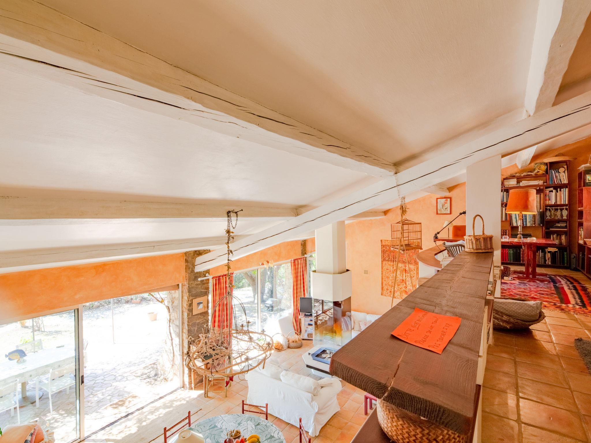 House "La Sacherie de l'Autourière". 6 km from the centre of La Garde-Freinet, 7.5 km from the centre of Grimaud, 10 km from the centre of Cogolin, in a secluded position on a slope, 13 km from the sea. Private: natural state property 30'000 m2, terraced garden with wildlife garden and trees, swimming pool kidney shaped (10 x 6 m, seasonal availability: 15.Mar. - 15.Nov.) with alarm system. Bumpy motor access (2.2 km via unmade road). Parking on the premises. Shop 4.5 km, supermarket 10 km, bus stop 4 km, sandy beach 13 km.
