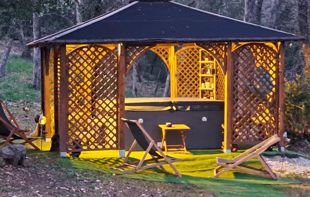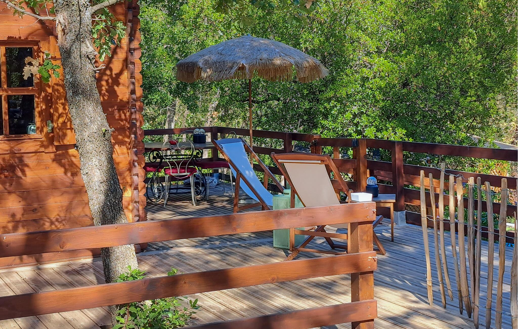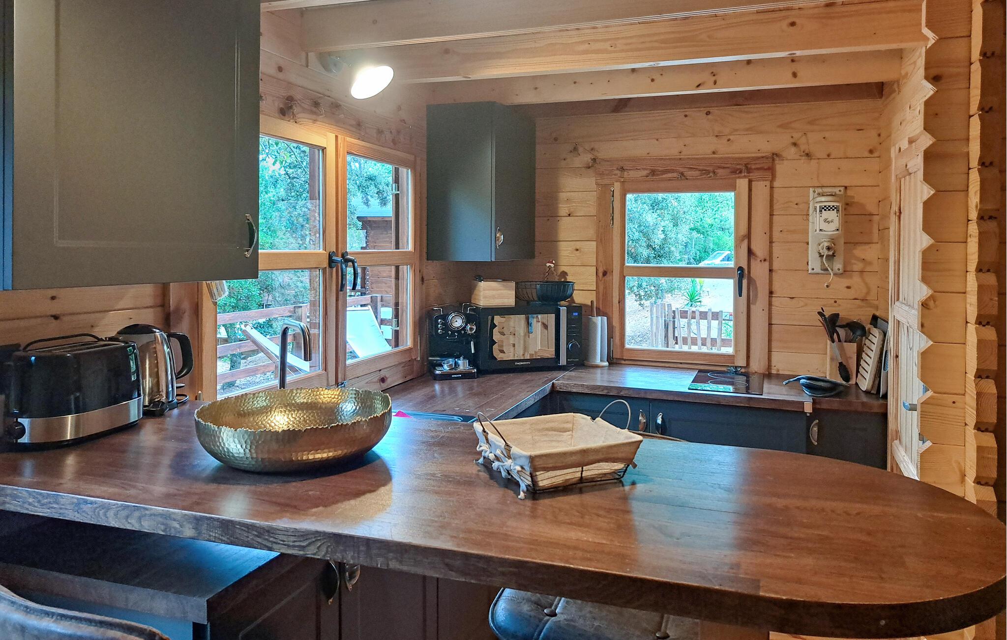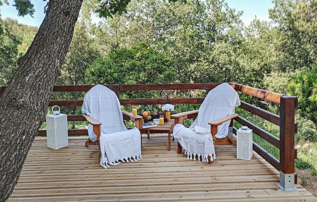 Dette hyggelige træhus udstråler varme og charme - så her får I det ideelle rammer til en afslappende ferie i naturskønne omgivelser. Det stilfulde interiør giver jer en harmonisk blanding af rustik stemning og moderne komfort. I kan tilbringe afslappende timer på den indbydende terrasse, mens den lille pool og det overdækkede spabad lægger op til afslappende stunder og behagelig nedkøling på de varme dage. På grunden står der et andet træhus, som I også kan booke alt efter tilgængelighed, så stedet her er perfekt til større grupper eller familier. Ejeren bor også på grunden og har en hund.