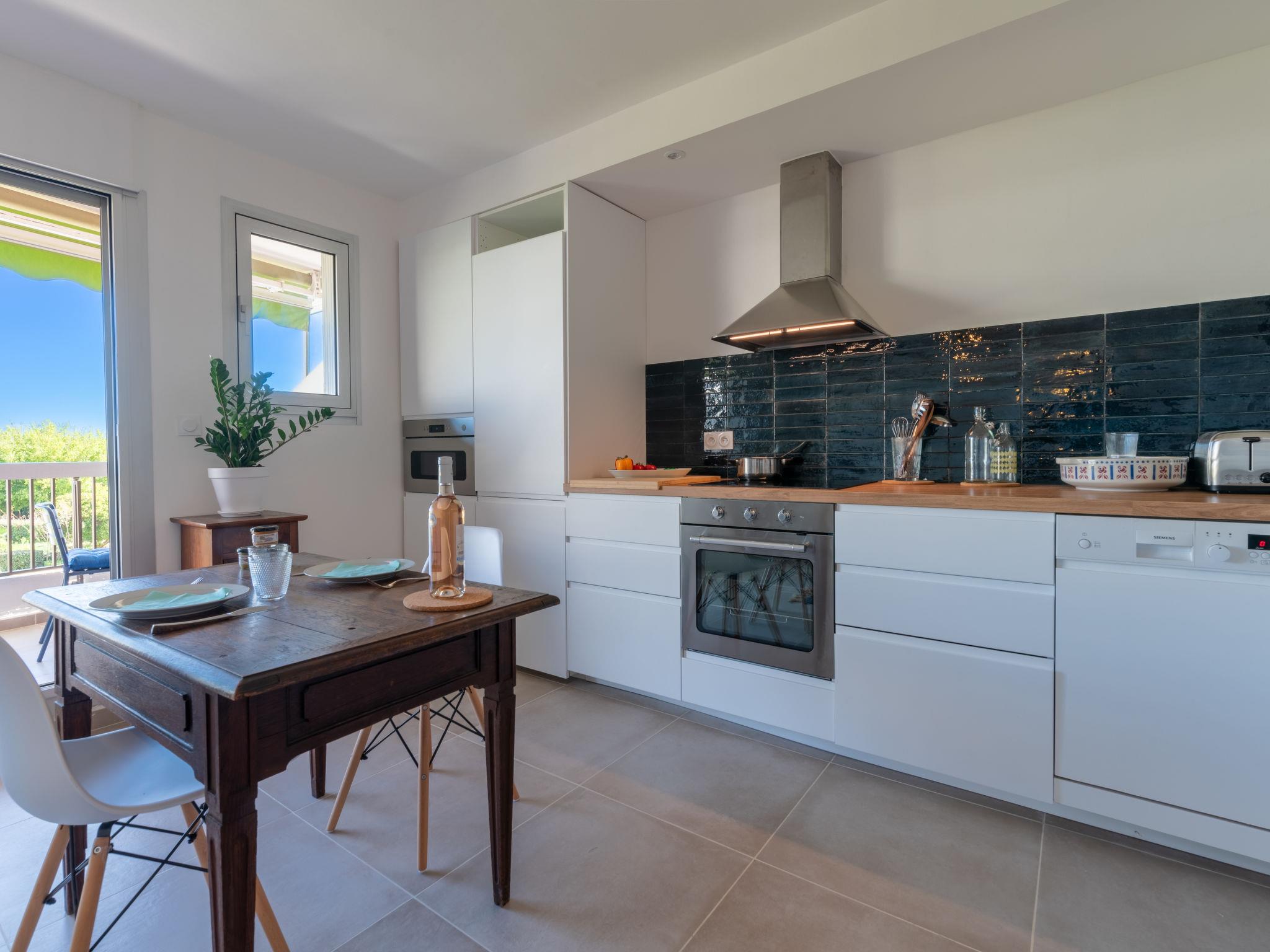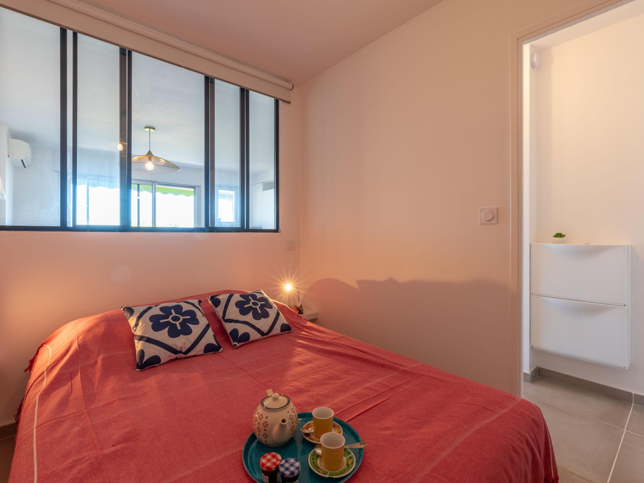 2-room apartment 34 m2 on 1st floor. Living/dining room. Exit to the terrace. 1 room, without window with 1 french bed (1 x 140 cm, length 190 cm). Kitchenette (oven, 4 induction hot plates, toaster, kettle, microwave, electric coffee machine, Capsules for coffee machine (Nespresso) extra). Shower, sep. WC. Air-conditioning. Terrace 10 m2, south facing position. Terrace furniture. View of the sea and the garden. Facilities: Internet (WiFi, extra). Please note: no parking. Smoke alarm. Offer by a private individual according to Art. 155, IV of CGI. 34 3440387695
