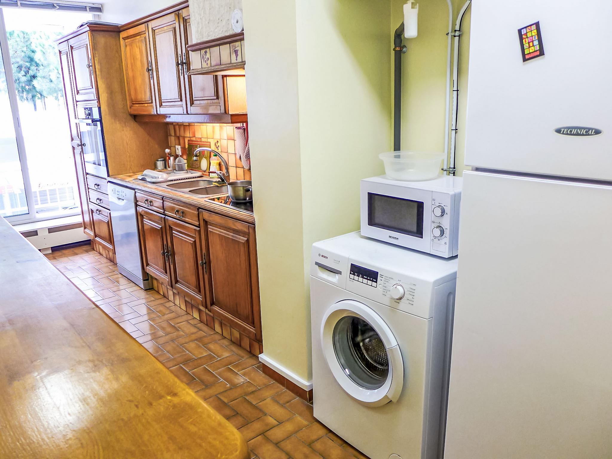 3-room apartment 76 m2 on 2nd floor. Comfortable furnishings: living/dining room with 1 double sofabed (140 cm, length 190 cm), TV (flat screen). Exit to the terrace. 1 room with 1 french bed (160 cm, length 190 cm). 1 room with 2 beds (90 cm, length 190 cm). Kitchen (oven, dishwasher, 4 induction hot plates, microwave, freezer). Shower, sep. WC. Heating. 2 balconies, north-west facing position, 2 terraces 6 m2, south-east facing position. Terrace furniture. Facilities: washing machine. Internet (WiFi, free). Please note: apartment street side. No parking. Maximum 1 pet/ dog allowed. Smoke alarm.