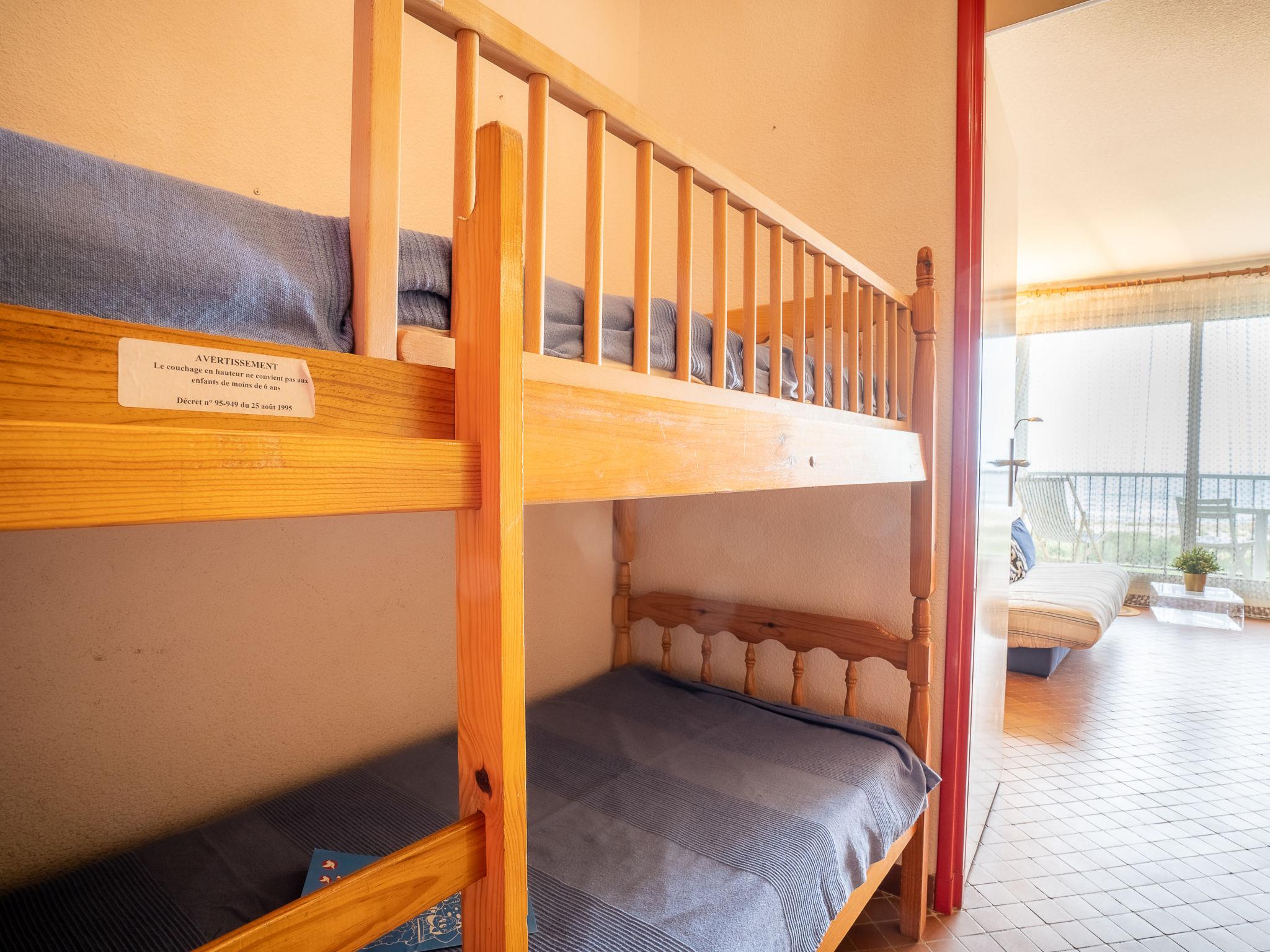 1-room studio 23 m2 on 3rd floor. Object suitable for 2 adults + 2 children. Living/dining room with 1 double sofabed (140 cm, length 190 cm), TV (flat screen). Entrance hall with 1 x 2 bunk beds (80 cm, length 190 cm). Kitchenette (2 hot plates, toaster, kettle, microwave, electric coffee machine). Bath/WC. Terrace 6 m2, south facing position. Terrace furniture. Very beautiful view of the sea, the swimming pool and the garden. Facilities: Internet (WiFi, extra). Parking. Please note: maximum 1 pet/ dog allowed. Smoke alarm.