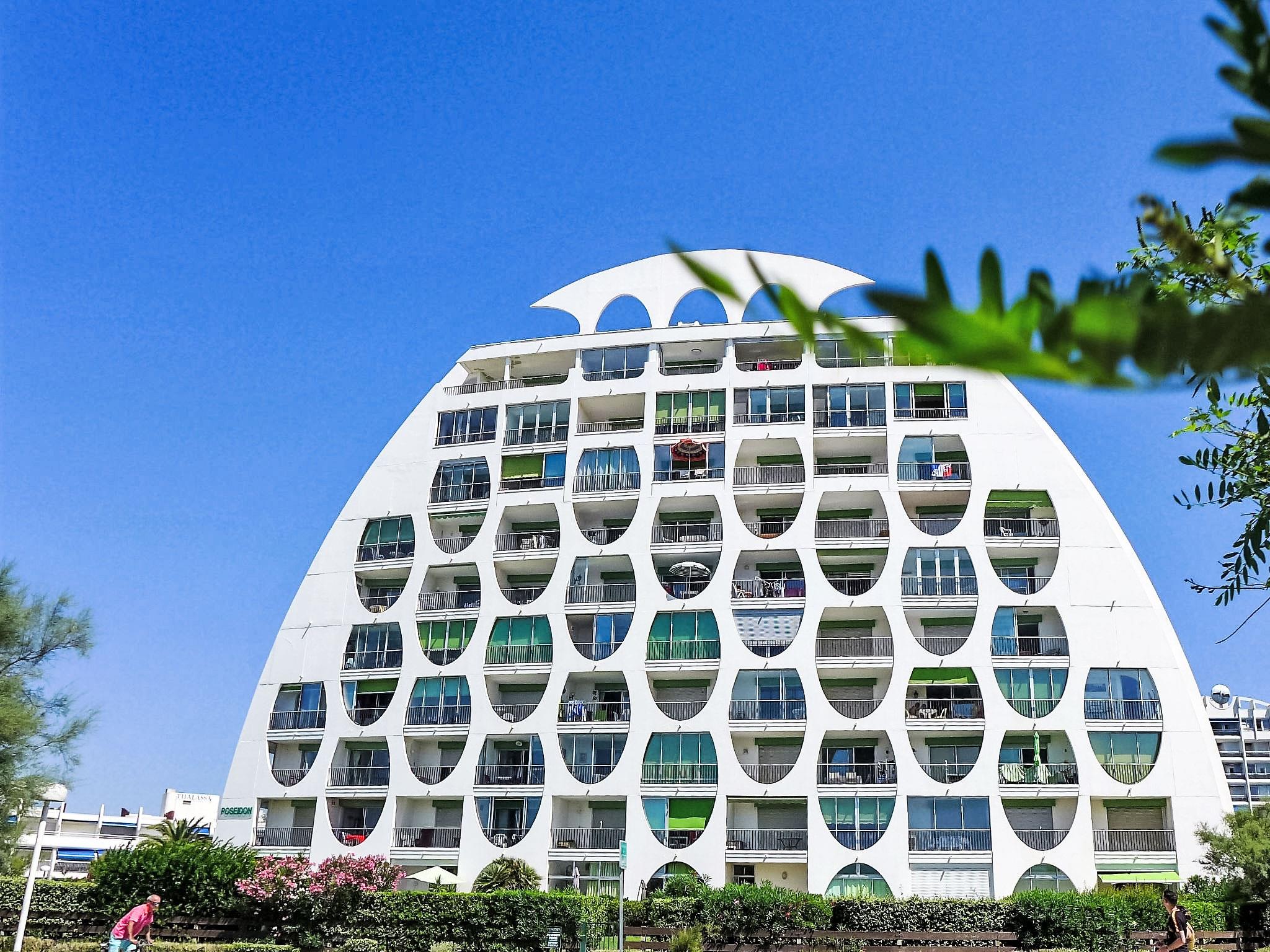 Residence "Poséidon", 8 storeys. In the district of La Motte du Couchant, 2 km from the centre, 100 m from the sea, 180 m from the beach, direct access to the beach. In the complex: lift. Shopping centre 200 m, restaurant, bus stop 450 m, railway station "Montpellier" 25 km, sandy beach 50 m, indoor swimming pool 3.3 km, thermal baths "Thalasso Spa" 2.5 km. Sports harbour 1.3 km, golf course (18 hole) 3.6 km, sailing school 1.3 km, tennis 3.3 km, riding stable 1.4 km. Nearby attractions: Le Seaquarium du Grau Du Roi 10 km, Les Remparts d'Aigues Mortes 12 km, Les saintes Maries de la Mer 40 km. Please note: airfield close by 20 km from the property.