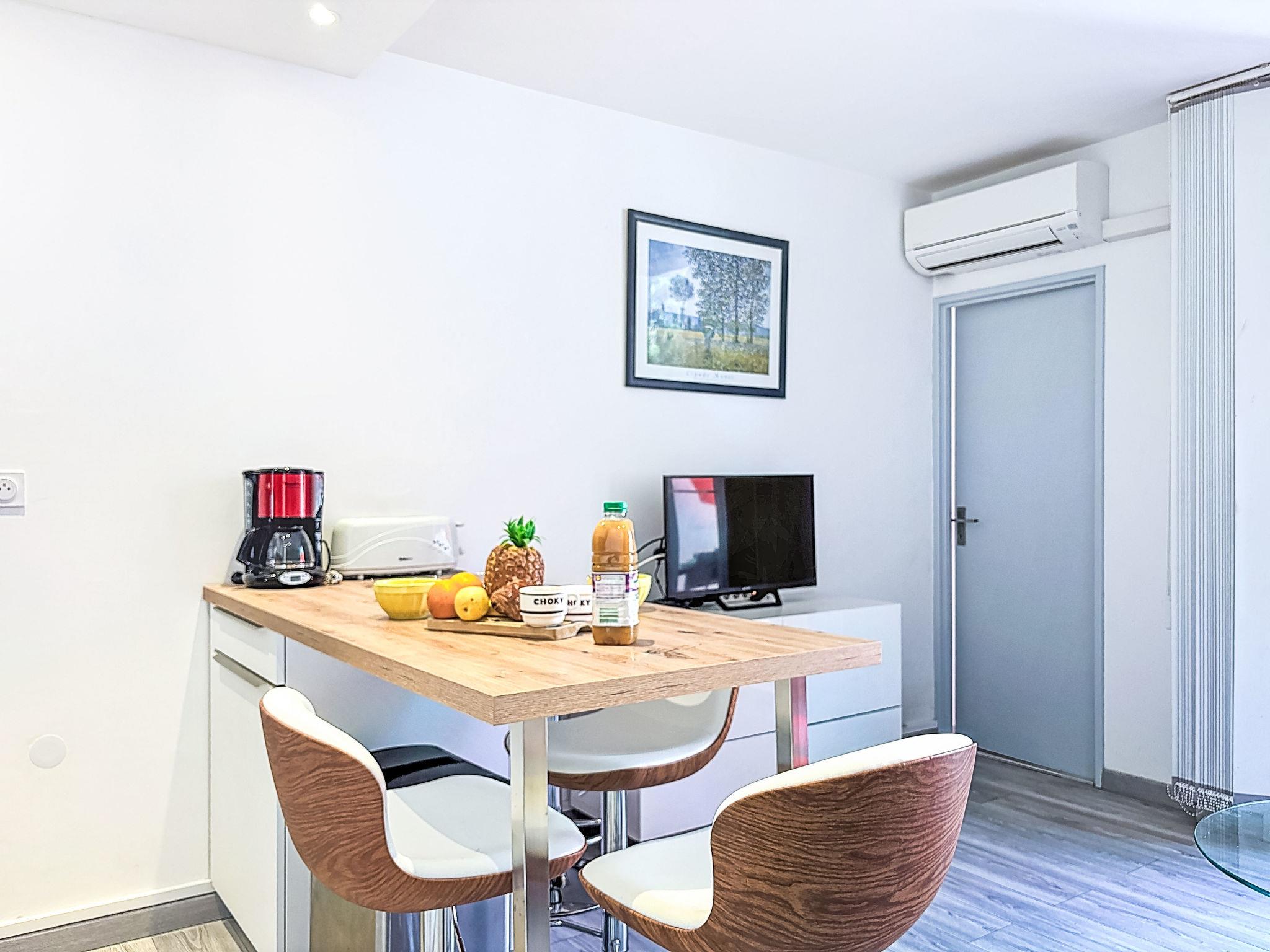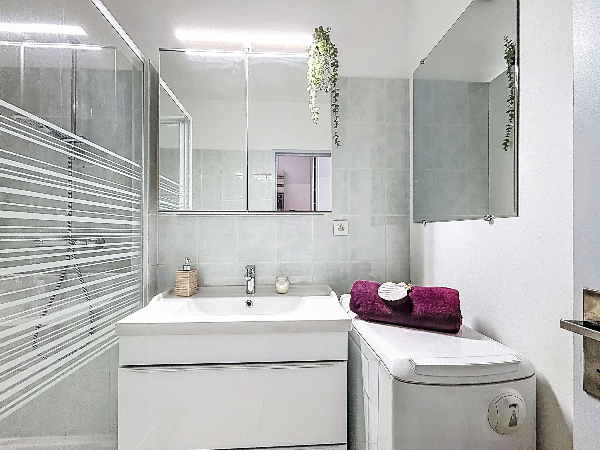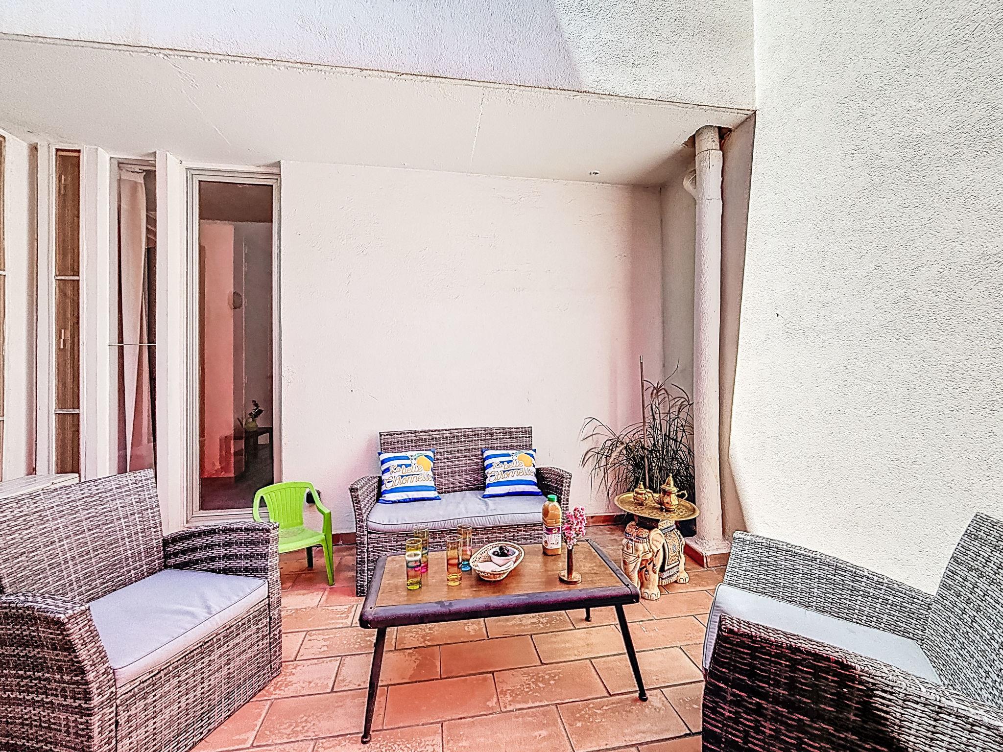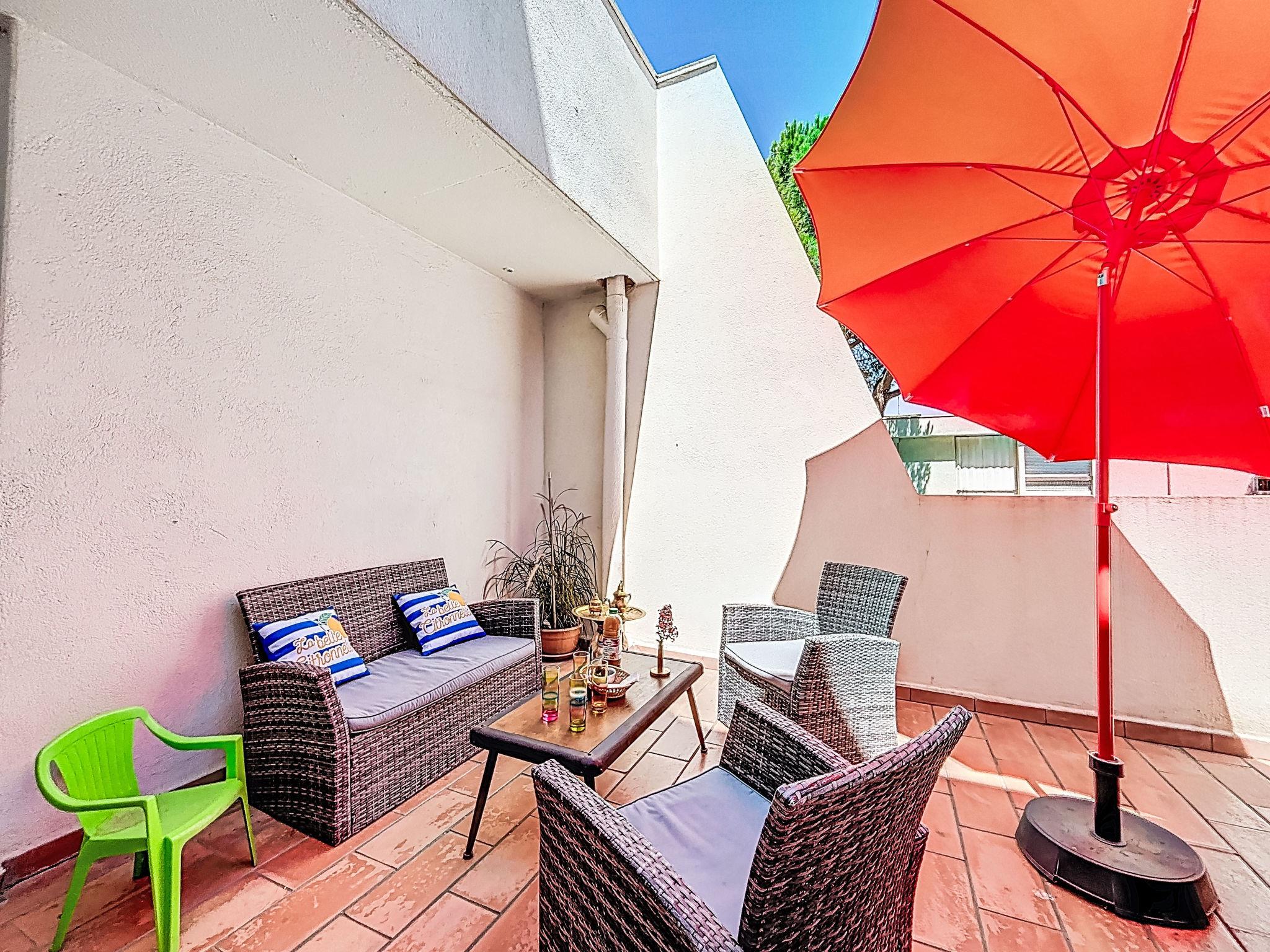 "L'Eden Babylone", 2-room apartment 36 m2 on 1st floor. Living/dining room with 1 double sofabed (140 cm, length 190 cm), TV (flat screen), air conditioning, forced-air heating and electric shutters. 1 room, south facing position and west facing position with 1 french bed (140 cm, length 200 cm). Exit to the terrace. Kitchenette (oven, dishwasher, 2 induction hot plates, toaster, kettle, microwave, freezer, electric coffee machine, Capsules for coffee machine (SENSEO) extra). Shower, sep. WC. Electric heating. Large terrace 25 m2, south facing position and west facing position. Terrace furniture. Facilities: washing machine, iron. Internet (WiFi, free). Please note: non-smokers only, no parking. Smoke alarm. Offer by a private individual according to Art. 155, IV of CGI. 343440398211