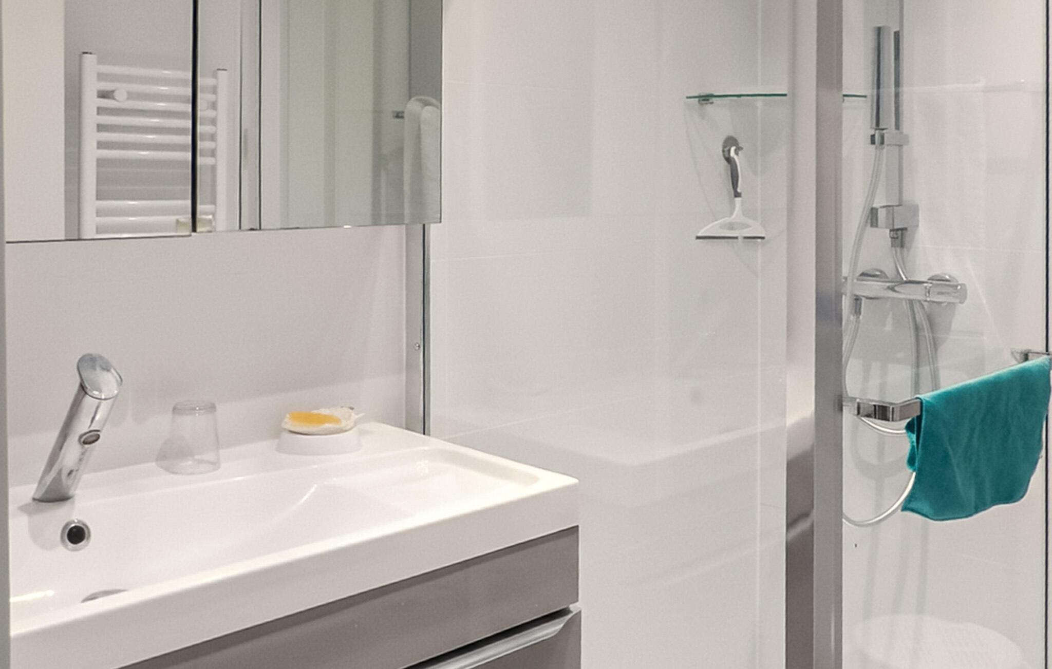 Denne lejlighed imponerer ikke kun med sin beliggenhed ved stranden, men også med sine moderne bekvemmeligheder. Slap af med en kop kaffe, tilbring en hyggelig aften foran fjernsynet eller tilbered friske måltider i køkkenet og nyd dem med et glas vin.