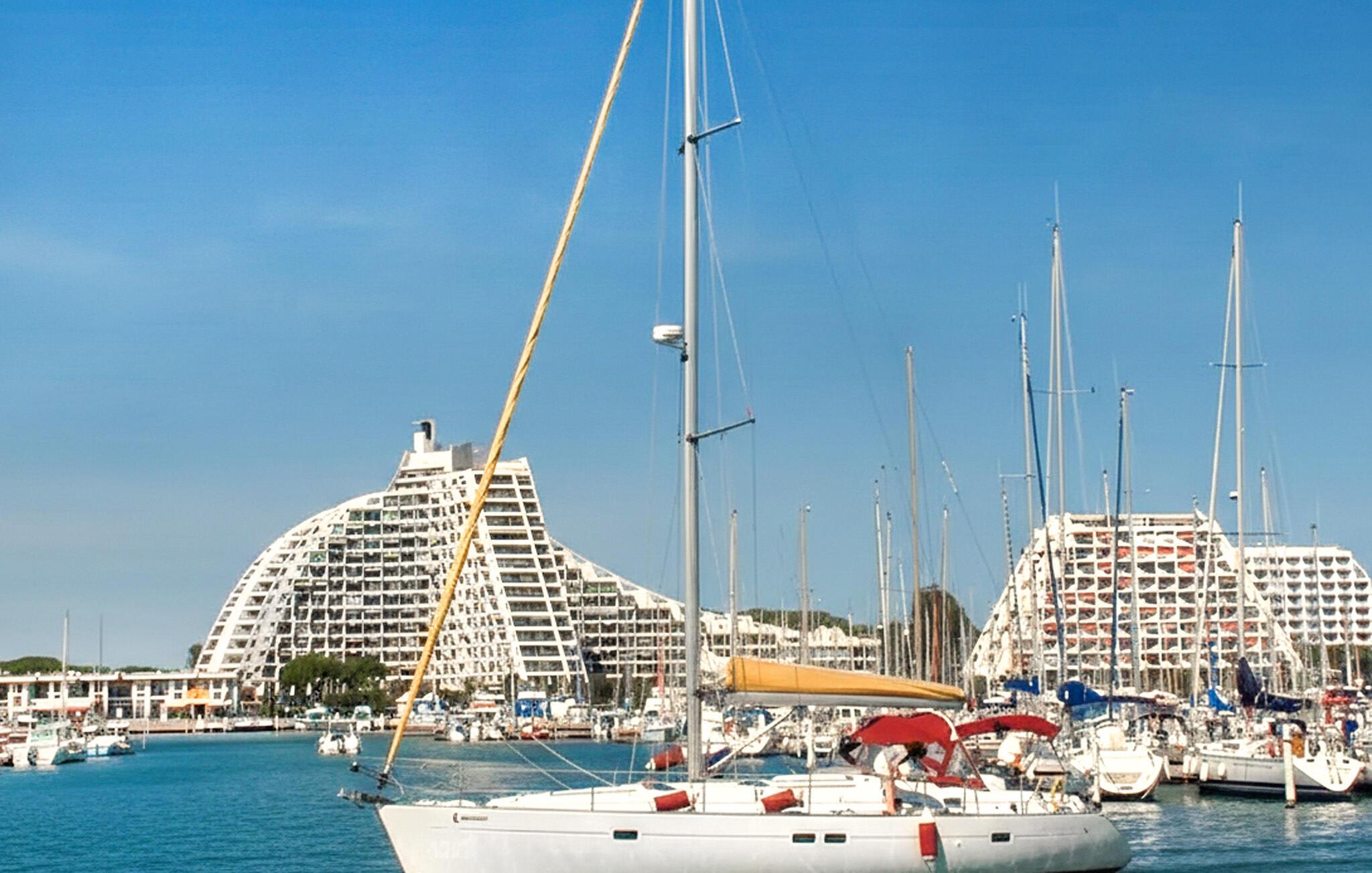 Tilbring dejlige timer i La Grande-Motte på Middelhavets vidtstrakte sandstrande og slentre langs de moderne promenader med deres slående pyramideformede bygninger. Tag på sejlads- eller bådture fra den livlige marina, spil en runde golf eller udforsk kystlandskabet i Camargue på cykel. Besøg desuden den historiske by Montpellier eller observer flamingoer og vilde heste i naturreservaterne omkring Étangs, som er regionens særlige højdepunkter.