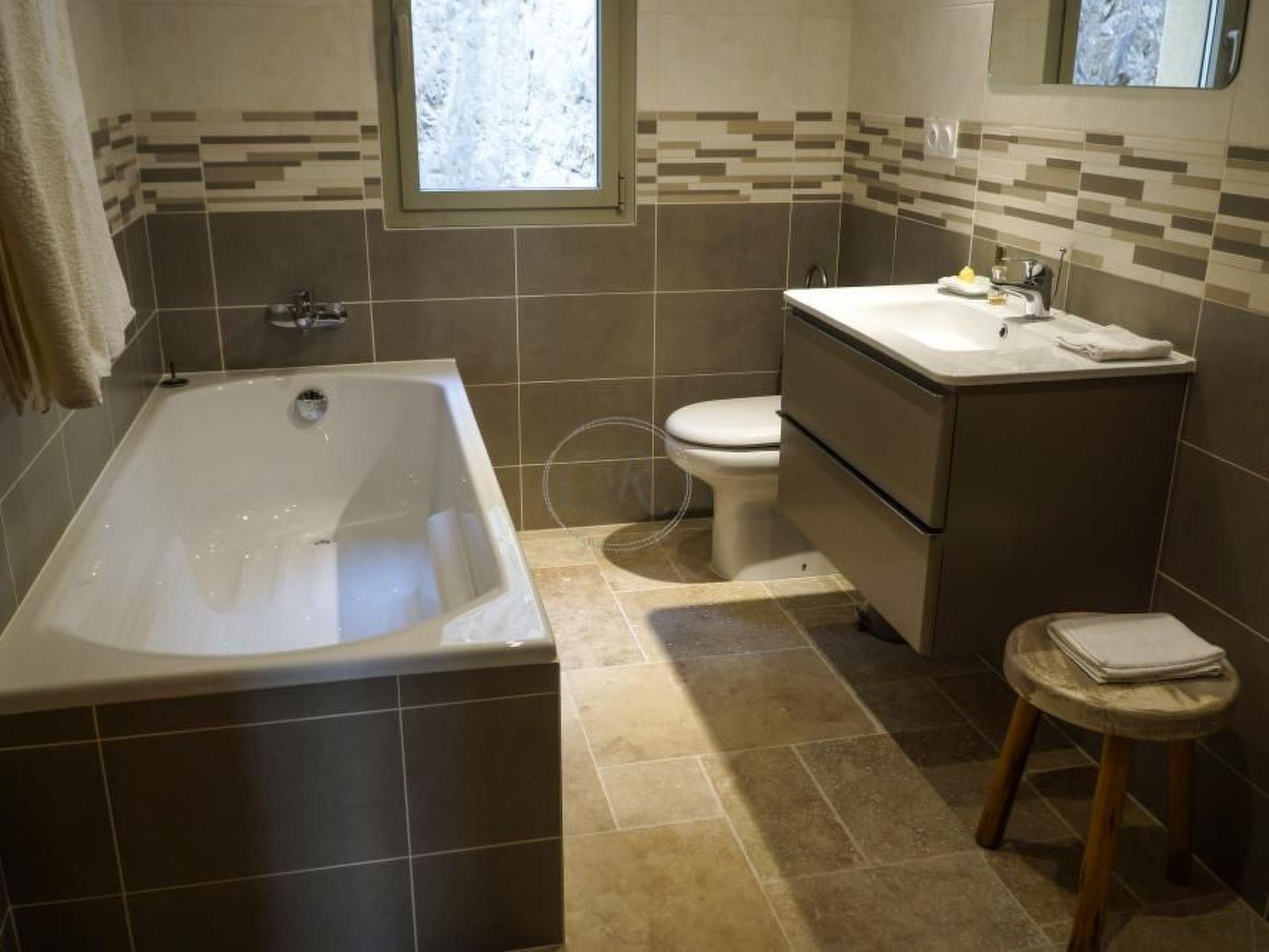 Outside, you can take full advantage of the 2 sea-facing terraces and an infinity pool, as well as a new bowling green just off the terrace. On the first level, the living room, kitchen and spacious bedroom open onto the terrace. At mealtimes, you can choose to eat inside or in the shaded area of the outside terrace. A second bedroom on the same level overlooks a fruit garden. All bedrooms have en-suite bathrooms. On the second level is a 3-person suite with en-suite shower room and wc. On the third level is the master bedroom, with its large terrace between land and sky, panoramic sea views, dressing room and bathroom with spa bath.