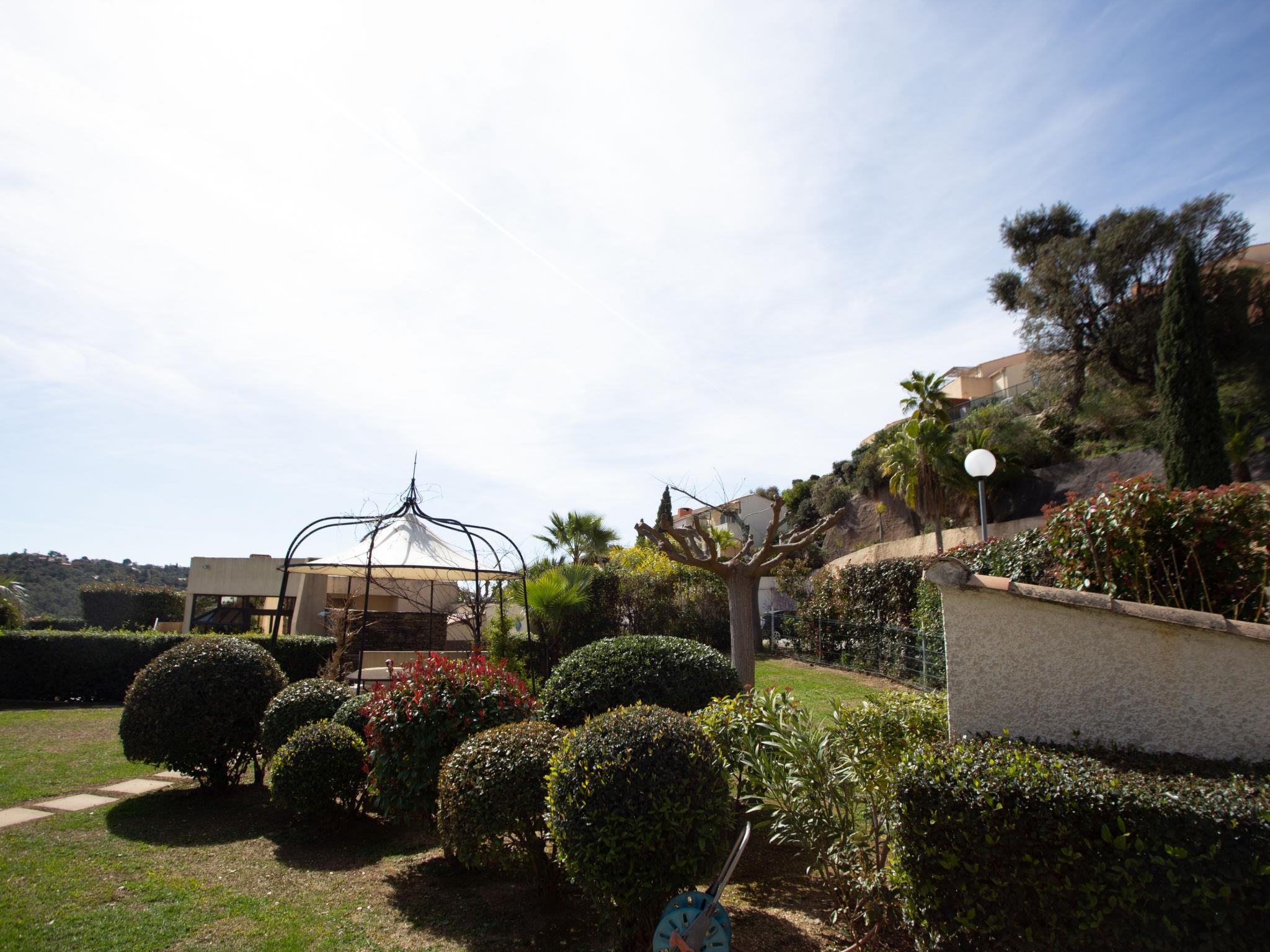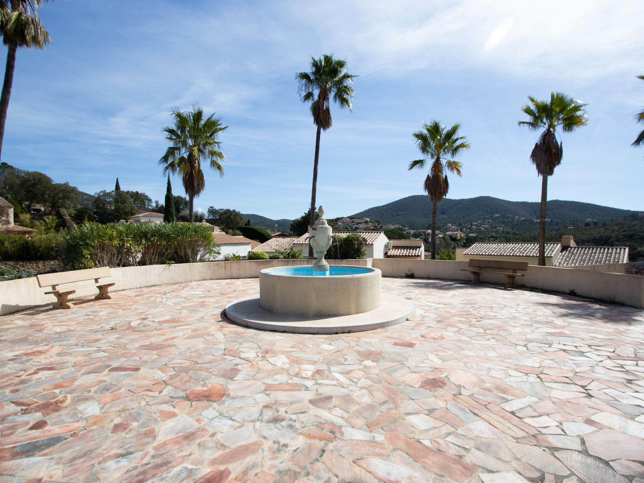 La Londe Les Maures: Residence "Le Belvédère". In the district of Valcros, outside the resort, 6 km from the centre of La Londe, in a quiet position on top of a hill, in the residential district, 9.8 km from the sea, 9.8 km from the beach. For shared use: well-kept garden 100 m2, swimming pool fenced (250 m2, seasonal availability: 18.Apr. - 01.Oct.). Children's pool, outdoor shower. Shop 6 km, supermarket 6 km, shopping centre 18 km, restaurant 6 km, bar 6 km, café 6 km, bus stop "La Cheylanne" 5.4 km, sandy beach "L'Argentière" 9.8 km. Golf course (18 hole) 3 km, tennis 3 km. Nearby attractions: Jardin Zoologique Tropical 4.8 km, Dolmen de Gaoutabry 6 km. Please note: car recommended. Residence with electric gates. The keys‘ handover takes place by the agency INTERHOME in Hyères sur le Port.