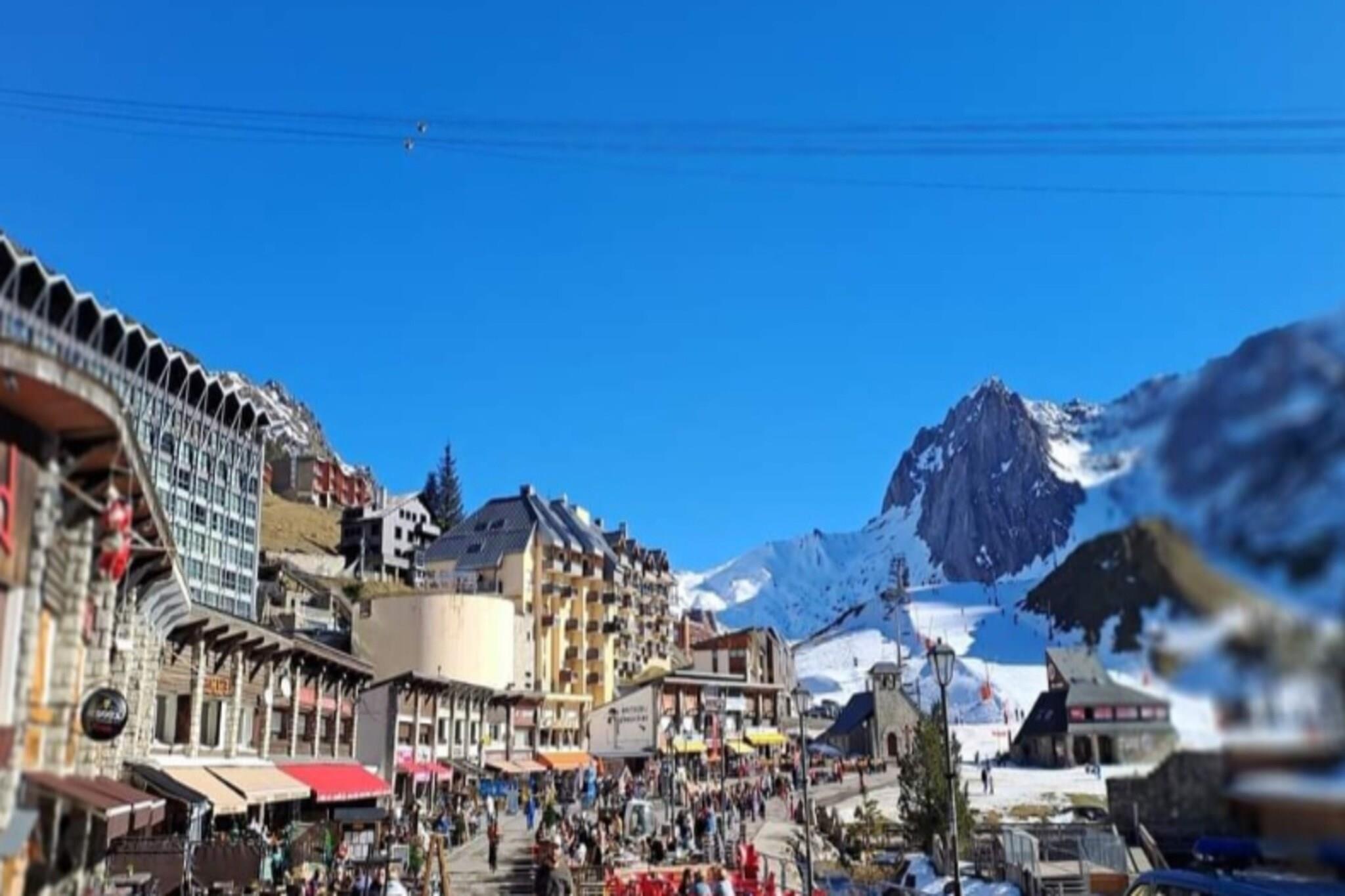 Denne charmerende ferielejlighed tilbyder et komfortabelt tilflugtssted med direkte adgang til pisterne. Ejendommen ligger på fjerde sal og indeholder en hyggelig stue med sovesofa og to dobbeltsenge med plads til op til fire gæster. Nyd den betagende udsigt over bjergene fra den sydvendte terrasse, perfekt til at slappe af efter en dag med eventyr. Kæledyr er velkomne mod et ekstra gebyr, hvilket gør dette til en fantastisk mulighed for familier, der rejser med deres lodne venner. Valgfri Wi-Fi, sengetøj og håndklæder er tilgængelige for ekstra bekvemmelighed. Beliggende på Route du Tourmalet, er lejligheden ideelt beliggende tæt på butikkerne og skilifterne i skisportsstedet Grand Tourmalet - Pic du Midi, som byder på over 100 km pister. Inden for gåafstand finder du et udvalg af caféer og markeder, der er ideelle til at prøve lokale delikatesser og hente væsentlige ting. Vandreentusiaster kan udforske nærliggende stier, herunder den ikoniske Pic du Midi de Bigorre og naturskønne ruter rundt om Col du Tourmalet, der passer til alle færdighedsniveauer. Lejligheden har et fuldt udstyret køkken i amerikansk stil, perfekt til at tilberede måltider derhjemme. Badeværelset har et badekar med en brusesøjle, rigelig opbevaring og en hårtørrer for ekstra komfort. Den overdækkede terrasse giver et afslappende udendørsområde med panoramaudsigt over bjergene. Yderligere faciliteter såsom daglig rengøring og slutrengøring sikrer en problemfri oplevelse, så du fuldt ud kan nyde din ferie.
