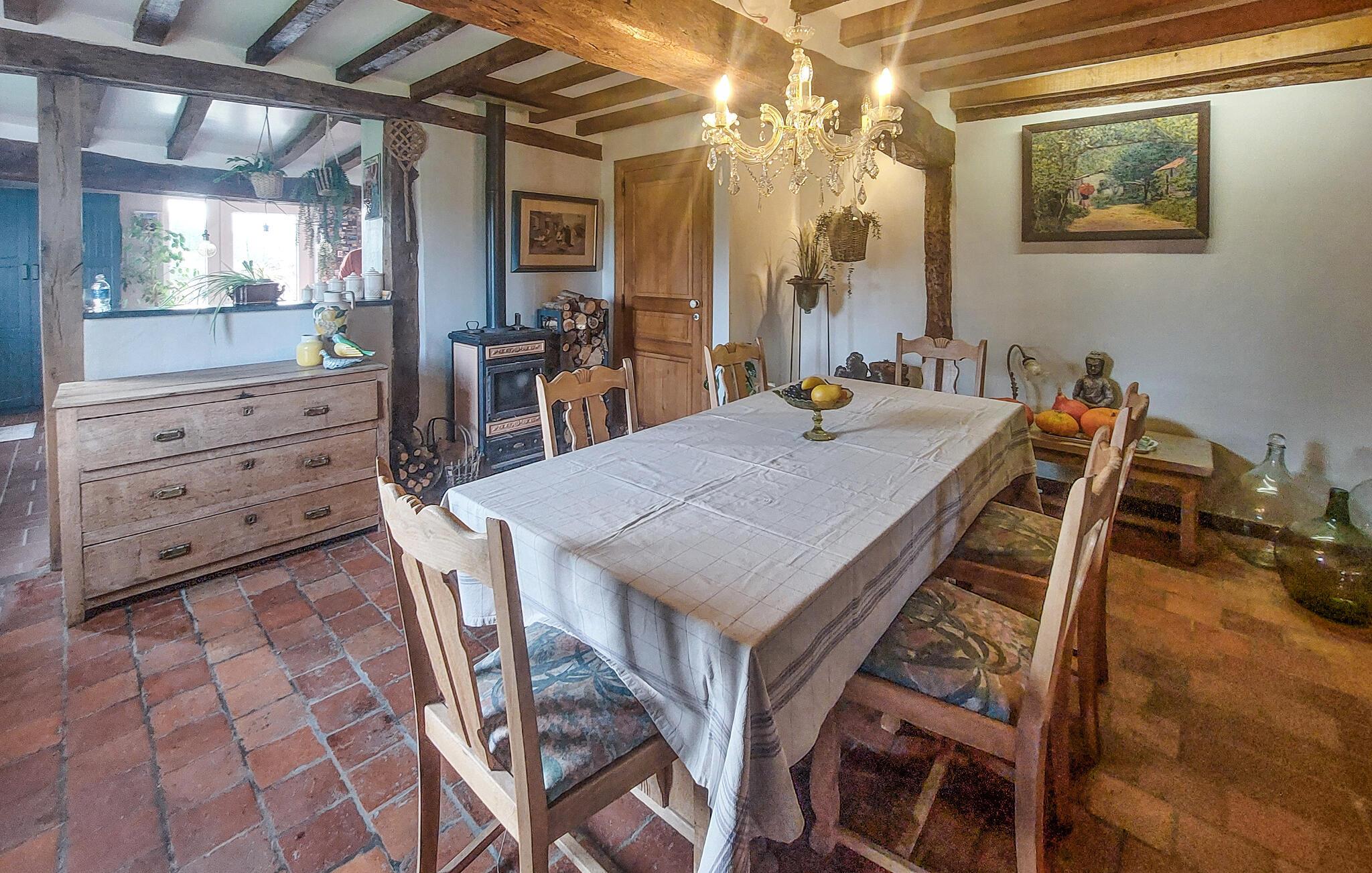Dette hus byder jer velkommen med historisk stil og rustik charme. Stenfliser, træbjælker og en imponerende brændeovn skaber en charmerende atmosfære, der minder om svundne tider. Læn jer tilbage i den komfortable sofa med en kop kaffe, læs en god bog eller prøv nye opskrifter i det veludstyrede køkken.