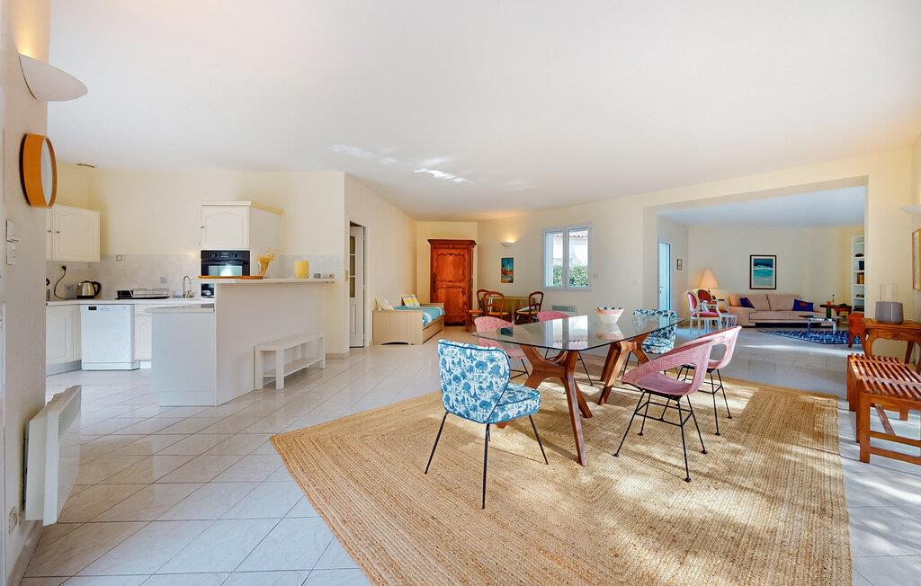 En autentisk bolig med god komfort og masser af plads til en ferie med den større familie. Det er, hvad der venter jer i dette charmerende hus. Interiøret fremtræder både lyst og flot med et lækkert lysindfald og gode møbler, der gør det nemt at slappe af her efter dagens udflugter. Huset er indrettet med et åbent boligkoncept, så kokkene kan kræse om madlavningen i køkkenet og samtidig følge med i samtalerne eller brætspillene ved spisebordet. Lad aftenerne gå på hæld med et slag kort eller måske i sofaerne med indkøbte snacks og en god film på tv'et, mens I lægger planer for de kommende dage.