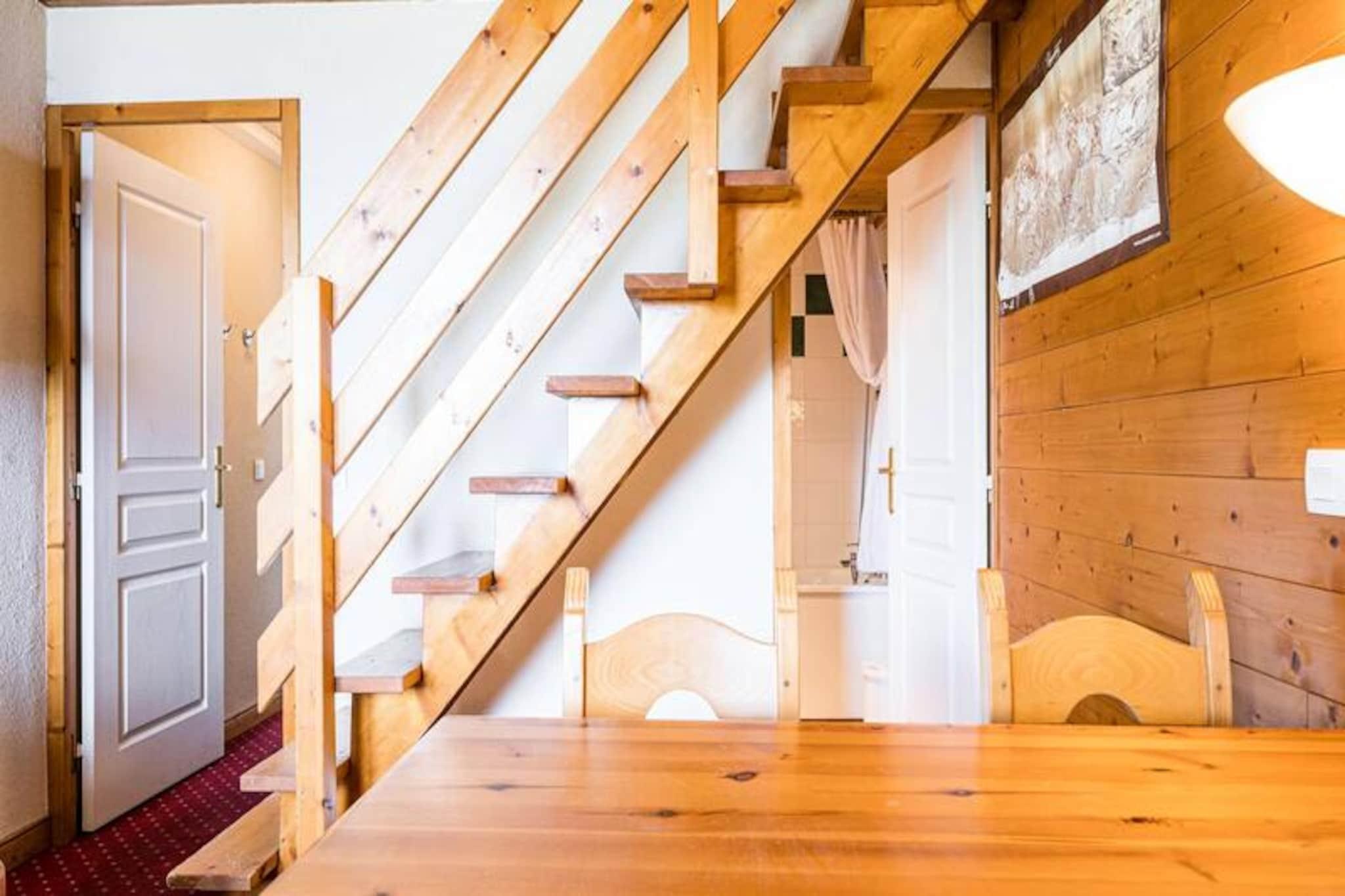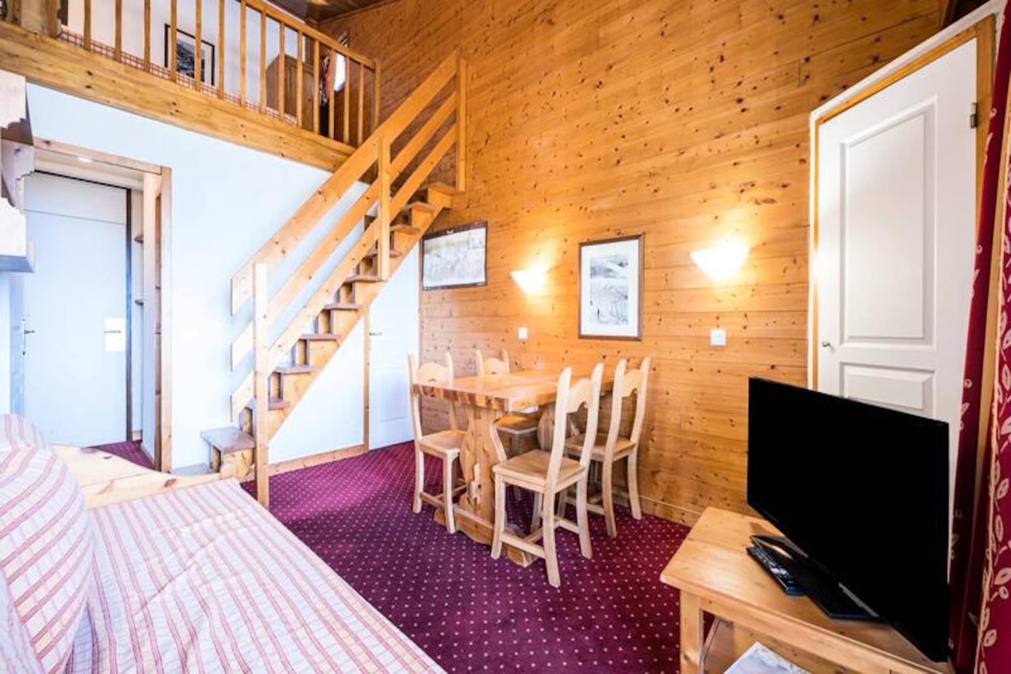 Højt over Tarentaise-dalen, i en højde af 2.050 meter, tilbyder denne charmerende etværelseslejlighed i Les Hameaux 1 Residence et perfekt alpint tilflugtssted i Plagne Villages. Med sin hyggelige mezzanin-planløsning og en nordvendt balkon inviterer denne lejlighed på øverste etage dig til at nyde den rolige bjergatmosfære, mens du kun er få skridt fra pisterne og det pulserende feriestedscentrum. Uanset om du er her for vintersport eller sommervandreture, lover denne beliggenhed et uforglemmeligt ophold i hjertet af de franske alper. Lejligheden, der er designet til op til fire gæster, har en varm og funktionel planløsning. Stuen indeholder en udtrækssovesofa til to, et fladskærms-tv og et åbent køkken udstyret med moderne apparater såsom mikrobølgeovn, keramisk kogeplade, køleskab, opvaskemaskine og kaffemaskine. Soveværelset på mezzaninen, der er tilgængeligt via en trappe, tilbyder to enkeltsenge og rigelig opbevaringsplads, hvilket skaber et hyggeligt og privat soveområde. Et badeværelse med badekar og et separat toilet sikrer bekvemmelighed, mens yderligere faciliteter som et skiskab gør denne ejendom ideel for skientusiaster. Plagne Villages er et familievenligt feriested med direkte forbindelse til det vidtstrakte skiområde La Plagne. ESF-skiskolen, svævebanen og lokale butikker er alle inden for rækkevidde, mens en gratis shuttle-service forbinder Plagne Villages med det nærliggende Plagne Soleil. Om sommeren forvandles området til et paradis for vandrere og naturelskere med betagende stier og panoramaudsigt over de omkringliggende tinder. Boligens nærhed til pisterne gør det til en drømmedestination for skiløbere, mens dens rolige omgivelser sikrer en afslappende ferie året rundt. Uanset om du snor dig gennem frisk puddersne om vinteren eller udforsker alpine enge om sommeren, tilbyder denne lejlighed den perfekte base for dine bjergeventyr. Skab varige minder i dette idylliske tilflugtssted, hvor Alpernes skønhed altid er lige uden for døren.