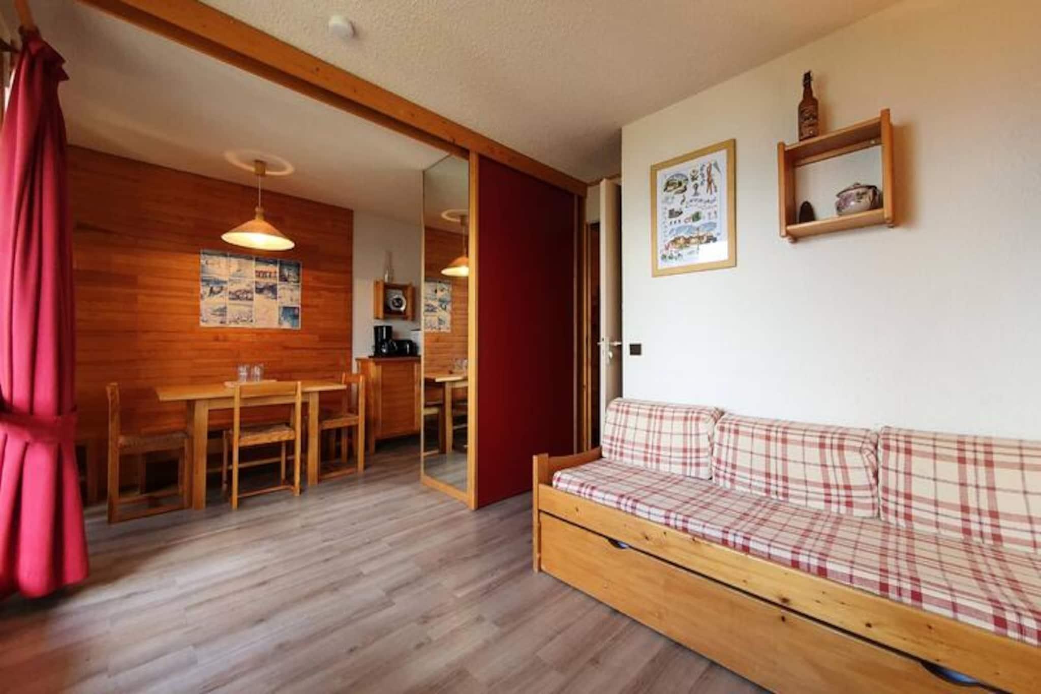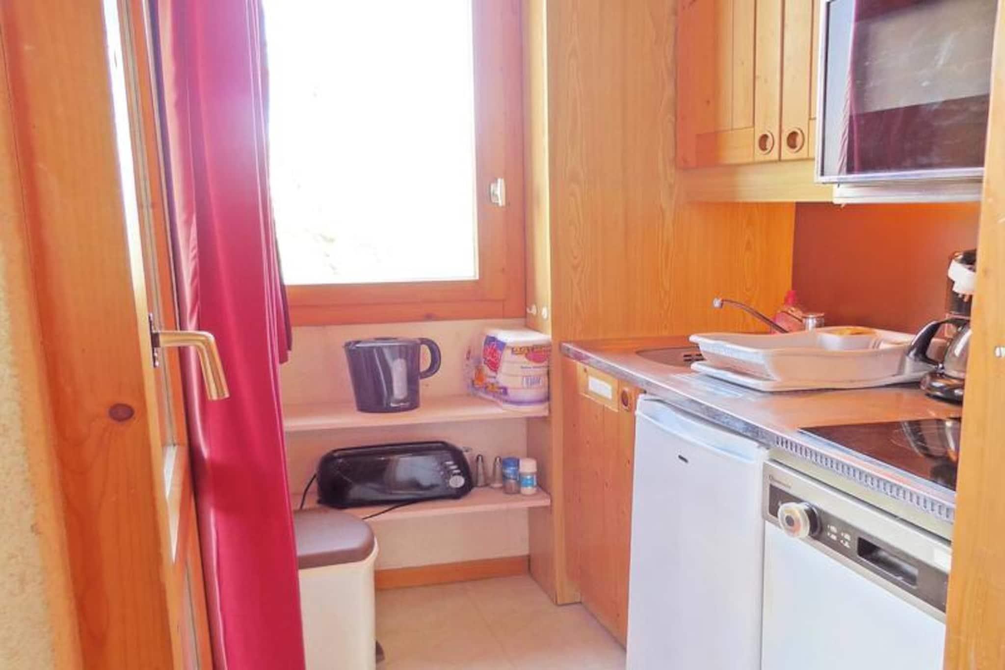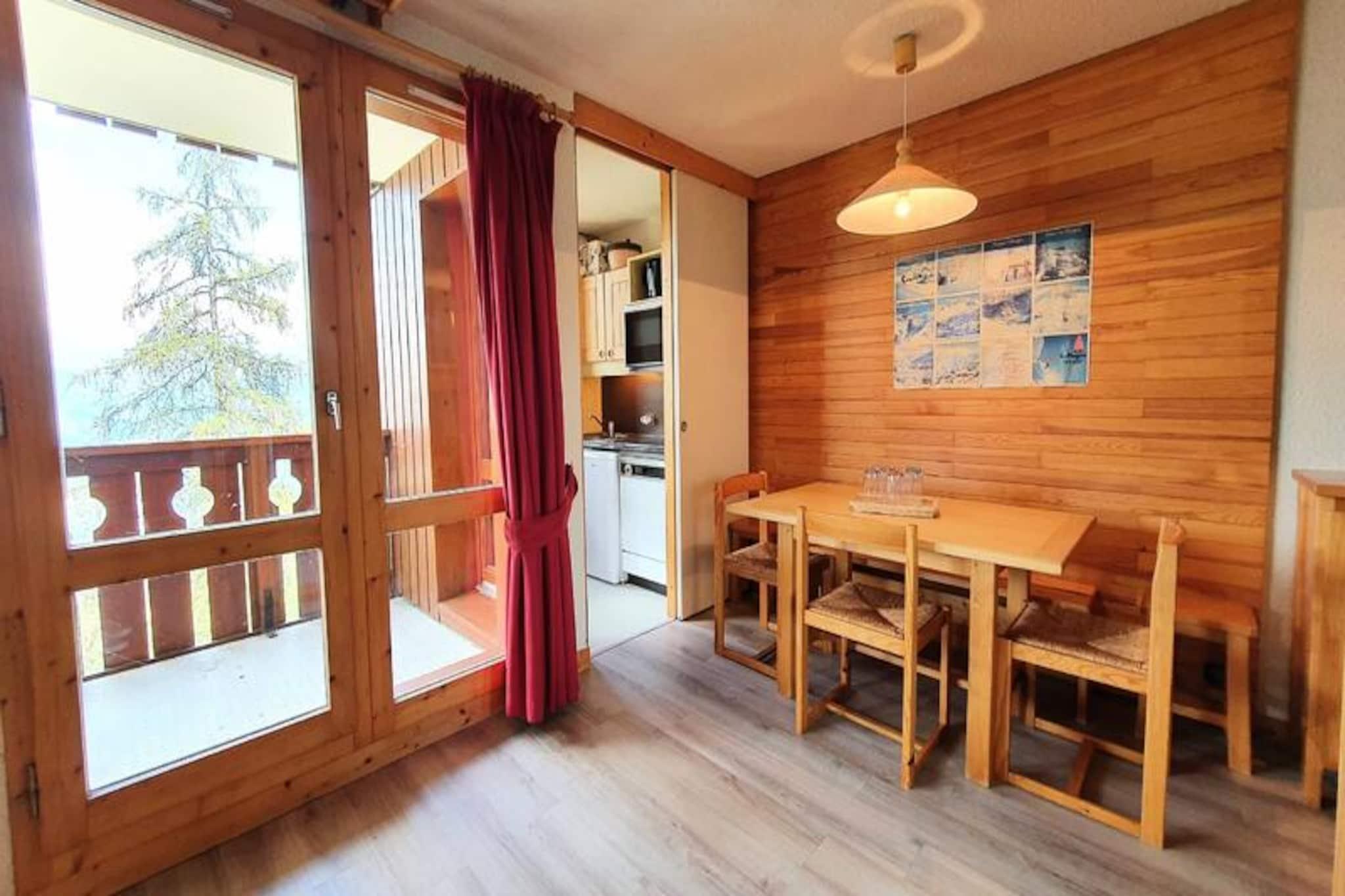 Højt over Tarentaise-dalen tilbyder denne hyggelige studiolejlighed et fredeligt tilflugtssted med en betagende udsigt over Mont Blanc. Beliggende i det rolige Observatoire-distrikt i Les Coches kombinerer denne charmerende bolig alpin tradition med moderne bekvemmeligheder, hvilket gør den til et perfekt valg for par eller små familier, der søger en mindeværdig bjergferie. De rolige omgivelser og nærheden til pisterne skaber ideelle rammer for både afslapning og eventyr. Det 28 m² store studio er omhyggeligt designet til at rumme op til fire gæster. En flytbar skillevæg giver mulighed for fleksible opholdsrum med et soveområde med en enkelt sovesofa og en udtræksseng samt en spiseplads med køjesenge. Køkkenet er fuldt udstyret med moderne apparater, herunder opvaskemaskine, mikrobølgeovn og fonduesæt, hvilket sikrer, at du har alt, hvad du behøver til hyggelige aftener. En privat nordvendt balkon tilbyder en fantastisk udsigt over Mont Blanc, mens skiboksen i boligen gør det nemmere for vintersportsentusiaster. Bemærk venligst, at lejligheden er røgfri, og kæledyr er velkomne mod et mindre gebyr. La Lanterne-residensen er perfekt placeret, kun 200 meter fra butikker og 300 meter fra feriestedets centrum, skiskole og daginstitution. Offentlig parkering er bekvemt placeret i nærheden, og gåstien giver nem adgang til hjertet af feriestedet på under fem minutter. Observatoire-distriktet er kendt for sin rolige atmosfære og panoramaudsigt, hvilket gør det til et eftertragtet sted for dem, der ønsker at undslippe travlheden. Uanset om du er her for at klatre gennem de uberørte pister, udforske naturskønne vandrestier eller blot slappe af med udsigt over Mont Blanc, er dette studie den perfekte base for dit alpine eventyr. Oplev charmen ved Les Coches og skab varige minder i dette idylliske bjergparadis.