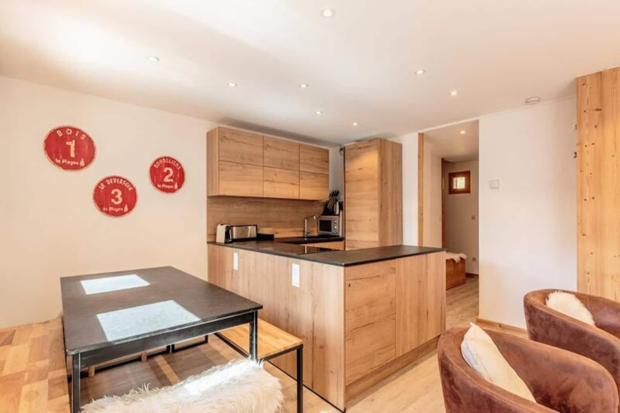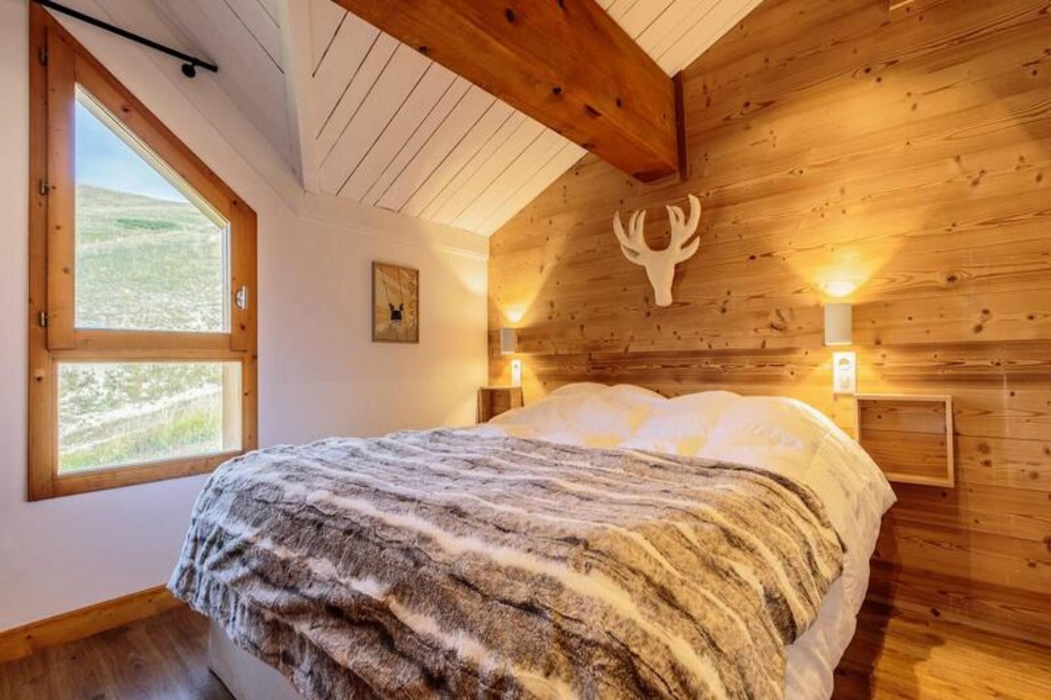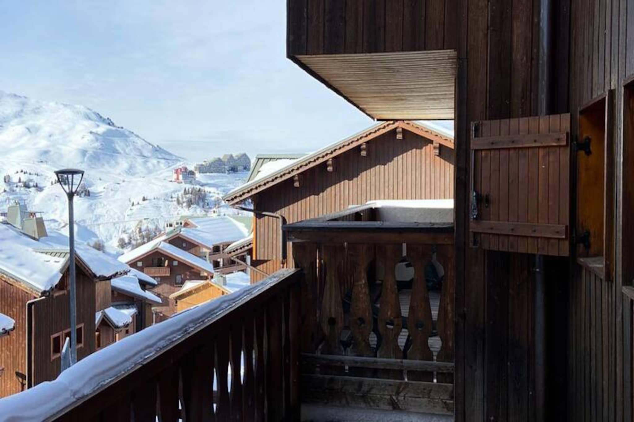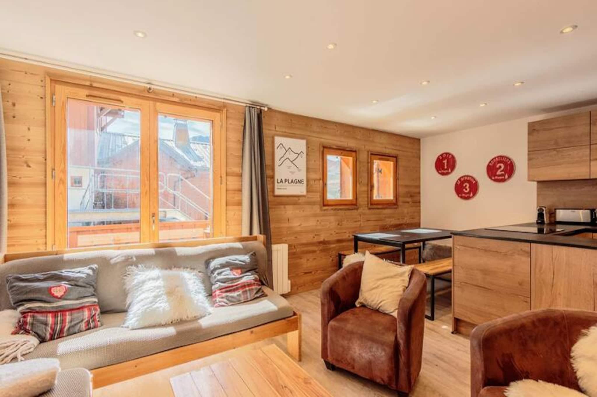 Højt beliggende i den fredfyldte alpelandsby Plagne Soleil inviterer dette charmerende chalet dig til at opleve det perfekte bjergparadis. Badet i sollys og omgivet af betagende tinder, tilbyder det en rolig oase, hvor de franske alpers skønhed møder den moderne livsstils komfort. Uanset om du er her for at grave nye stier på pisterne eller udforske naturskønne vandrestier, er dette chalet den ideelle base for dine eventyr. Chaleten strækker sig over 80 m² fordelt på to etager og kan komfortabelt rumme op til otte gæster. Første sal har en rummelig og indbydende stue med en hyggelig pejs, en solrig balkon og en stor spiseplads, der er perfekt til familiesammenkomster. Det åbne køkken er fuldt udstyret med alt fra en Nespresso-kaffemaskine til et fondue-sæt, så du nemt kan nyde solide alpemåltider. Et privat soveværelse med eget brusebad og toilet er også placeret på denne etage. Ovenpå finder du tre ekstra soveværelser, hver med eget brusebad og toilet, der tilbyder fleksible sovearrangementer med enkeltsenge, der kan sættes sammen eller adskilles. Yderligere faciliteter inkluderer et skiskab og en skotørrer for din bekvemmelighed. Plagne Soleils førsteklasses beliggenhed i hjertet af skiområdet sikrer nem adgang til pisterne og vandrestierne. En gratis shuttle-service forbinder dig med den nærliggende landsby Plagne, hvilket yderligere øger bekvemmeligheden. Efter en dag med eventyr kan du slappe af på balkonen og nyde panoramaudsigten og den friske bjergluft. Med sin blanding af komfort, charme og uovertruffen beliggenhed lover denne hytte en uforglemmelig alpin ferie.