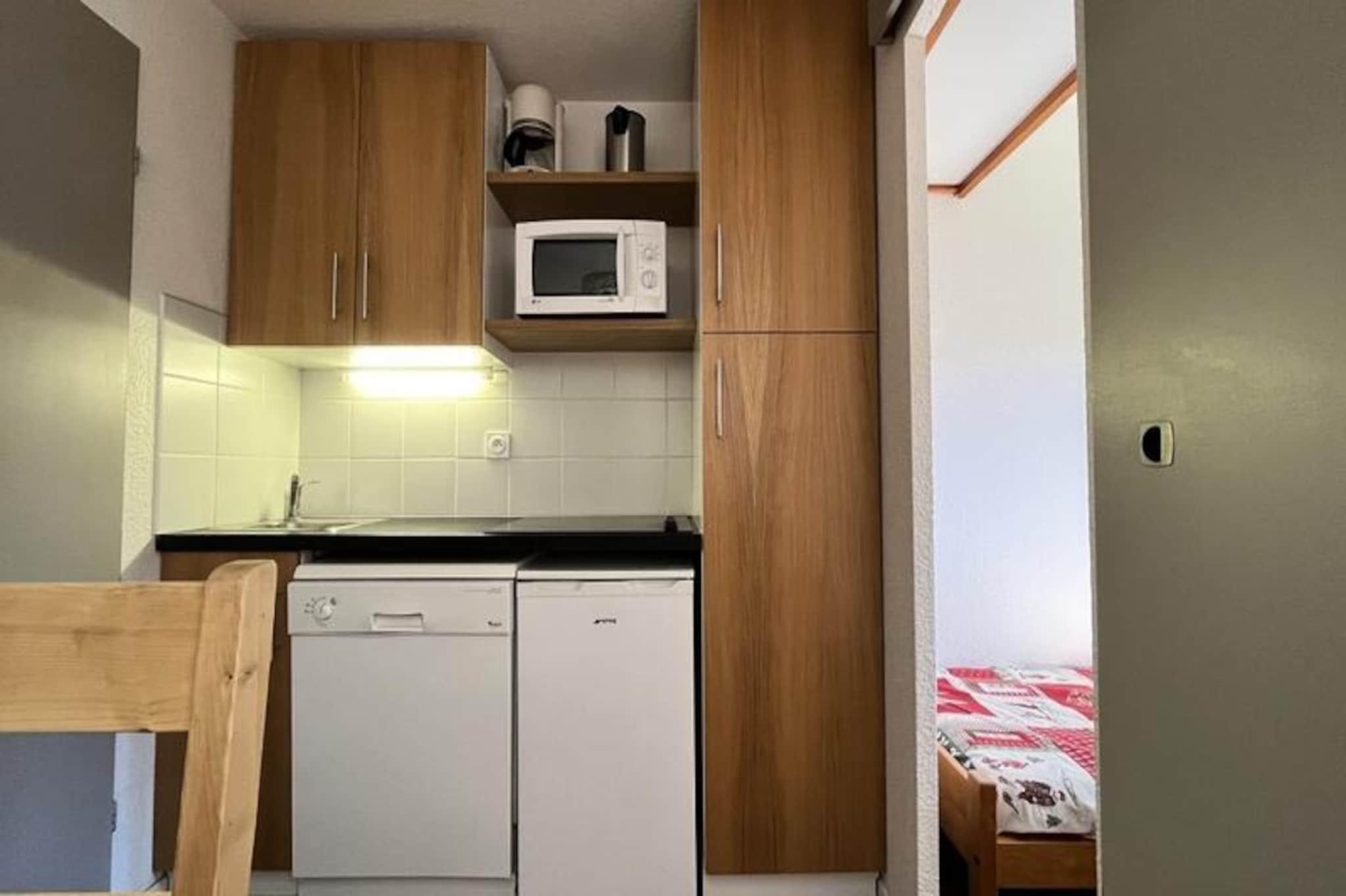 Denne charmerende 2-værelses lejlighed i Plagne Soleil, der soler sig i de franske alpers gyldne sollys, tilbyder et hyggeligt tilflugtssted med en betagende udsigt over de omkringliggende Plagne-landsbyer. Uanset om du er en passioneret skiløber eller en naturentusiast, placerer beliggenheden dig i hjertet af Paradiski-området med direkte adgang til skiløb og gangstier, der snor sig gennem det fredfyldte alpine landskab. Feriestedets solrige beliggenhed og rolige atmosfære gør det til et perfekt tilflugtssted året rundt. En gratis shuttle forbinder bekvemt Plagne Soleil med Plagne Village, hvilket sikrer nem udforskning af området. Lejligheden, der ligger på 6. sal i Residence Le Cervin, er omhyggeligt designet til at rumme op til fem gæster. Stuen har en komfortabel sovesofa, en udtræksseng og en enkeltseng, suppleret af et fladskærms-tv til hyggelige aftener. Det åbne køkken er udstyret med moderne faciliteter, herunder opvaskemaskine, køleskab og mikrobølgeovn, hvilket gør det nemt at tilberede måltider efter en dag med eventyr. Et separat soveværelse med to enkeltsenge giver et afslappende tilflugtssted, mens badeværelset med badekar og separat toilet gør opholdet endnu mere behageligt. Yderligere faciliteter inkluderer et skirum og Wi-Fi-adgang i boligen, hvilket sikrer komfort og praktisk anvendelighed. Træd udenfor, og du vil finde dig selv ved foden af ??pisterne, med butikker og restauranter lige i nærheden. Om vinteren lokker de uberørte snedækkede pister, mens sommeren forvandler området til et paradis for vandrere. Fodgængerstierne og de nærliggende attraktioner tilbyder uendelige muligheder for at udforske Alpernes naturlige skønhed. Uanset om du søger spændende udendørsaktiviteter eller rolige øjeblikke omgivet af fantastiske bjergudsigter, er denne lejlighed din port til uforglemmelige alpine oplevelser. Med sin uovertrufne beliggenhed, moderne faciliteter og Plagne Soleils charme lover denne bolig en ferie fyldt med afslapning, eventyr og værdsatte minder.