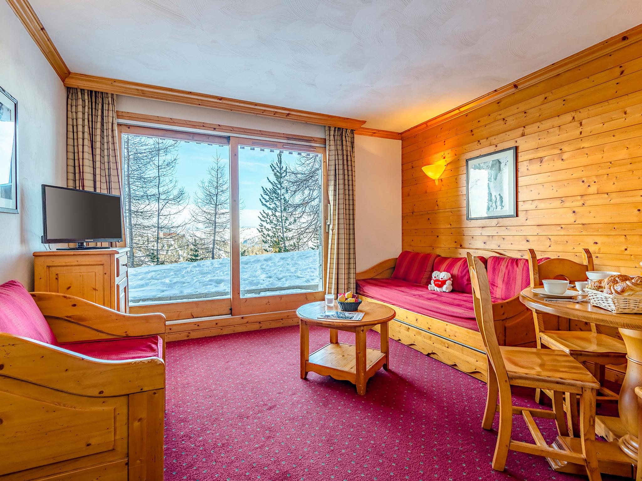"Résidence Aspen", 2-room apartment 37 m2. Cosy and wooden furniture furnishings: living/sleeping room with 2 sleeping facilities and cable TV. 1 room with 2 beds. Kitchenette (dishwasher, 4 ceramic glass hob hotplates, microwave, electric coffee machine). Bath/shower, sep. WC. Heating. Balcony or terrace. Facilities: Internet (WiFi, extra). Please note: maximum 2 pets/ dogs allowed. Smoke alarm, fire extinguisher.