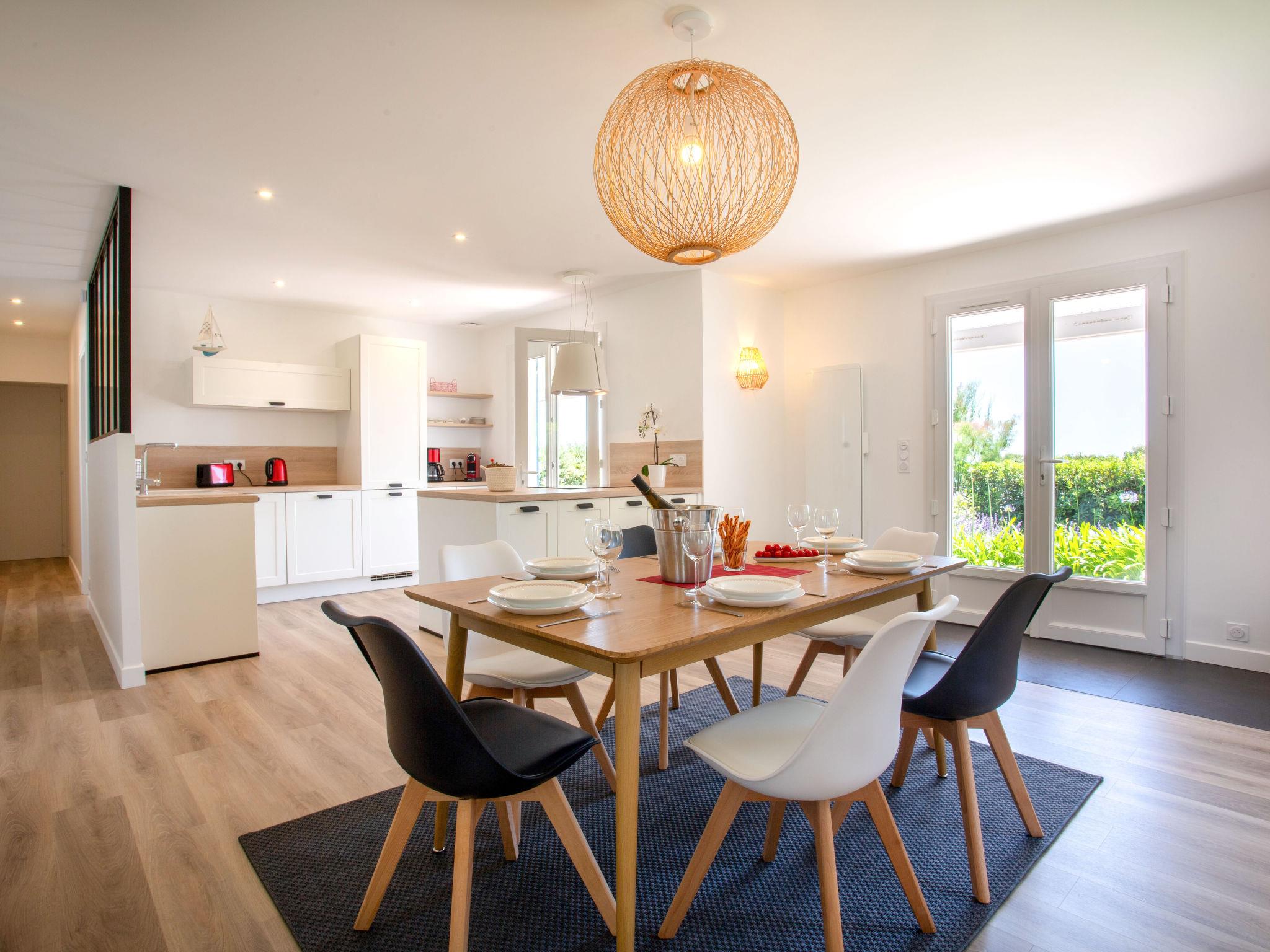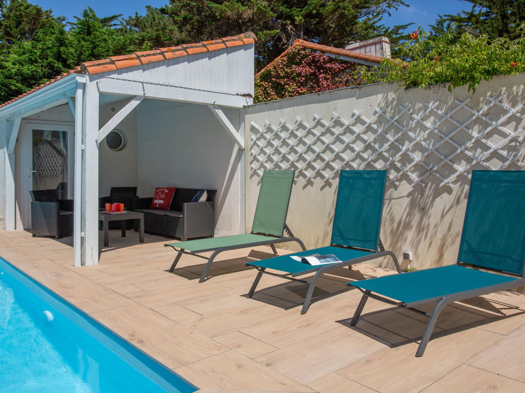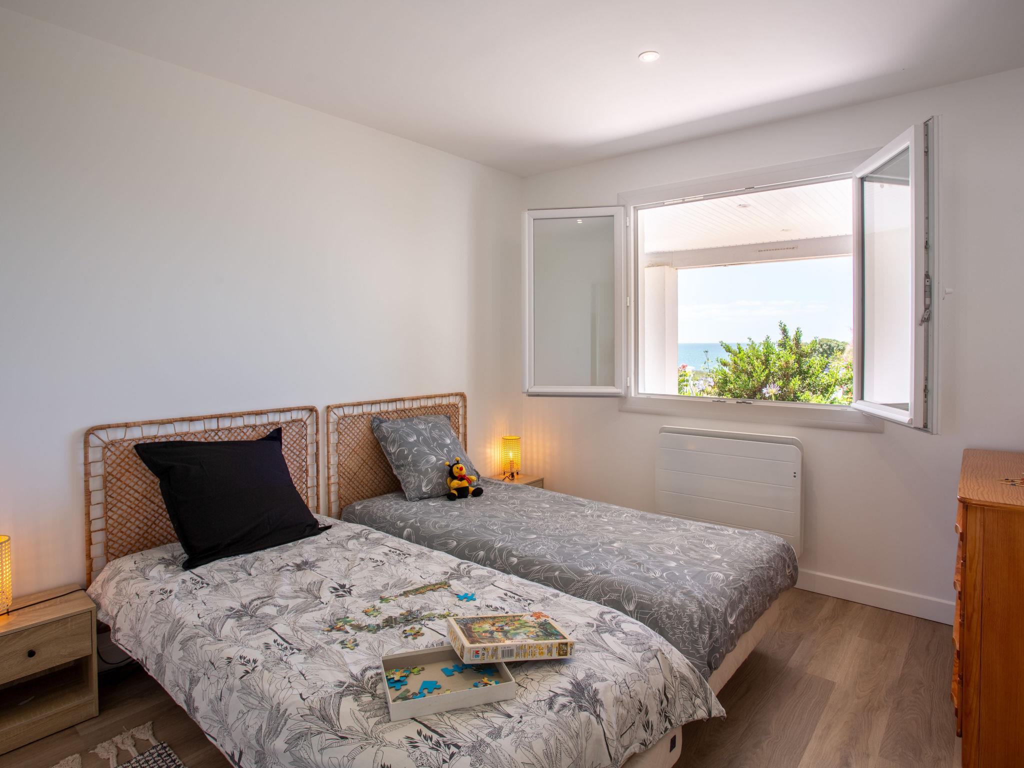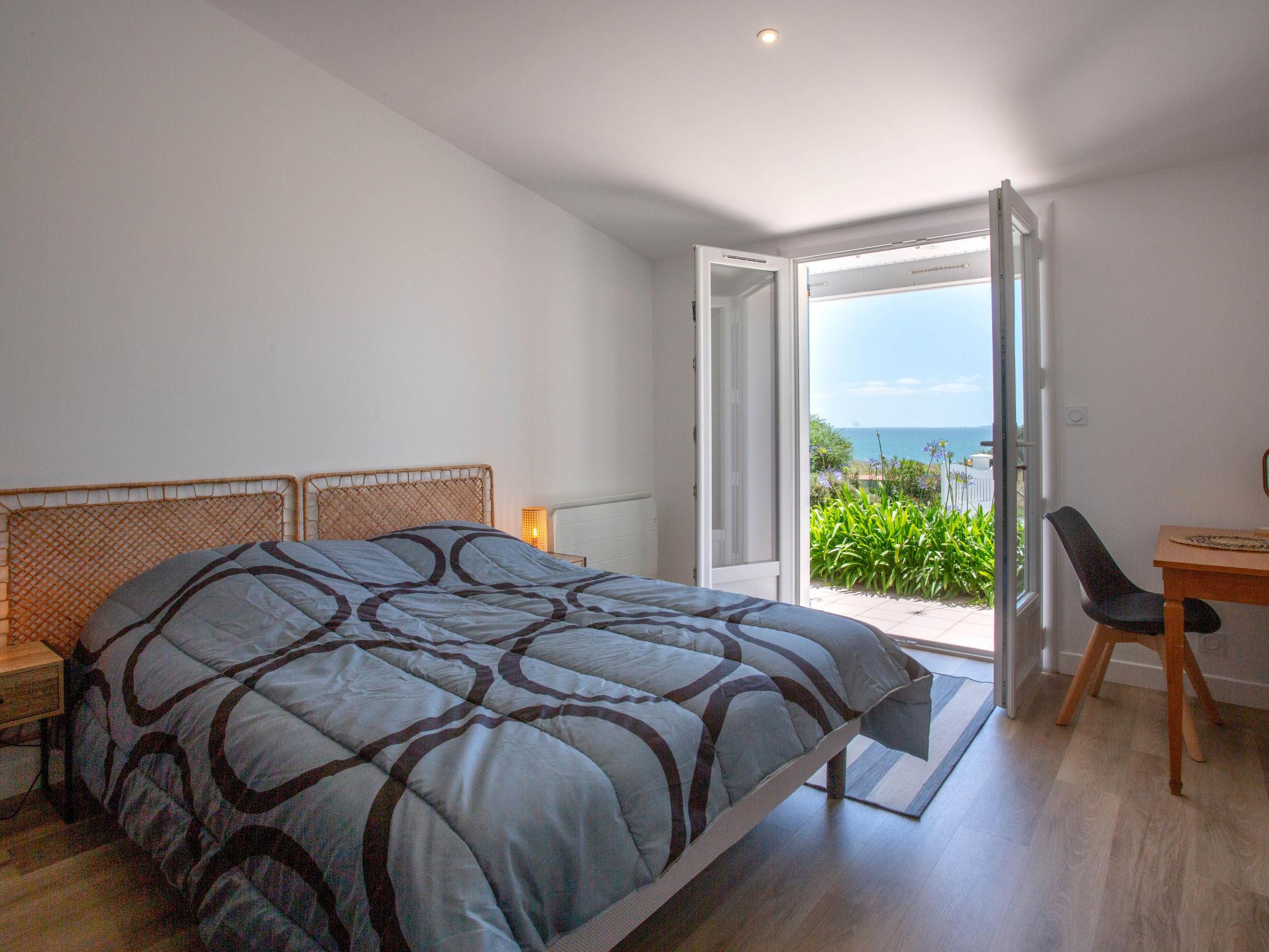 "Le Bigorneau Préfaillais", 4-room house 104 m2, south facing position. Spacious and bright, fully renovated in 2024, beautiful and tasteful furnishings: living/dining room with panoramic window north facing position and south facing position with dining table and TV (flat screen). Exit to the terrace, south facing position. 1 room with 1 french bed (1 x 160 cm, length 200 cm), shower/WC and double hand-basin. Exit to the swimming pool. 1 room with 2 beds (90 cm, length 190 cm). 1 room with 1 french bed (1 x 160 cm, length 200 cm). Large, open kitchen (oven, dishwasher, 1 ceramic glass hob hotplate, 4 gas rings, toaster, kettle, freezer, electric coffee machine, Capsules for coffee machine (Nespresso Krups) extra, cooking island). Shower/WC. Electric heating. Terrace 25 m2, south facing position, garden 400 m2, north facing position and south facing position. Terrace furniture. Marvellous view of the sea. Facilities: washing machine, children's high chair, baby cot for up to 2 year olds, hair dryer. Internet (WiFi, free). Parking (fenced 2 cars). Please note: non-smoking house. Smoke alarm. The pool mentioned in the description is for private use. Offer by a commercial proprietor according to Art. 155, IV, CGI 44136000050QV