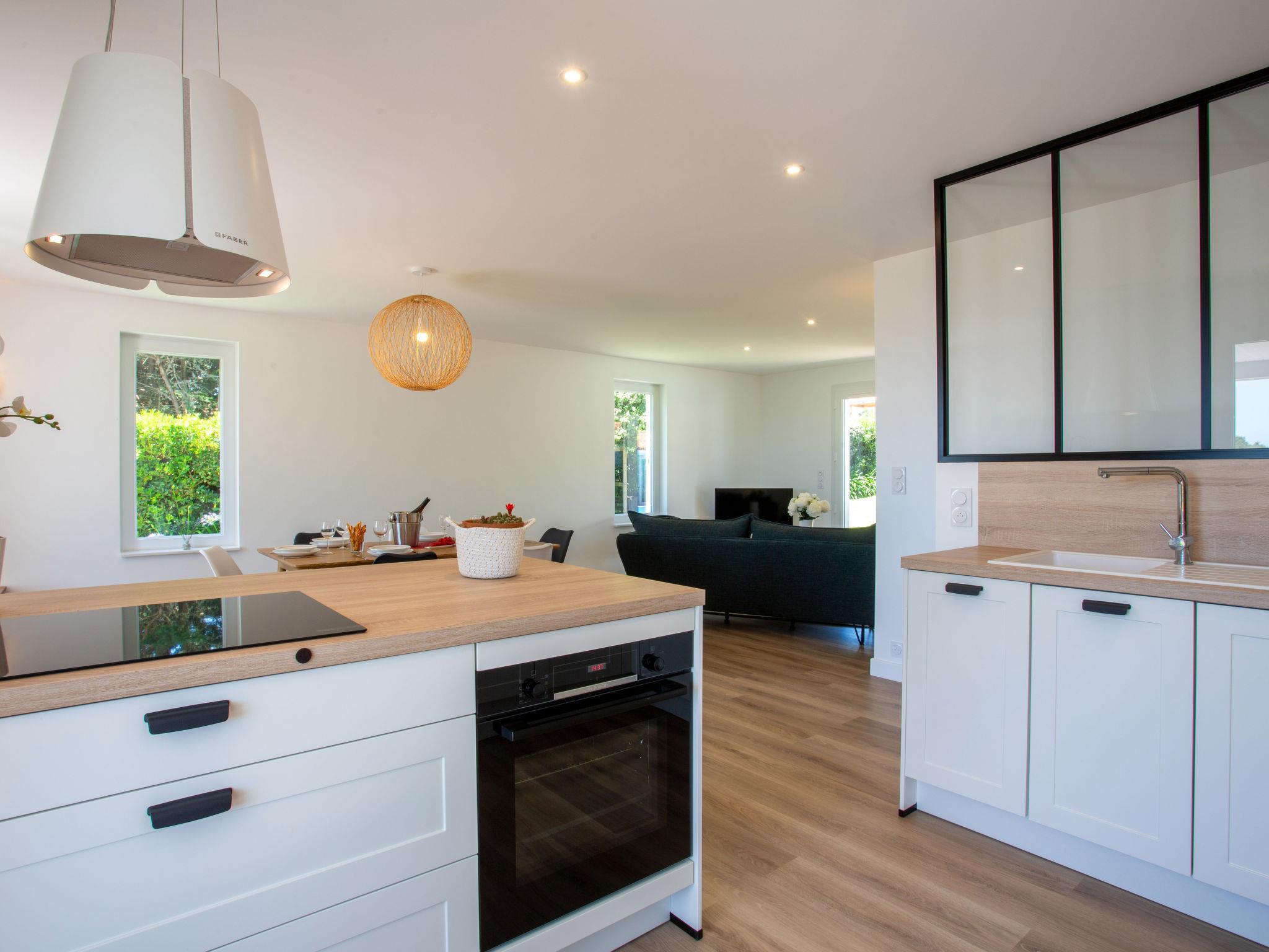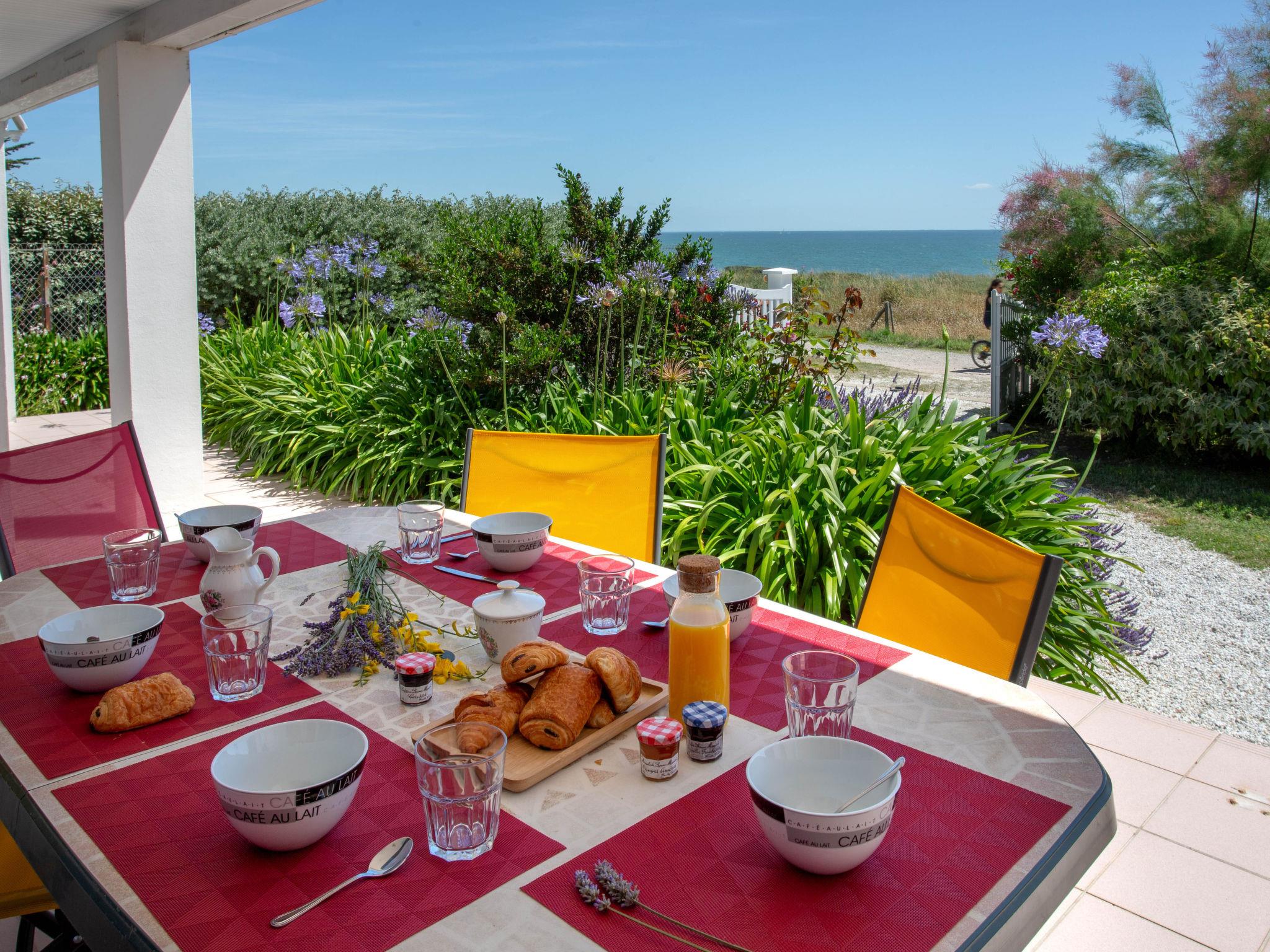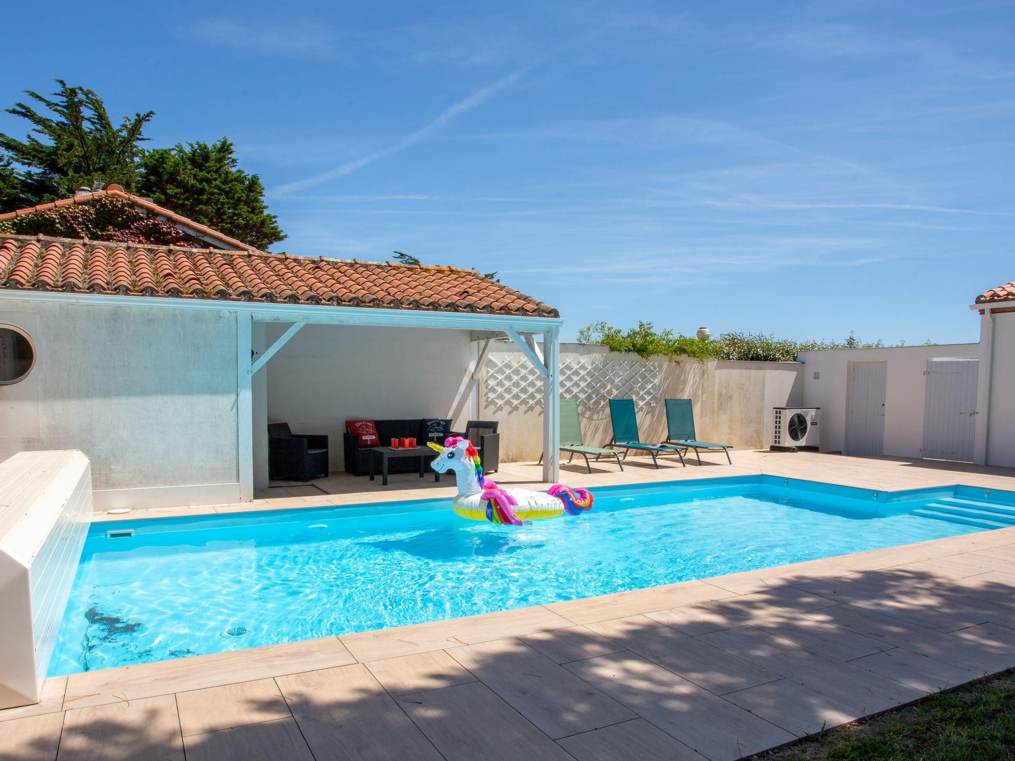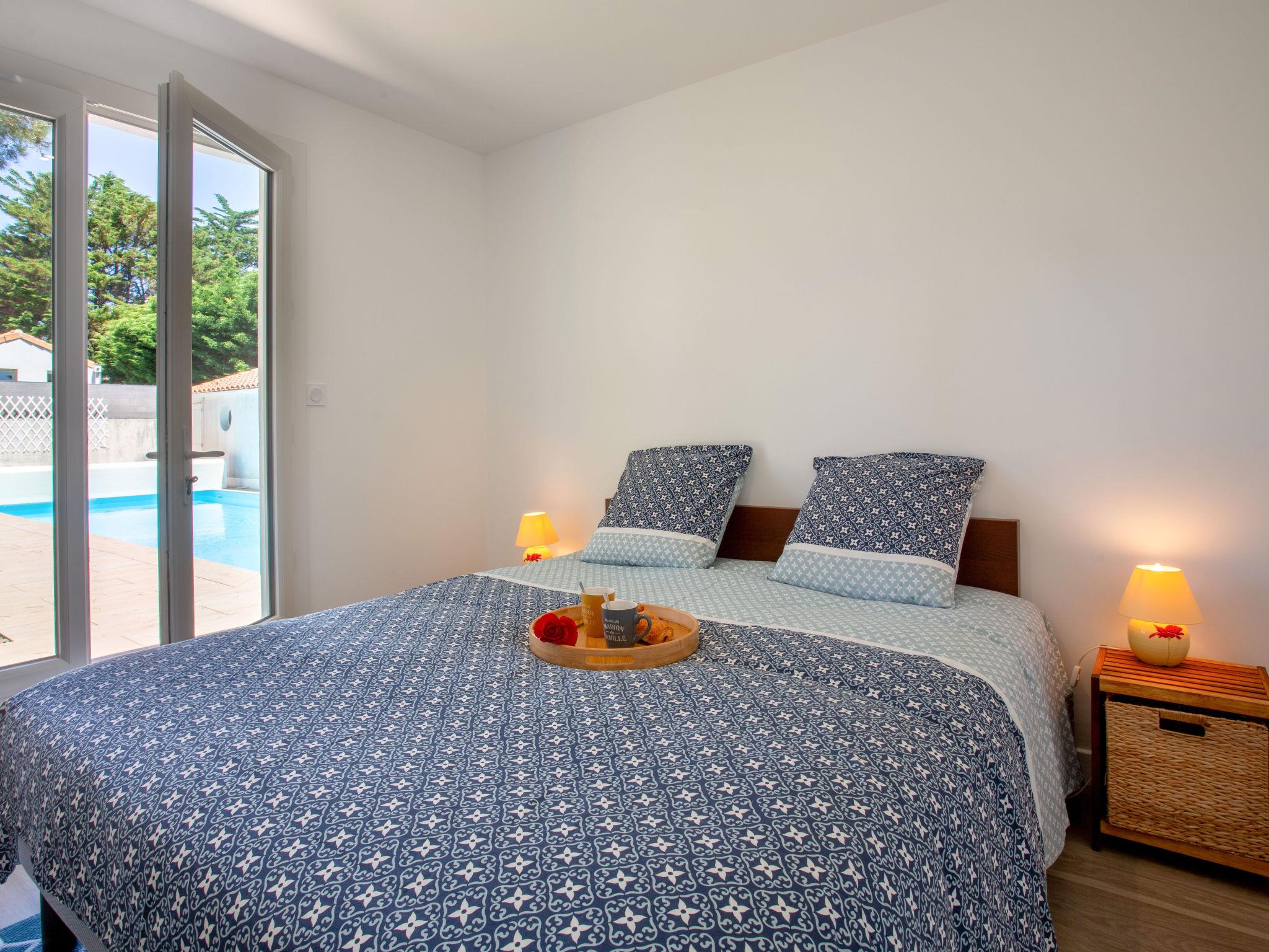"Le Bigorneau Préfaillais", 4-room house 104 m2, south facing position. Spacious and bright, fully renovated in 2024, beautiful and tasteful furnishings: living/dining room with panoramic window north facing position and south facing position with dining table and TV (flat screen). Exit to the terrace, south facing position. 1 room with 1 french bed (1 x 160 cm, length 200 cm), shower/WC and double hand-basin. Exit to the swimming pool. 1 room with 2 beds (90 cm, length 190 cm). 1 room with 1 french bed (1 x 160 cm, length 200 cm). Large, open kitchen (oven, dishwasher, 1 ceramic glass hob hotplate, 4 gas rings, toaster, kettle, freezer, electric coffee machine, Capsules for coffee machine (Nespresso Krups) extra, cooking island). Shower/WC. Electric heating. Terrace 25 m2, south facing position, garden 400 m2, north facing position and south facing position. Terrace furniture. Marvellous view of the sea. Facilities: washing machine, children's high chair, baby cot for up to 2 year olds, hair dryer. Internet (WiFi, free). Parking (fenced 2 cars). Please note: non-smoking house. Smoke alarm. The pool mentioned in the description is for private use. Offer by a commercial proprietor according to Art. 155, IV, CGI 44136000050QV