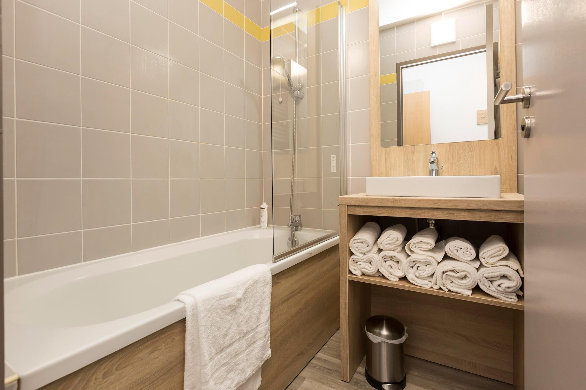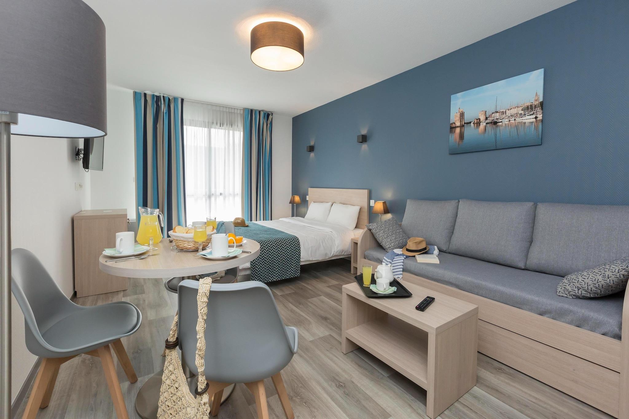 Oplev denne lyse lejlighed i stueetagen i den stilfulde hvide Résidence l'Archipel, perfekt egnet til en afslappende kystferie. Det er pænt møbleret og byder på en rummelig stue med to enkeltsovesofaer og et tv samt et fuldt udstyret tekøkken med opvaskemaskine til nem madlavning. Med to soveværelser - det ene med en dobbeltseng og det andet med enten to enkeltsenge eller en dobbeltseng - og et badeværelse med badekar med bruser, blander dette hjem komfort og funktionalitet. Træd udenfor til en balkon eller terrasse med havemøbler, og nyd bekvemmeligheden ved en reserveret parkeringsplads. Blot 15 minutters gang fra sandstranden og 1,4 km fra La Rochelles ikoniske gamle havn placerer denne lejlighed dig tæt på det bedste ved Atlanterhavskysten. Kæledyr er hjerteligt velkomne her - udforsk de mange hundevenlige parker, naturskønne vandrestier og nærliggende grønne områder, perfekt til gåture og leg med dine lodne ledsagere. Efter en dag udendørs kan du slappe af i den fælles opvarmede pool, der er åben fra april til september, en sand oase for gæster. Nyd det lokale køkken på nærliggende caféer og bistroer, der byder kæledyr velkommen på deres terrasser. Nyd frisk fisk og skaldyr, regionale specialiteter og lækre kager, mens dine kæledyr slapper af ved din side. Tag aftenture gennem den charmerende havn eller slap af ved hundevenlige strande og parker, hvilket gør dit ophold til en dejlig blanding af kultur, komfort og kæledyrsvenlig sjov.