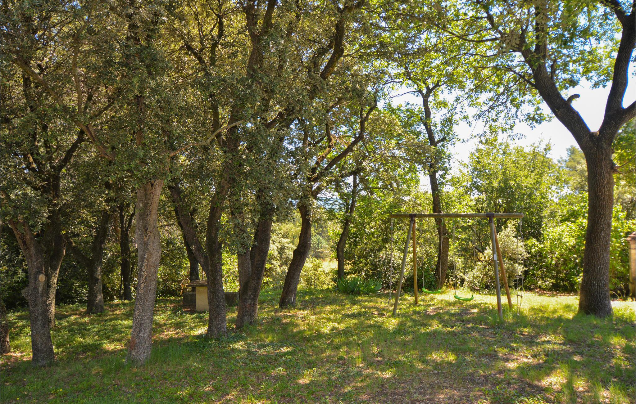 En smukt restaureret Provence-gård med udsigt langt ud over Durance-dalen til Lubéron-bakkerne. Ejendommen er delt i to halvdele, ideel til to familier eller en stor gruppe. Grunden på 25 hektar skråner som terrasser ned fra huset, med frugttræer, vinstokke og skov. Interiørets gode kvalitet gør huset til noget helt særligt. Den diskrete opsynsmand bor i et selvstændigt hus på grunden. Luberons landsbyer og Aix-en-Provence ligger i nærheden.