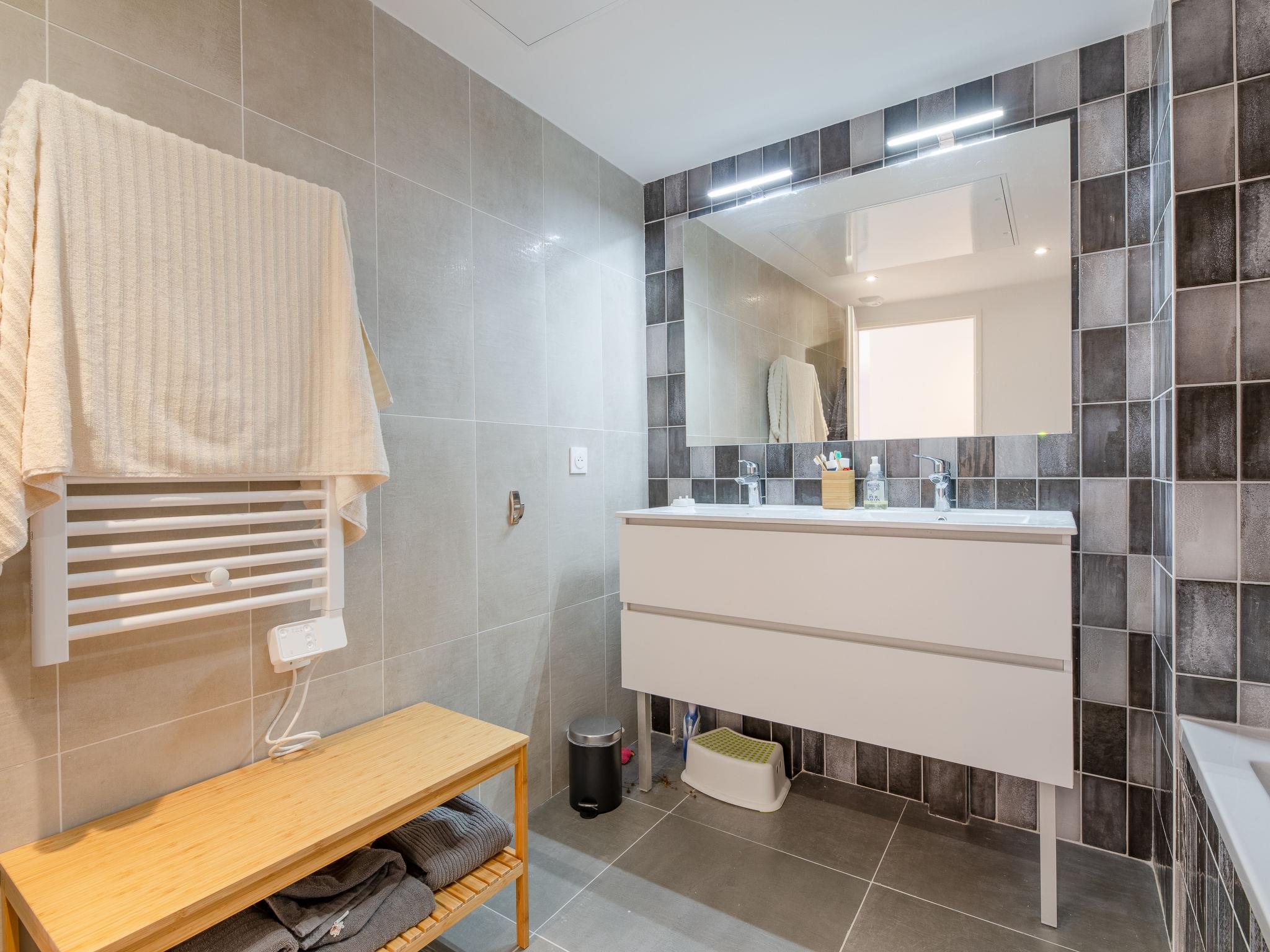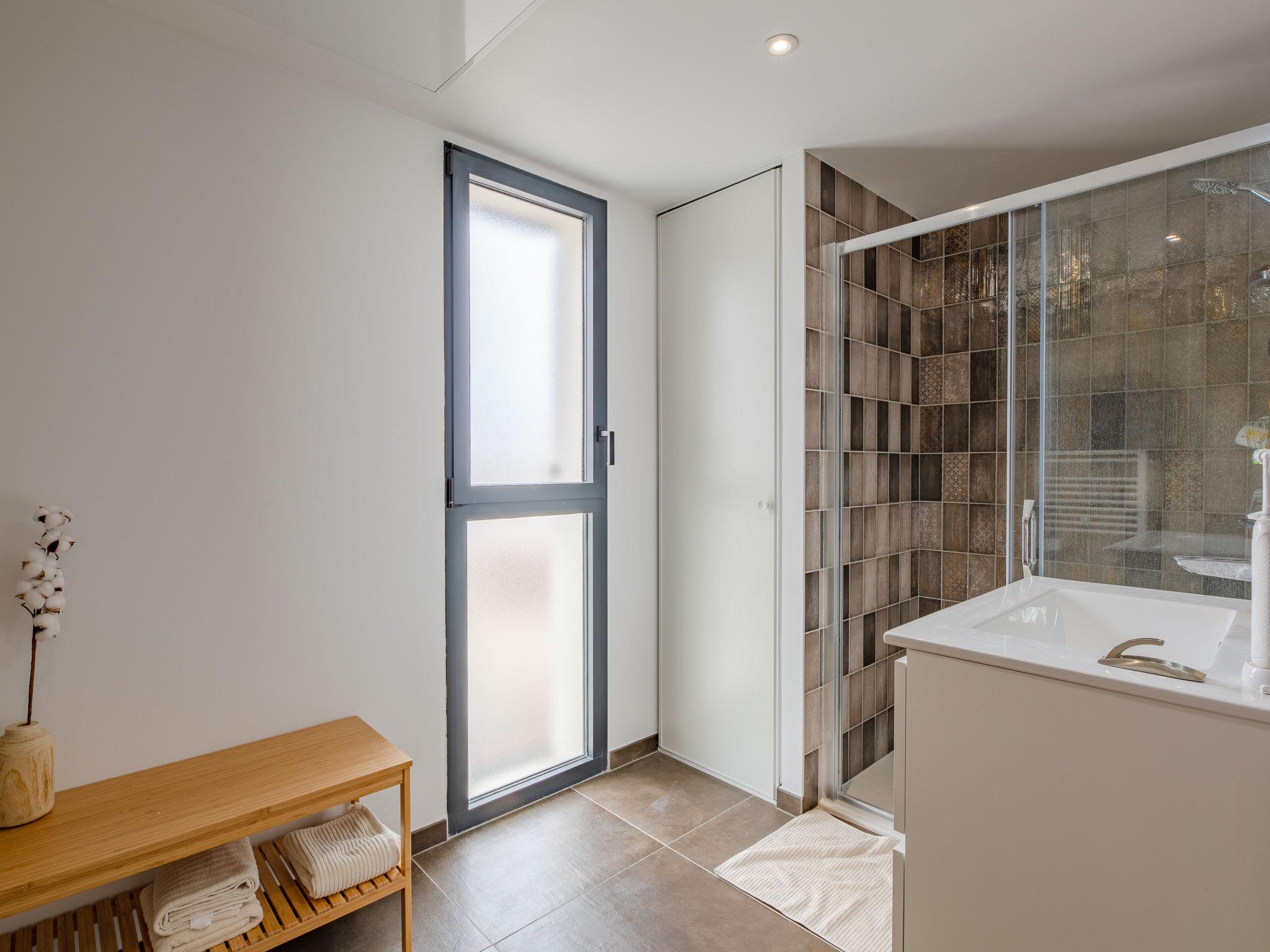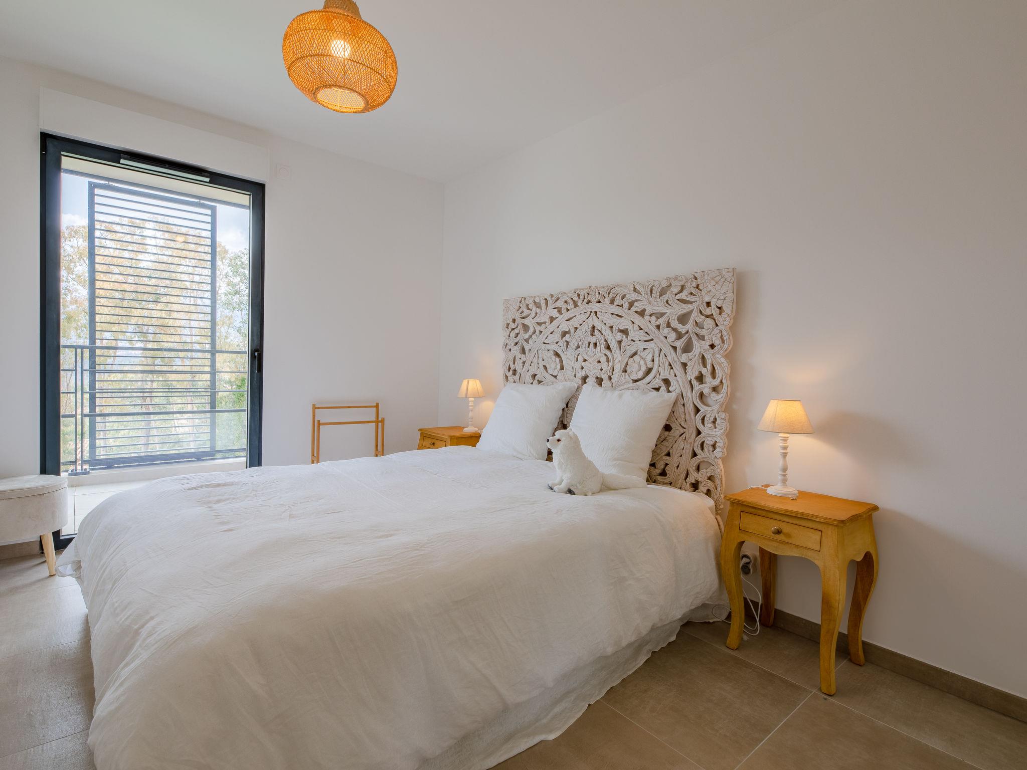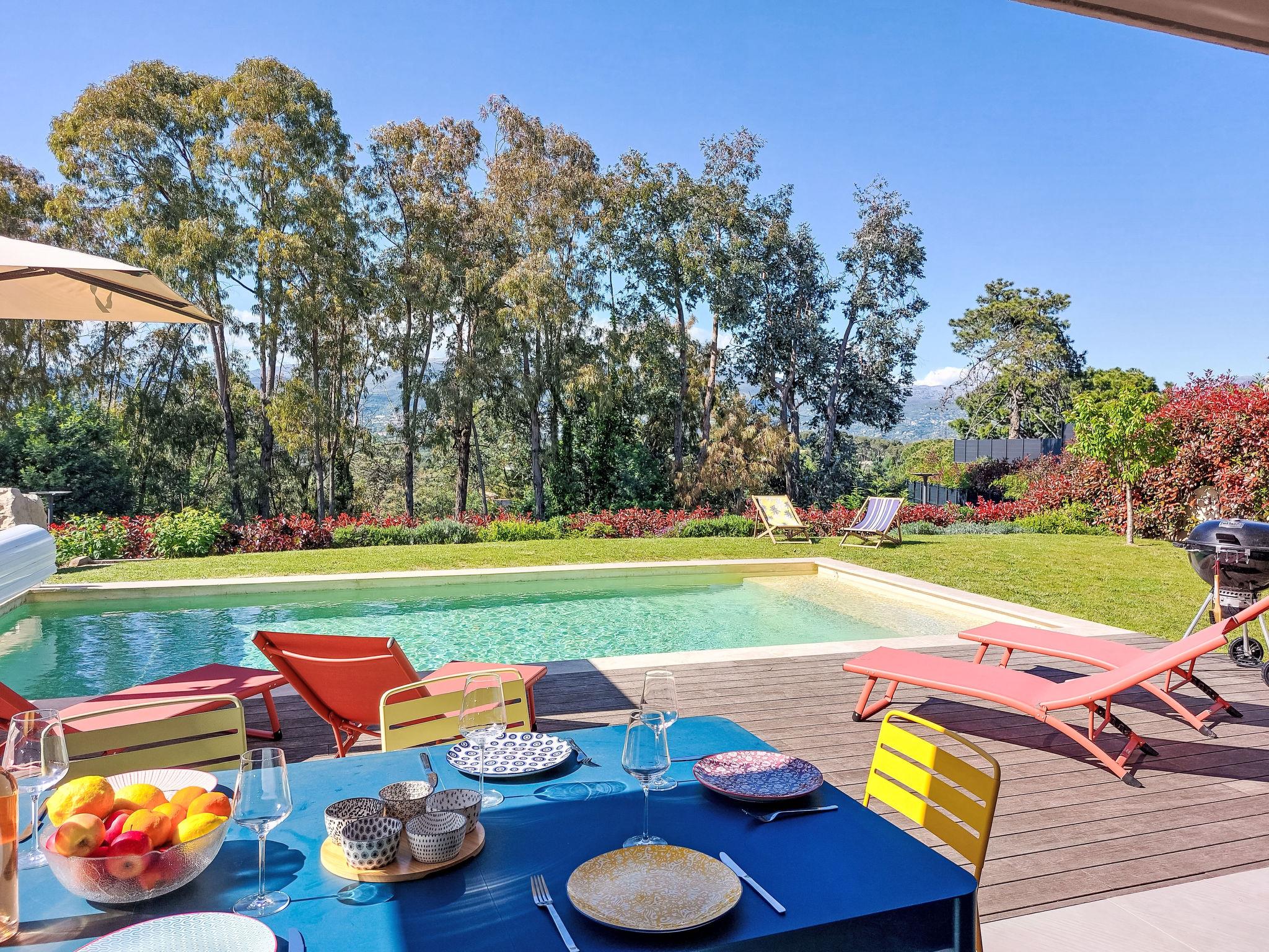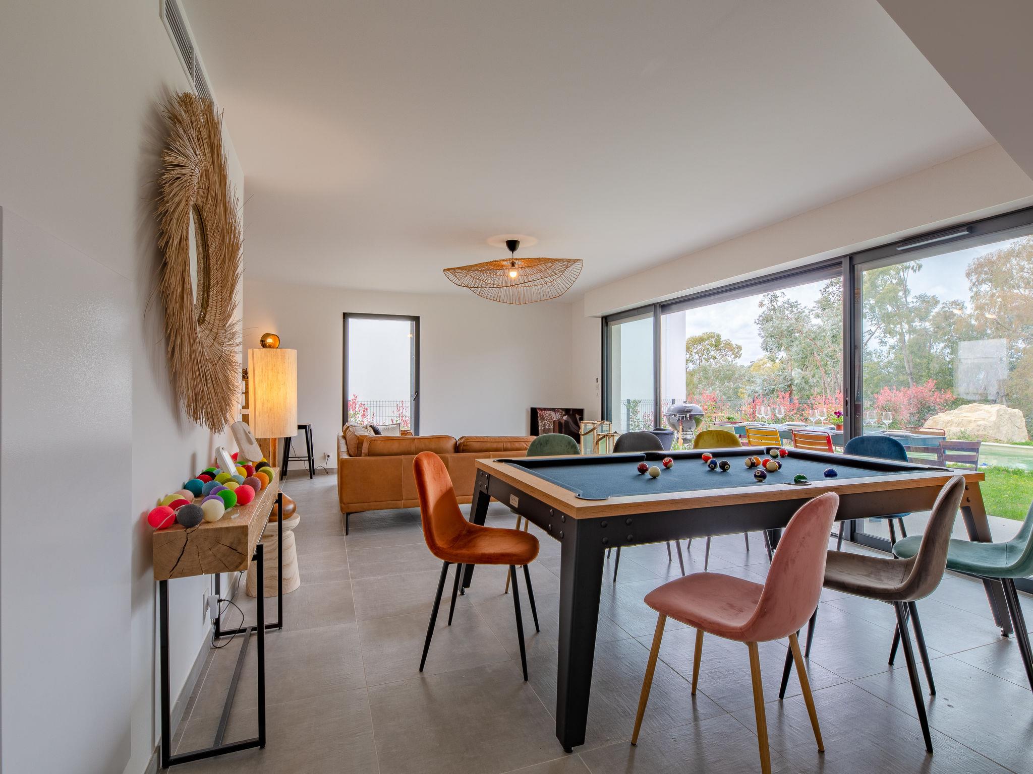 La Roquette sur Siagne 10 km from Cannes: Very modern, beautiful villa "Villa La Roquette sur Siagne", 2 storeys, detached, built in 2023. Residential area (villas). Private: well-kept garden 400 m2 (fenced), swimming pool heated (8 x 4 m, depth 120 - 150 cm, seasonal availability: 01.May. - 30.Sep.) with shutter cover. In the house: burglar alarm system. Parking (for 3 cars). Shop, restaurant 500 m, bus stop 600 m, sandy beach "Plage du Midi" 7 km. Sports harbour 10 km, golf course (18 hole) 5 km. Nearby attractions: Cannes 10 km, Grasse 10 km, Nice 35 km. Hiking paths: Tanneron 6 km. The owner does not accept any youth groups. Part of the house is closed and unoccupied. Residence with electric gates. Neighbourhood highly sensitive to noise. Quietness and good behaviour expected.