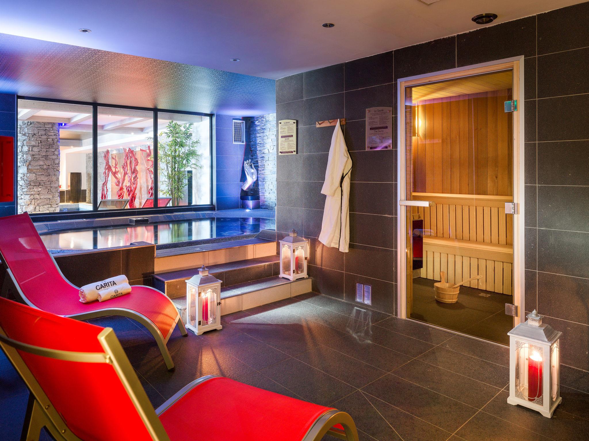 "CGH Résidence&Spa Lodge Hemera 5*", 4-room apartment 70 to 80 m2. Comfortable and tasteful furnishings: living/sleeping room with 1 double sofabed, dining table and satellite TV. Exit to the balcony. 1 room with 1 french bed. 2 rooms, each room with 2 beds. Kitchenette (oven, dishwasher, 4 ceramic glass hob hotplates, toaster, kettle, electric coffee machine, steamer). Bath/WC, shower/WC. Heating. Balcony. Balcony furniture. Facilities: telephone, hair dryer. Internet (WiFi, free). Please note: maximum 1 pet/ dog allowed. Smoke alarm, fire extinguisher. This type of apartment can also be created on two levels.