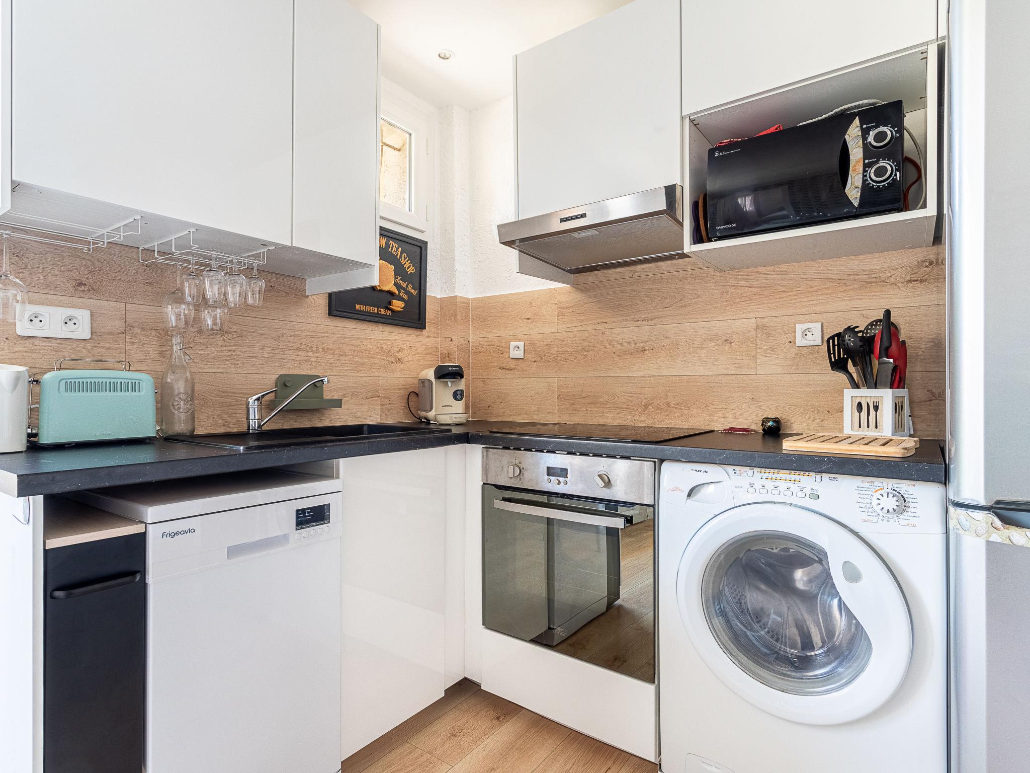 2-room apartment 33 m2, on the upper ground floor. Fully renovated in 2024, beautiful furnishings: living/dining room with 1 double sofabed (160 cm, length 200 cm), TV (flat screen). Exit to the balcony. 1 room with 1 french bed (160 cm, length 200 cm). Kitchenette (dishwasher, 1 induction hot plates, 4 gas rings, toaster, kettle, microwave, electric coffee machine, Capsules for coffee machine (Tassimo) extra). Shower/WC. Electric heating, air-conditioning. Balcony 5 m2, south facing position and west facing position. Balcony furniture. Facilities: washing machine. Internet (WiFi, free). Parking space n 3 (1 car). Please note: TV only FR. Smoke alarm, no lift. Offer by a private individual according to Art. 155, IV of CGI.