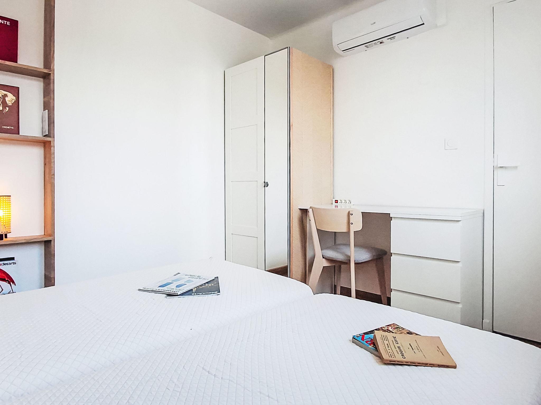 2-room apartment 30 m2 on 2nd floor. Object suitable for. Fully renovated in 2025, beautiful furnishings: living/dining room with 1 double sofabed (140 cm, length 190 cm), TV (flat screen), air conditioning. Exit to the balcony. 1 room with 2 beds (90 cm, length 190 cm), air conditioning. Kitchenette (1 induction hot plates, 2 gas rings, toaster, kettle, microwave, freezer, electric coffee machine, Capsules for coffee machine (Nespresson) extra). Exit to the balcony. Shower/WC. Electric heating, air-conditioning. Balcony 5 m2, south facing position and west facing position. Balcony furniture. Facilities: washing machine. Internet (WiFi). Parking space n 41 (1 car). Please note: TV only FR. Smoke alarm, no lift. Offer by a private individual according to Art. 155, IV of CGI.