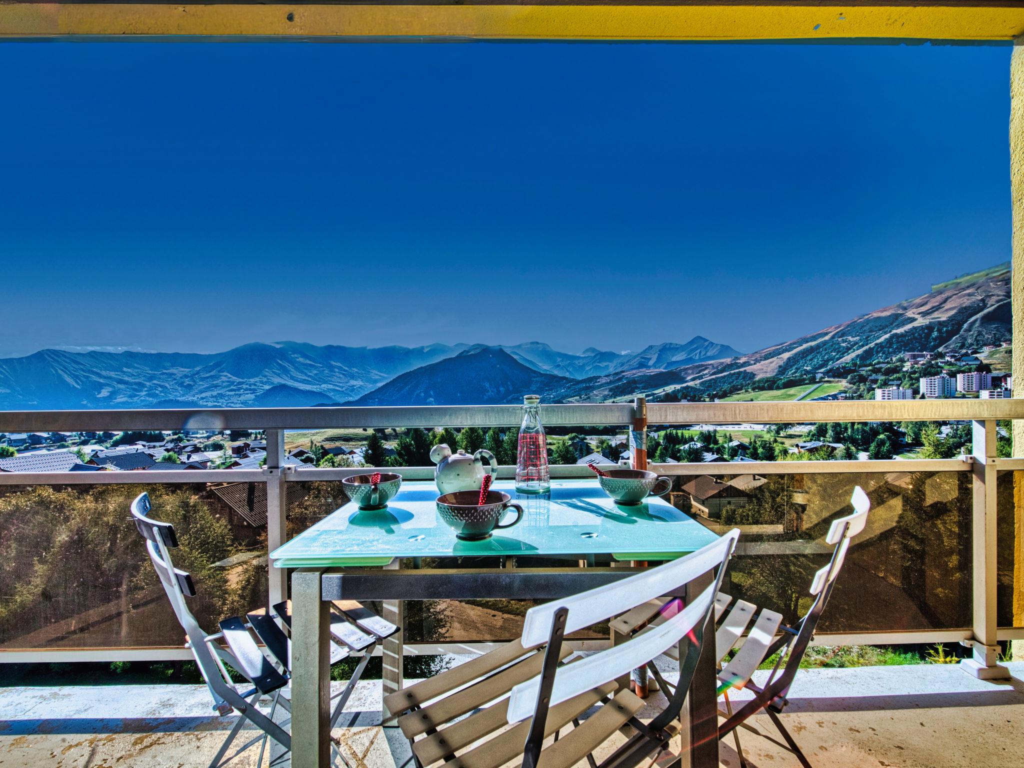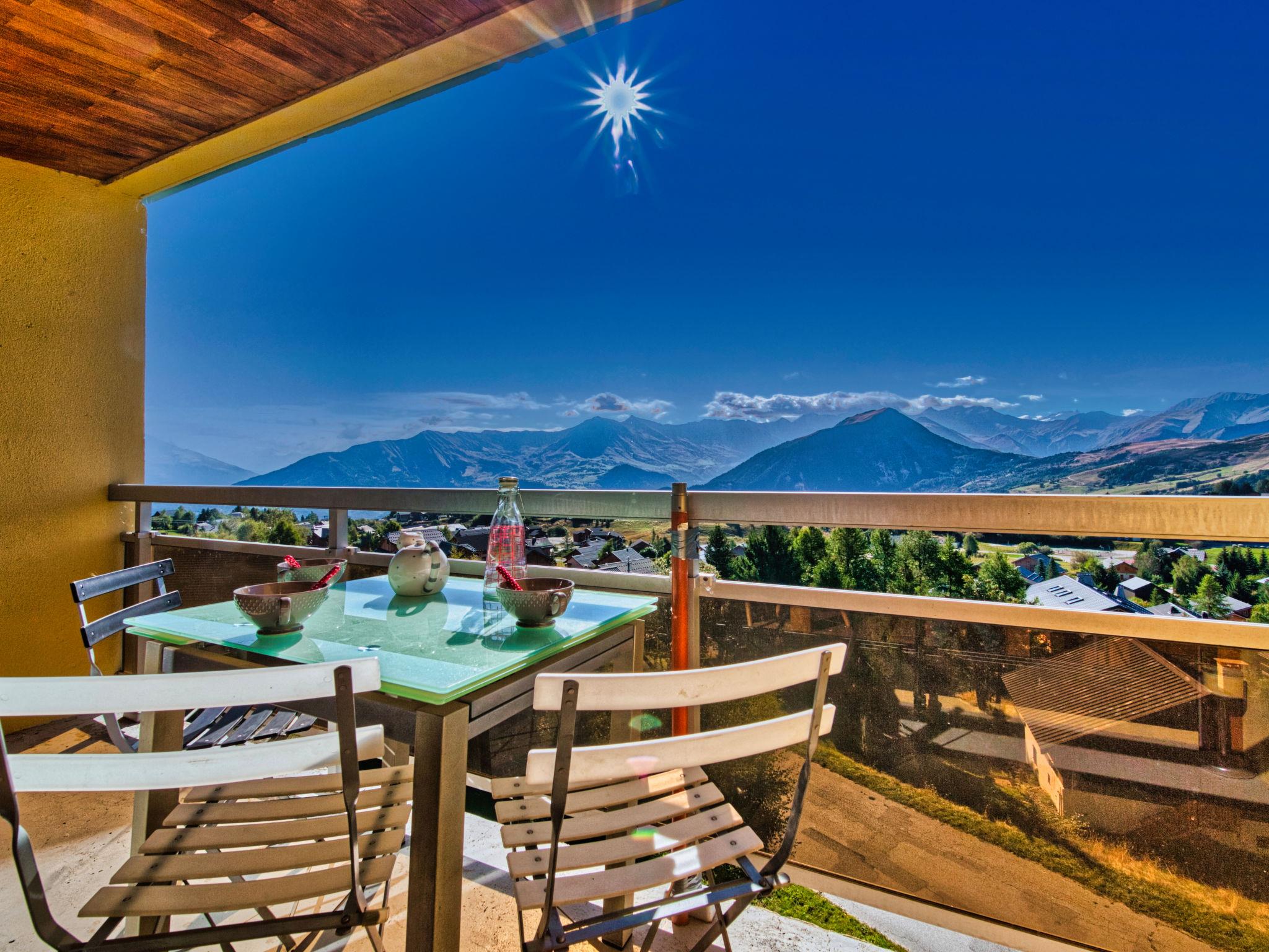 2-room apartment 50 m2 on 4th floor, south facing position. Very comfortable and beautiful furnishings: living/dining room with open-hearth fireplace (only for decoration), TV, DVD and electric shutters. Exit to the balcony. 1 room with 1 french bed (140 cm, length 190 cm), electric shutters. Alcove with 1 x 2 bunk beds (90 cm, length 190 cm). Small kitchen (dishwasher, 4 induction hot plates, toaster, kettle, microwave, grill, electric coffee machine, Capsules for coffee machine (SENSEO) extra, raclette grill). Shower, sep. WC. Heating. Large balcony 8 m2, south facing position. Very beautiful view of the mountains and the resort. Facilities: washing machine, hair dryer. Please note: non-smokers only. Smoke alarm. Instead of an enclosed bedroom, some sleeping areas are located in an open-plan area (gallery, alcove, etc.). Offer by a private individual according to Art. 155, IV of CGI. LA LAUZE FR7373.150.1
