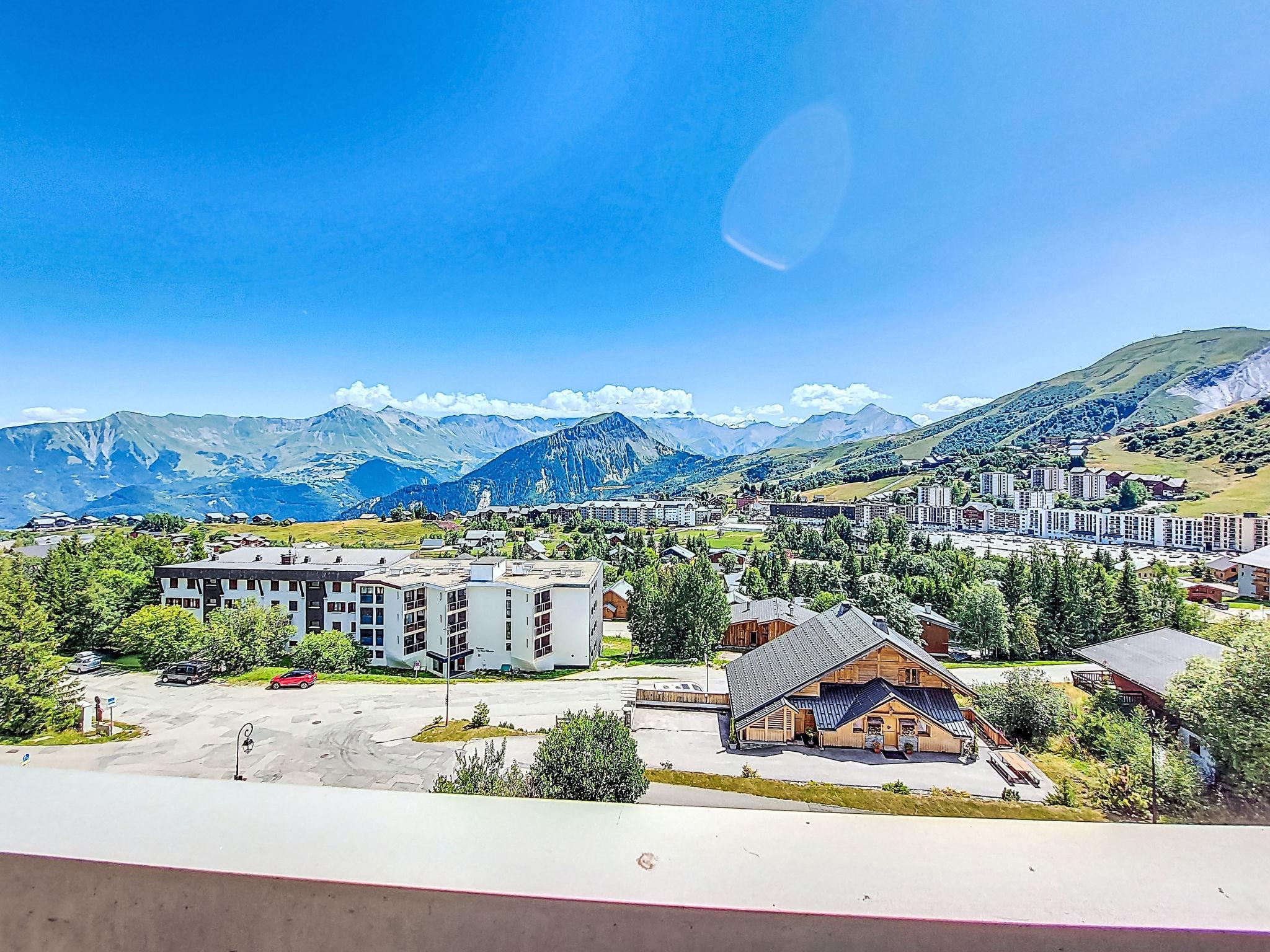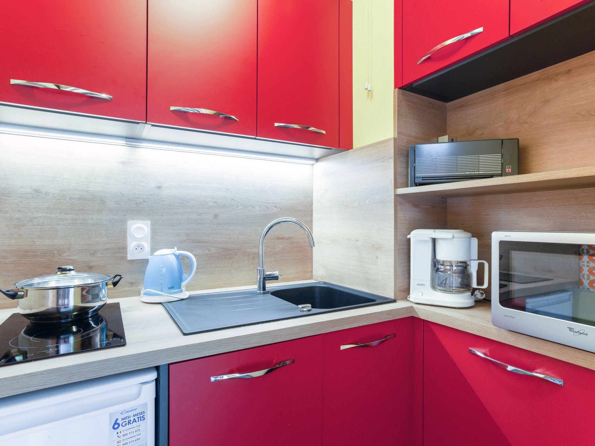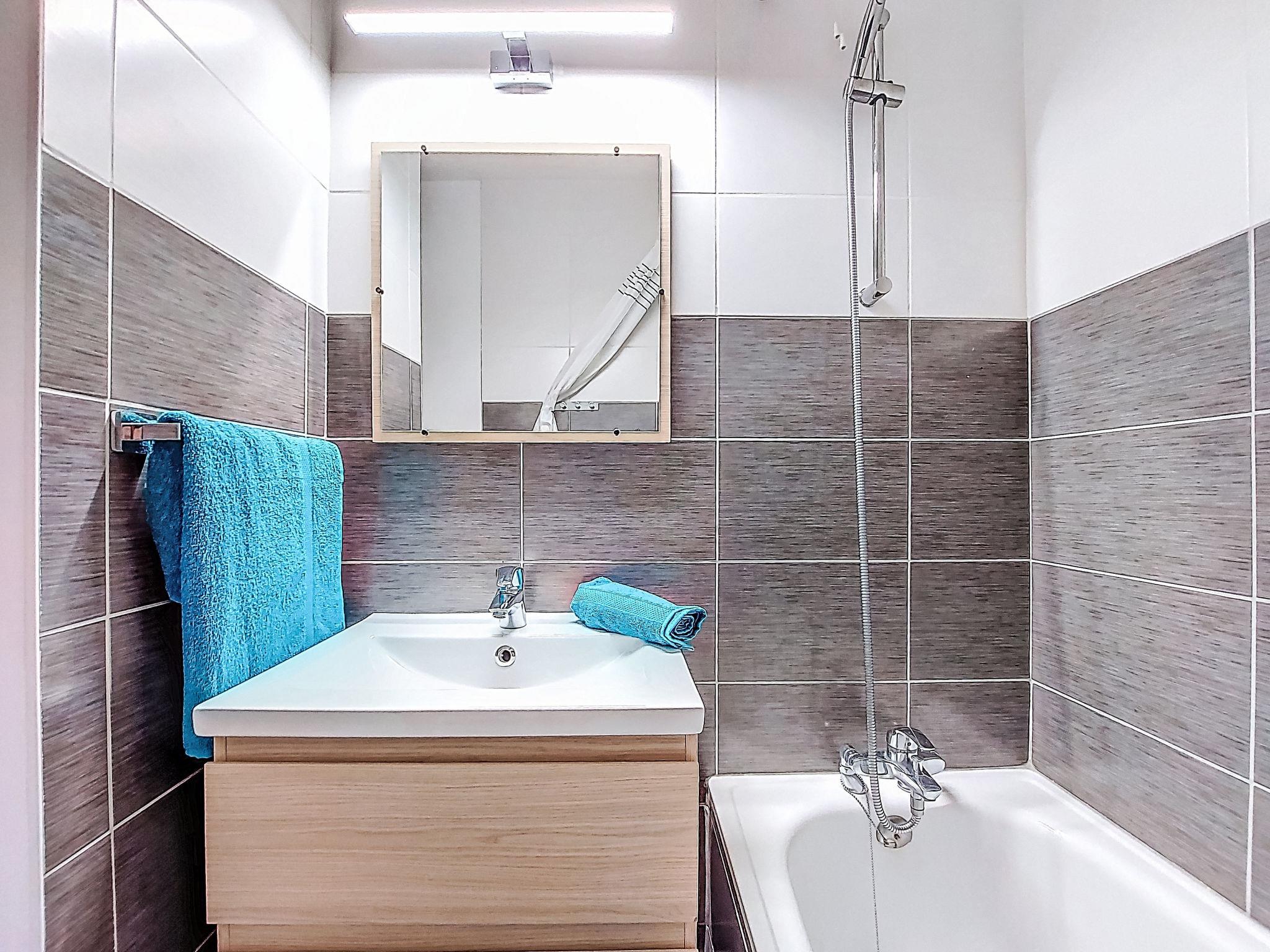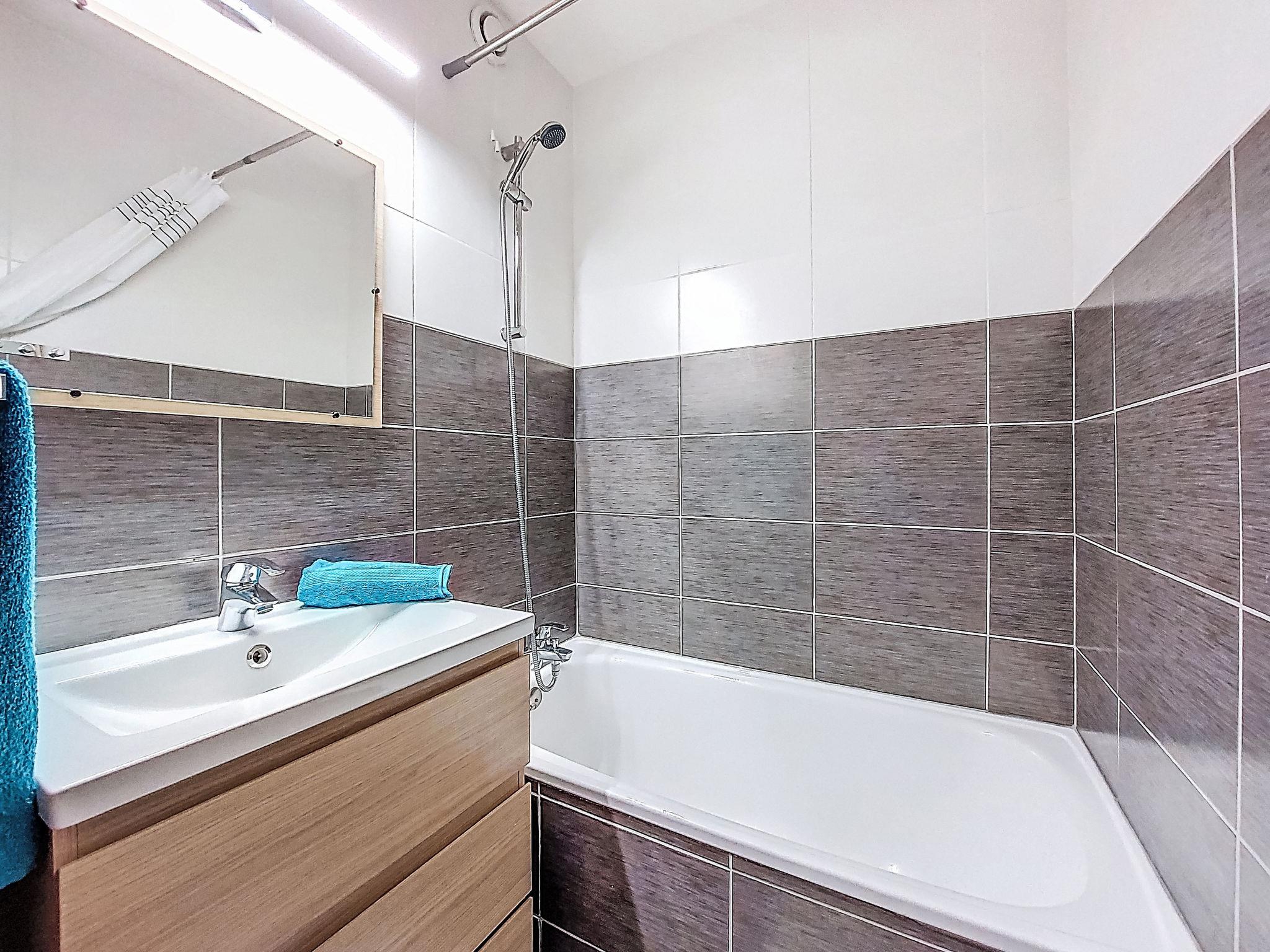 1-room apartment 32 m2 on 3rd floor, south facing position. Simple furnishings: living/dining room with curtain with 1 x 2 bunk beds (80 cm, length 190 cm), TV and DVD. Exit to the balcony, south facing position. Alcove with curtain with 1 french bed (140 cm, length 200 cm), electric shutters. Exit to the balcony, south facing position. Small kitchen (dishwasher, 2 induction hot plates, toaster, kettle, microwave, electric coffee machine, fondue Set (cheese)). Bathroom, sep. WC. Heating. Carpet. Large balcony 6 m2, south facing position. Beautiful view of the mountains and the resort. Facilities: hair dryer. Internet (WiFi, extra). Please note: non-smokers only. Smoke alarm. Instead of an enclosed bedroom, some sleeping areas are located in an open-plan area (gallery, alcove, etc.). Offer by a private individual according to Art. 155, IV of CGI.